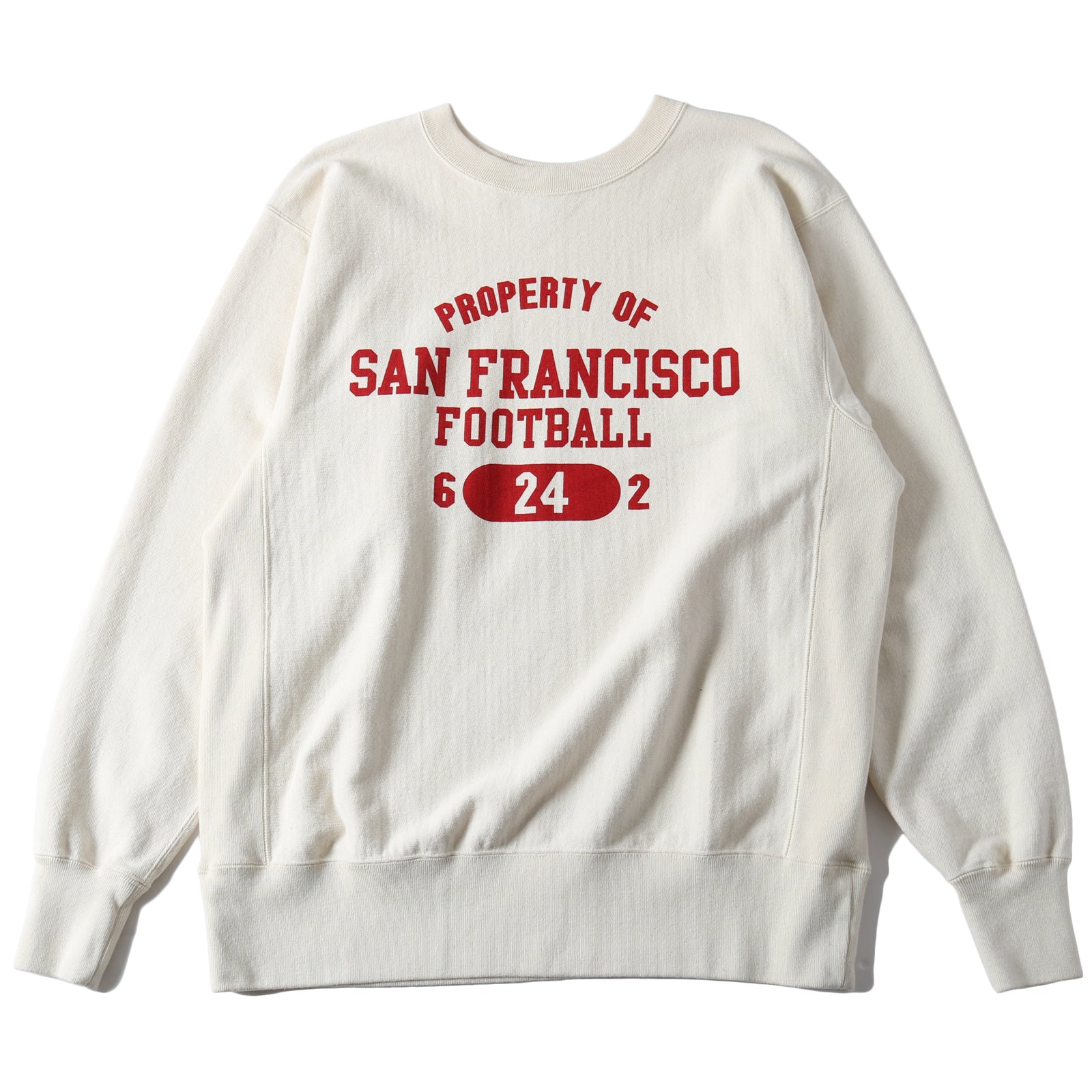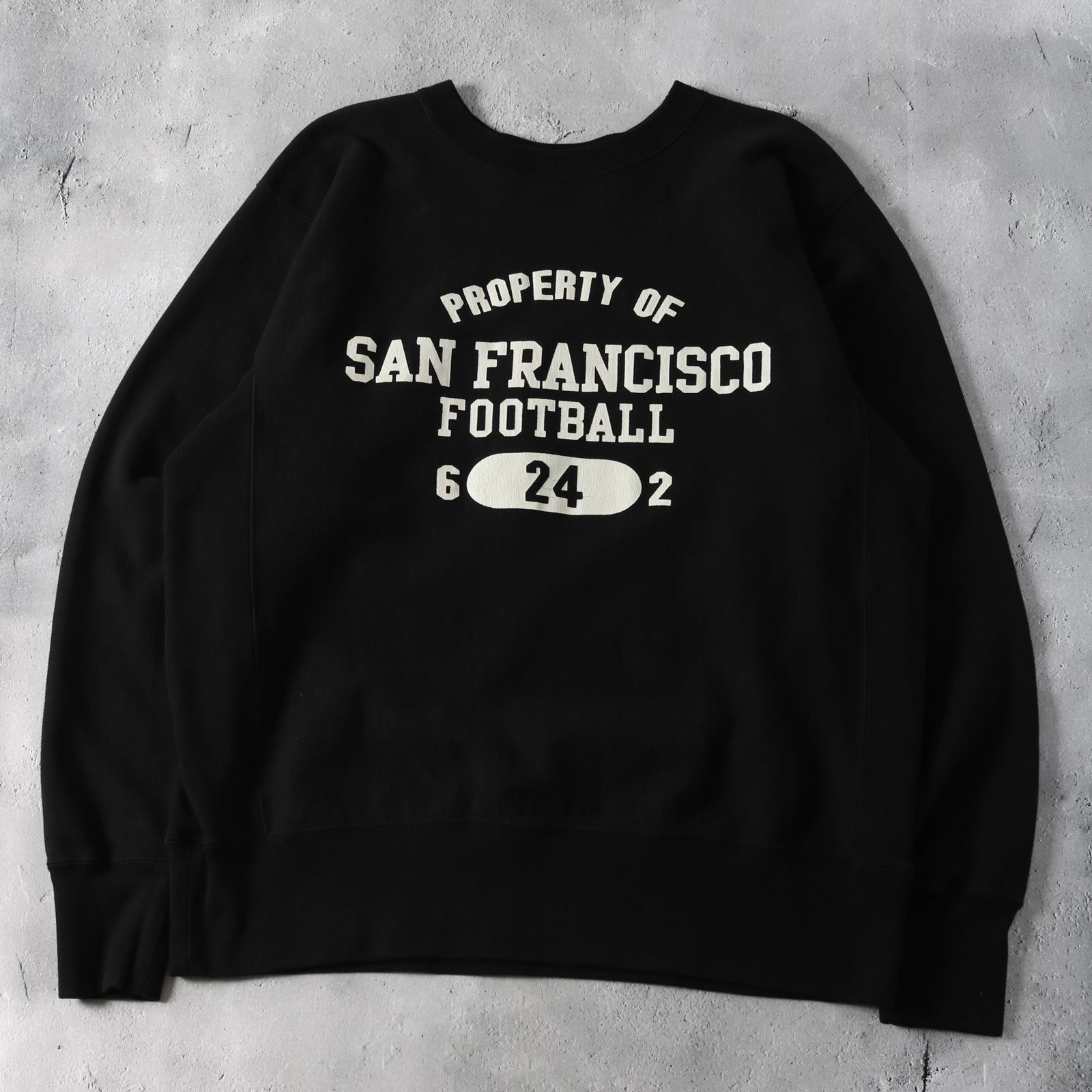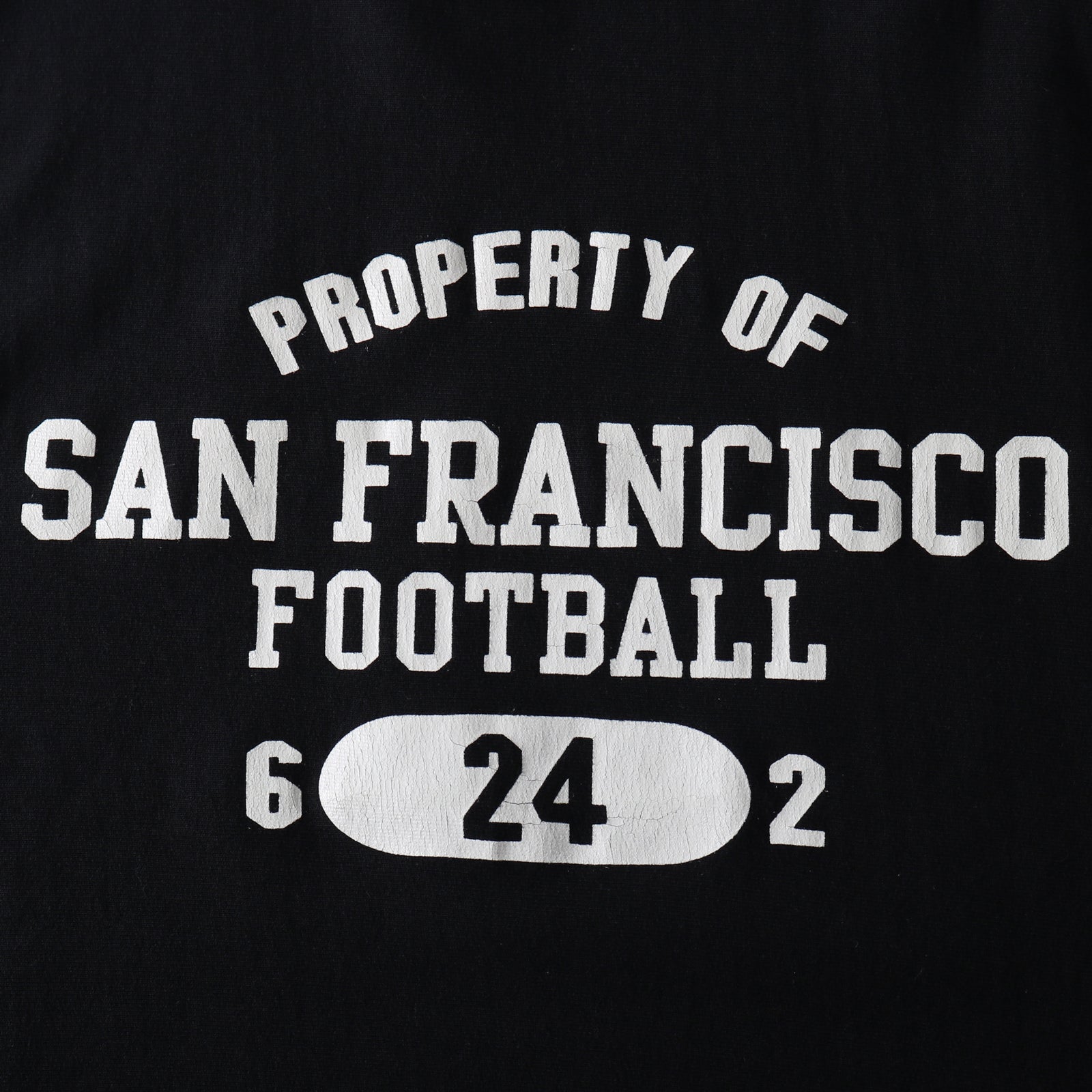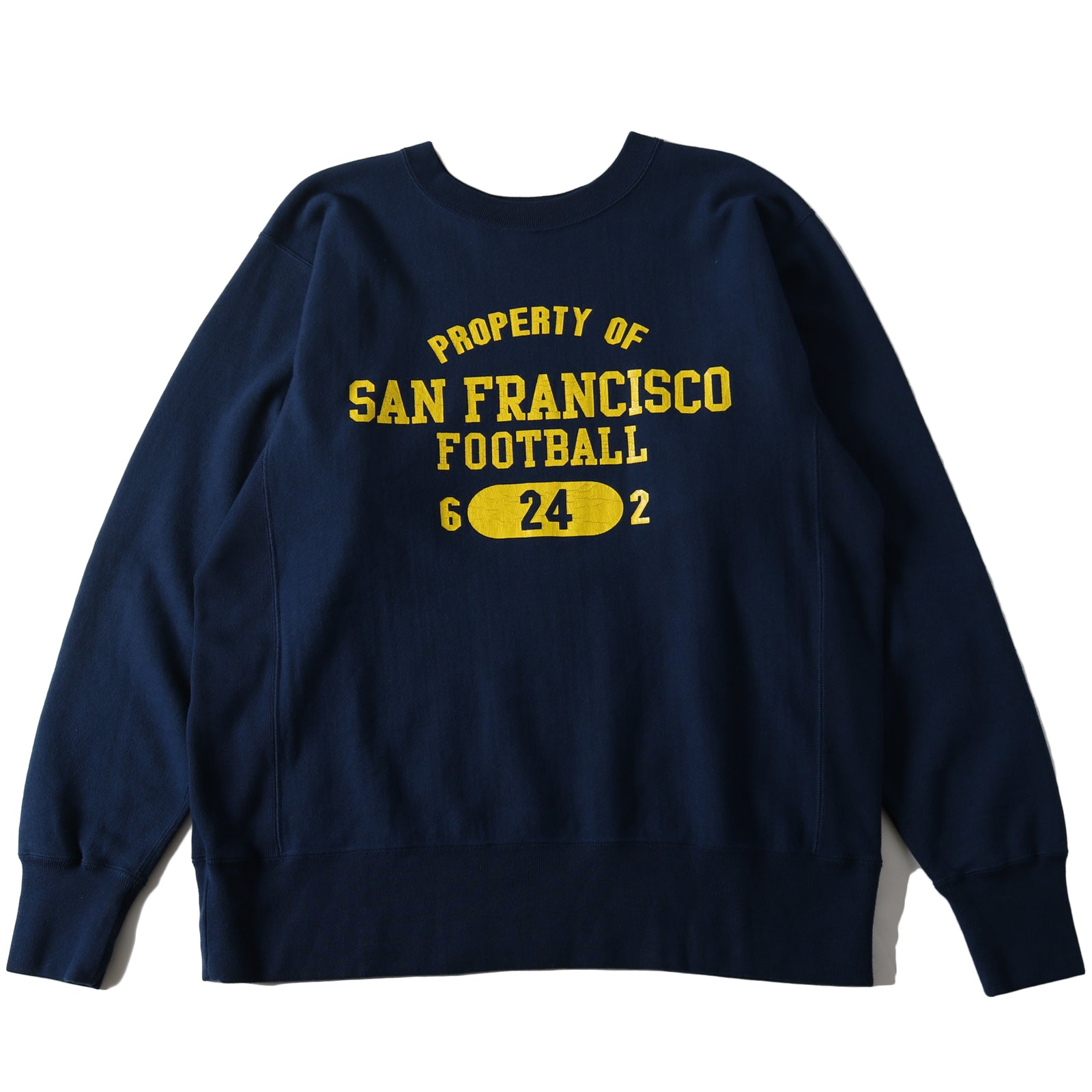 클래식한 대학 로고이면서 빈티지에서 좀처럼 보기 어려운 4단 로고 디자인 프린팅이 있습니다. 오트밀은 워시아웃, 블랙과 네이비는 갈라지는 프린팅입니다.