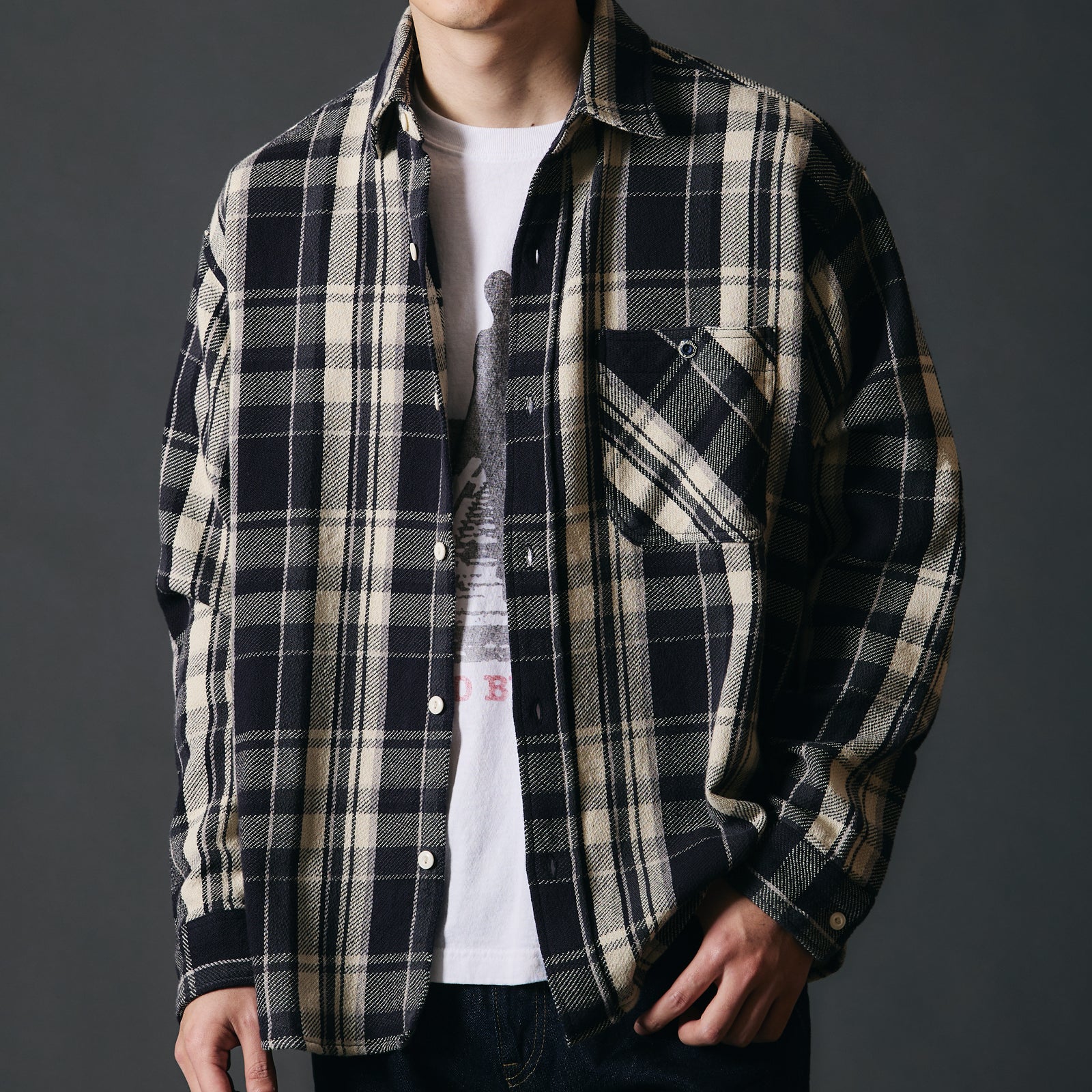 기모 처리된 헤비 코튼 플란넬 소재로 보온성이 높은 셔츠. 가슴 패치 포켓이 있으며 루즈한 실루엣입니다.