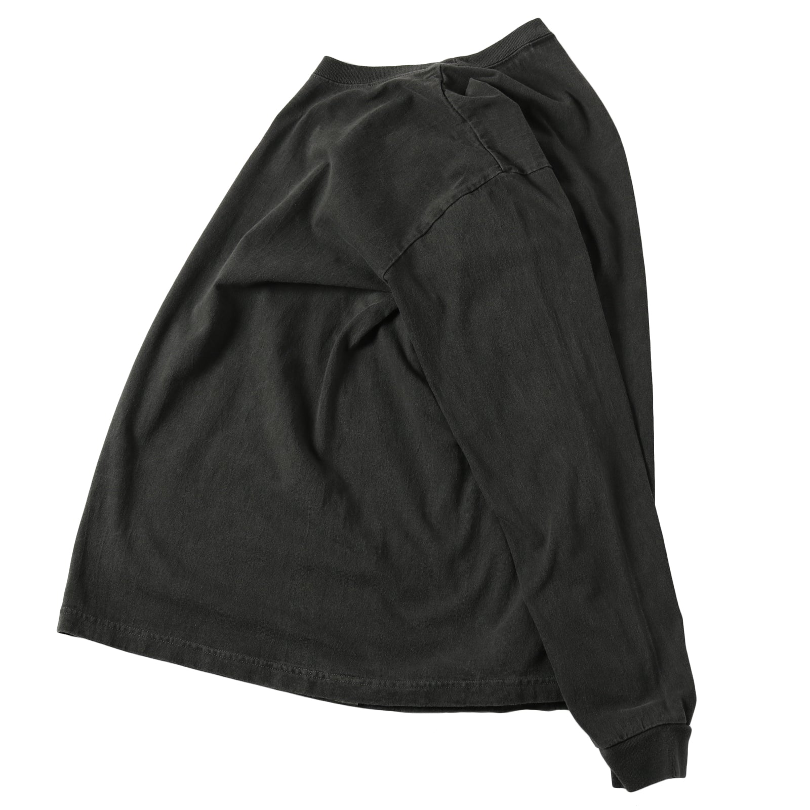 겨드랑이 부분에 봉제가 없는 라운드 바디 사양과 피그먼트 염색에 의한 페이드 느낌을 표현한 티. 가슴 부분에는 작은 프린트, 뒷면에는 큰 프린트가 있습니다. 색상마다 서로 다른 프린팅 기법을 사용했습니다.