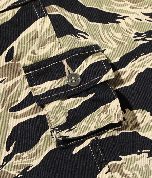 1960년대에 일본 주재 미국 조달 본부는 일본에서 위장복을 조달하기로 결정했습니다. 첨단 인쇄 기술과 빠른 생산성을 결합한 데다 비용 면에서도 우수했기 때문이다. 패턴은 일본 각지의 공장 부지에 맡겨져 있었기 때문에 호랑이 줄무늬 패턴이 무수한 변형의 이유였습니다. 초기의 호랑이 줄무늬는 대부분 일본에서 만들어졌지만, 일부는 오키나와로 천을 보내 꿰매어 만든 것이고, 다른 일부는 베트남 전쟁 말기에 태국과 베트남 주변에서 제조된 것입니다.