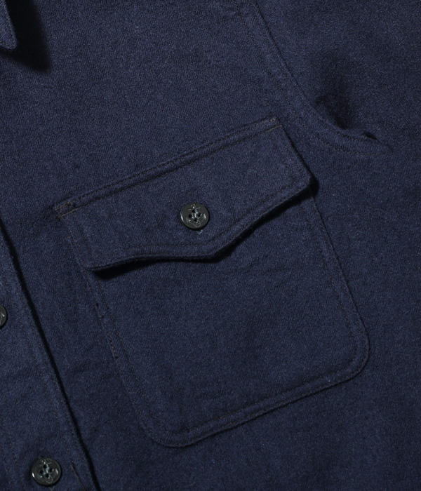CPO라고 불리는 이 셔츠는 수석하사관의 약자이며 미 해군 소령을 의미합니다. 압축 울로 제작되어 바닷물이나 비에 노출되어도 춥지 않습니다. 이 디자인은 왼쪽 가슴에만 포켓이 있고 플랩 모양이 세련되었습니다.
