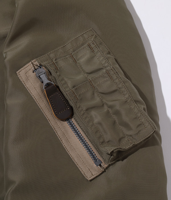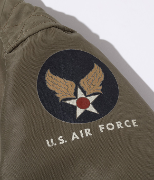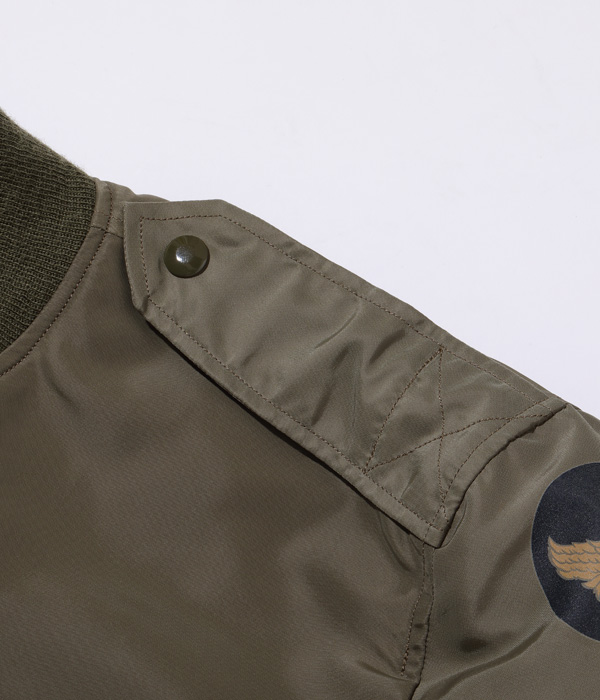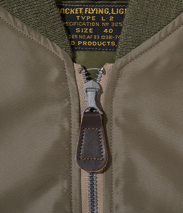 1939년 듀폰이 개발한 나일론을 채용하여 1945년 5월 21일 광역(온도 범위 10°C~30°C)용 플라이트 재킷인 Type L-2가 완성되었습니다. Type L-2에는 산소 마스크의 호스를 고정하기 위해 가죽 상자 탭이 장착되어 있으며 안감은 적당한 보온을 위해 미끄러운 나일론과 양모의 이중 직물이었습니다.