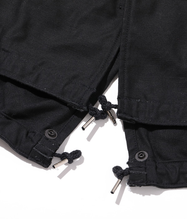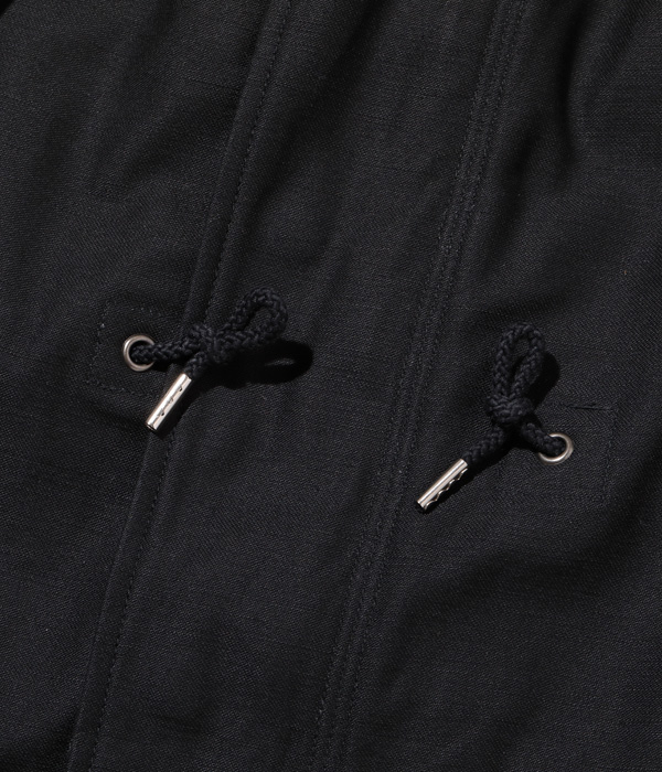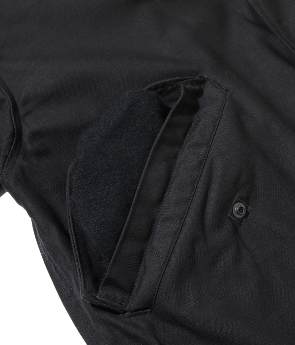 포켓 안감에 울 원단 을 사용하고, 소매의 고무 스트랩 디테일 까지 실제 미군 보급품과 동일하게 재현한 블랙 M-51 파카 입니다.