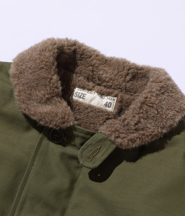 제2차 대전 중반부터 1950년대까지 미 해군 데크 크루에 착용된 방한용 재킷으로 라이닝에는 보온성이 뛰어난 알파카 울 파일을 사용하고 있습니다. 가볍고 유연함을 갖춘 백 새틴 N-1은 매우 움직이기 쉽고 운동성이 뛰어납니다. N-1의 소맷단은 리브가 내장된 사양으로 리브가 마찰로 아픈 것을 방지하며 방한성도 확보한 것이 특징입니다.