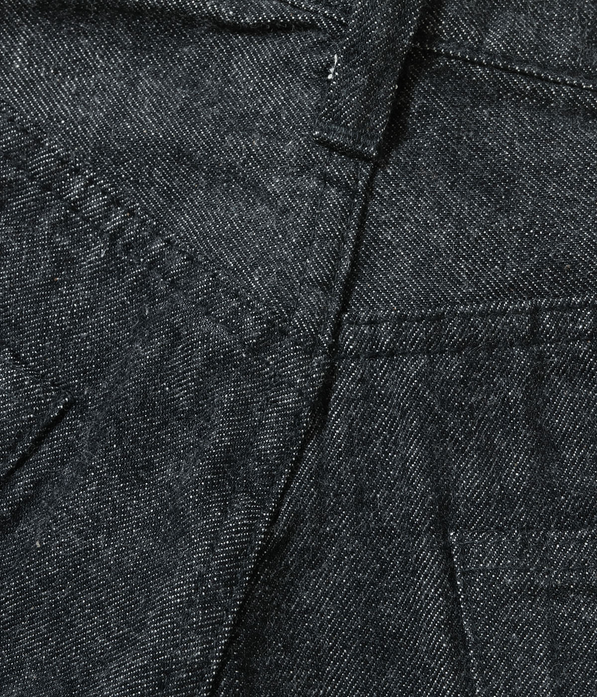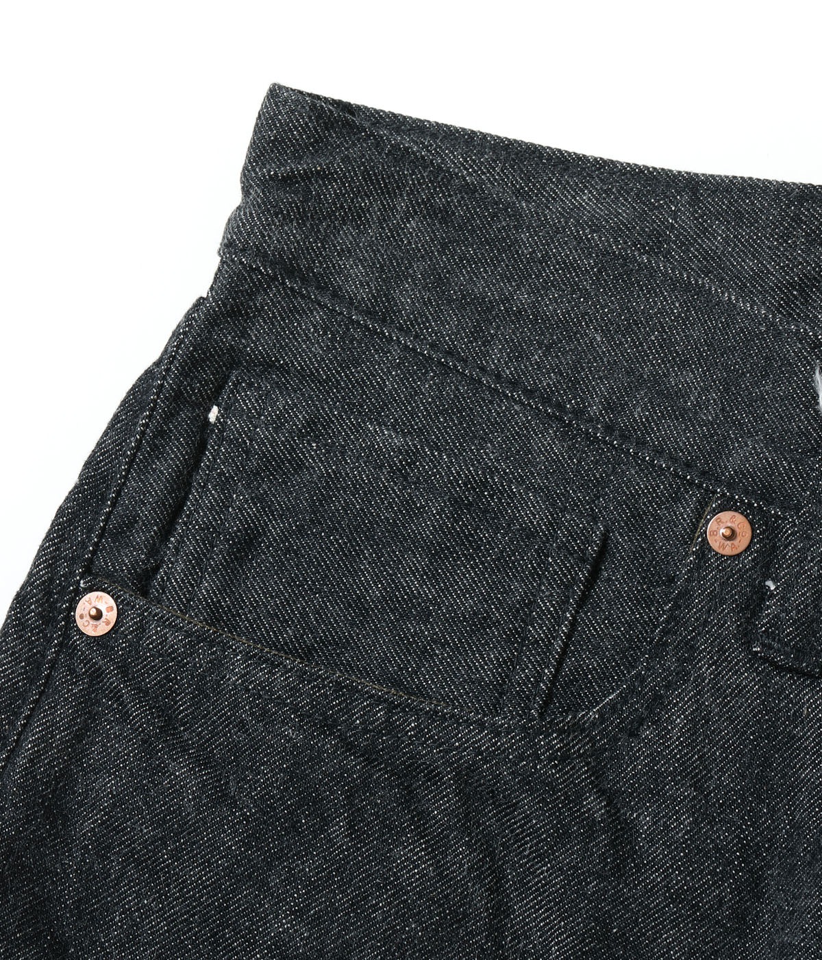 데님 허리 작업복은 제 2 차 세계 대전 중 보급품 부족을 해결하기 위해 통제하에 탄생했습니다. 이전 모델에 부속된 코인 포켓 입구의 리벳과 힙 포켓의 바 탁은 생략되었습니다. 윌리엄 깁슨의 세계관에 맞게 가죽 라벨의 호일 스탬핑은 블랙, 플래셔는 모노톤입니다.