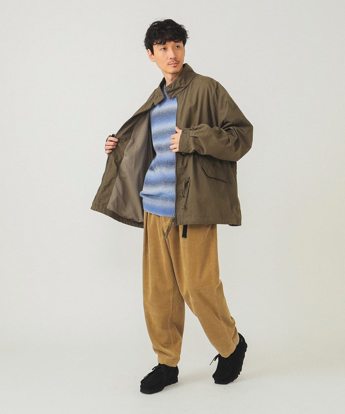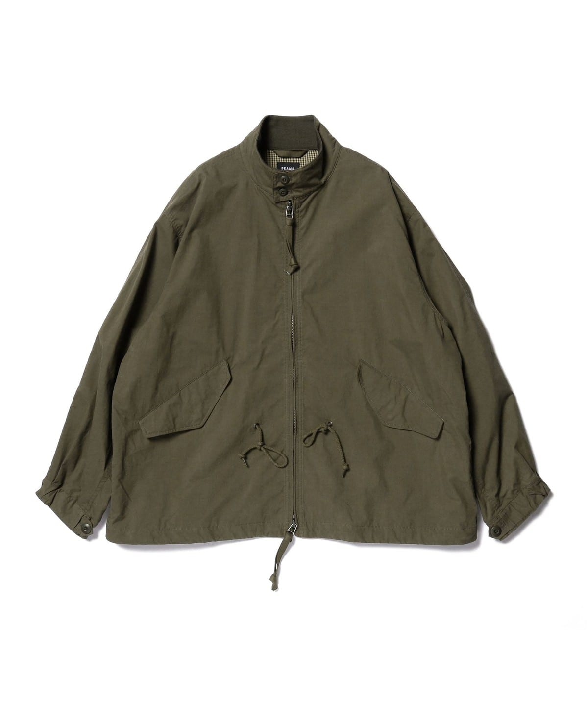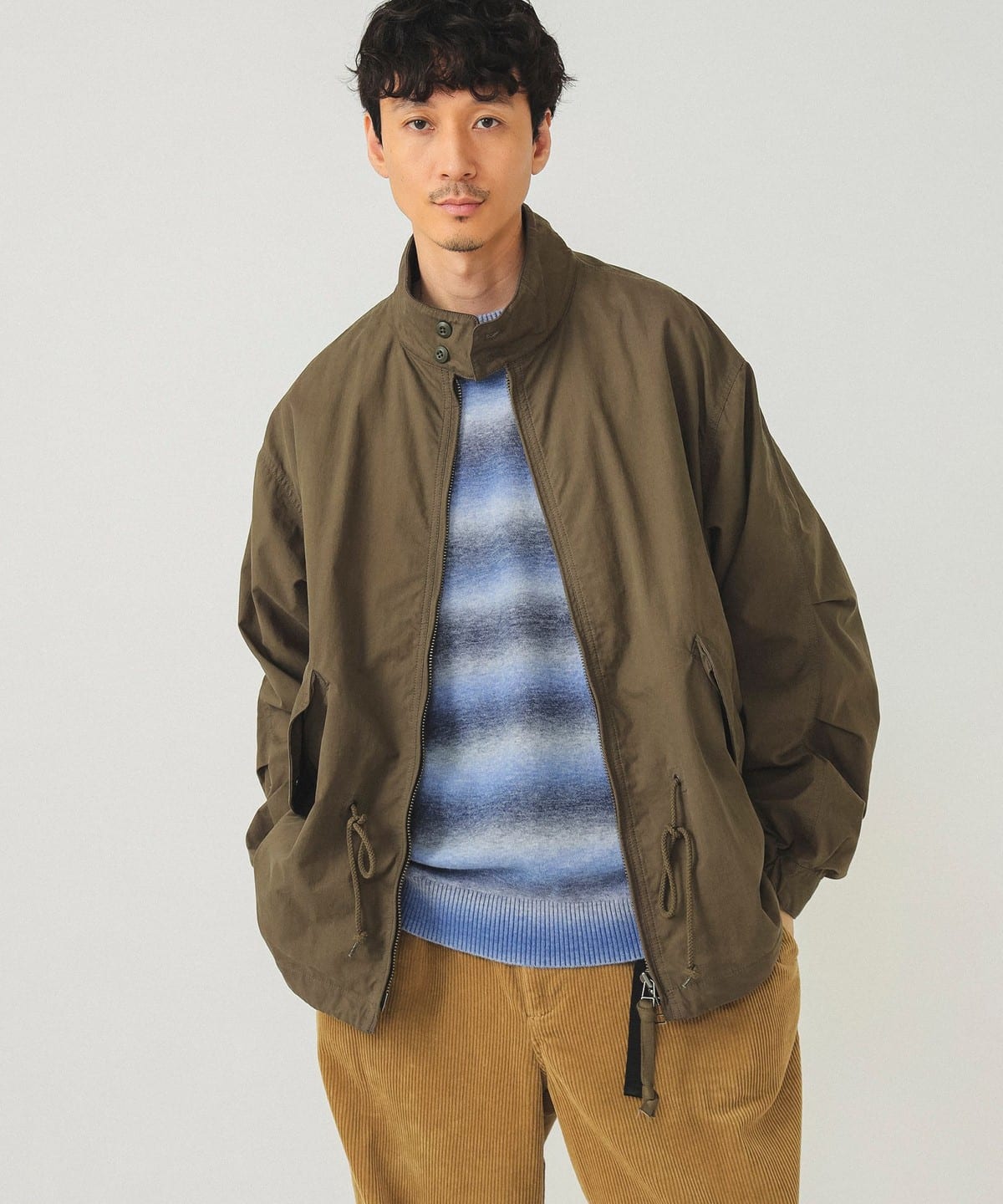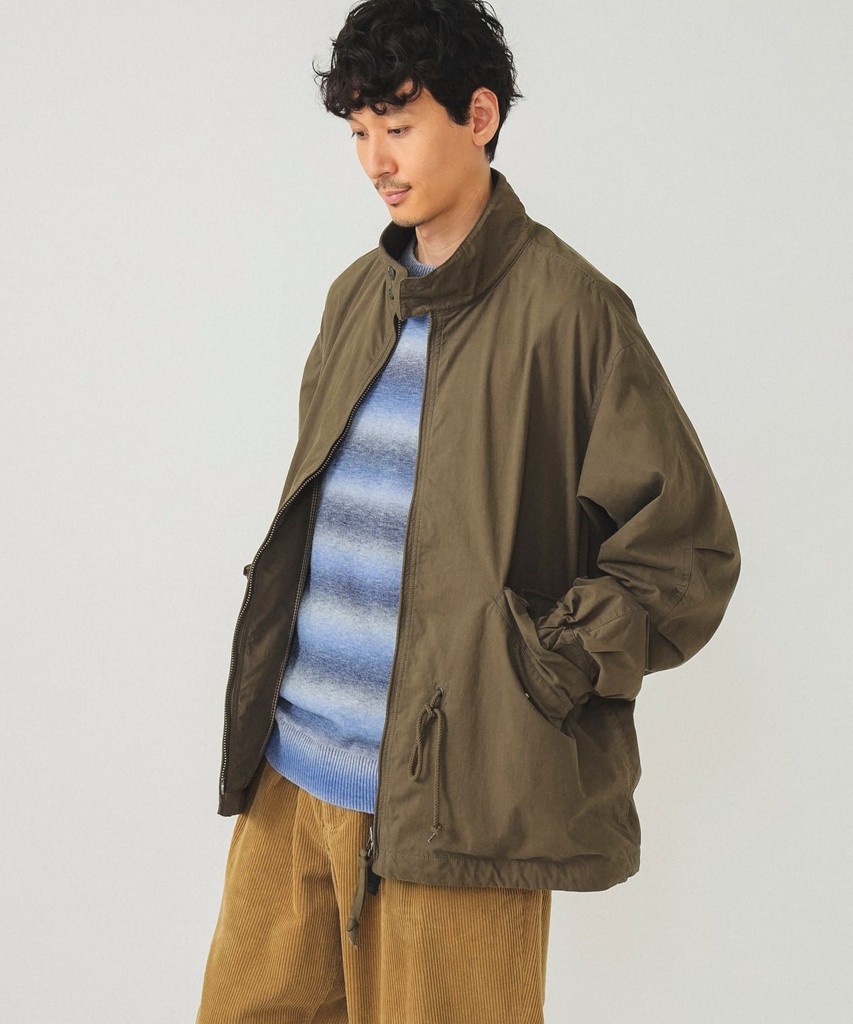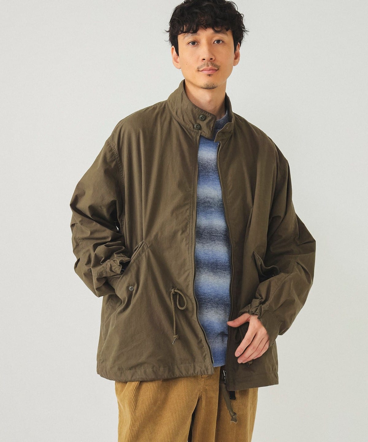 밀리터리 아이템을 믹스한 빔즈의 스탠드 블루종. 밑단의 드로우코드나 소맷단의 버튼을 사용하여 실루엣을 조절할 수 있습니다. 약간 짧은 길이의 와이드핏