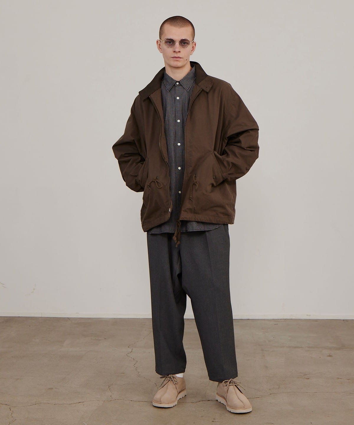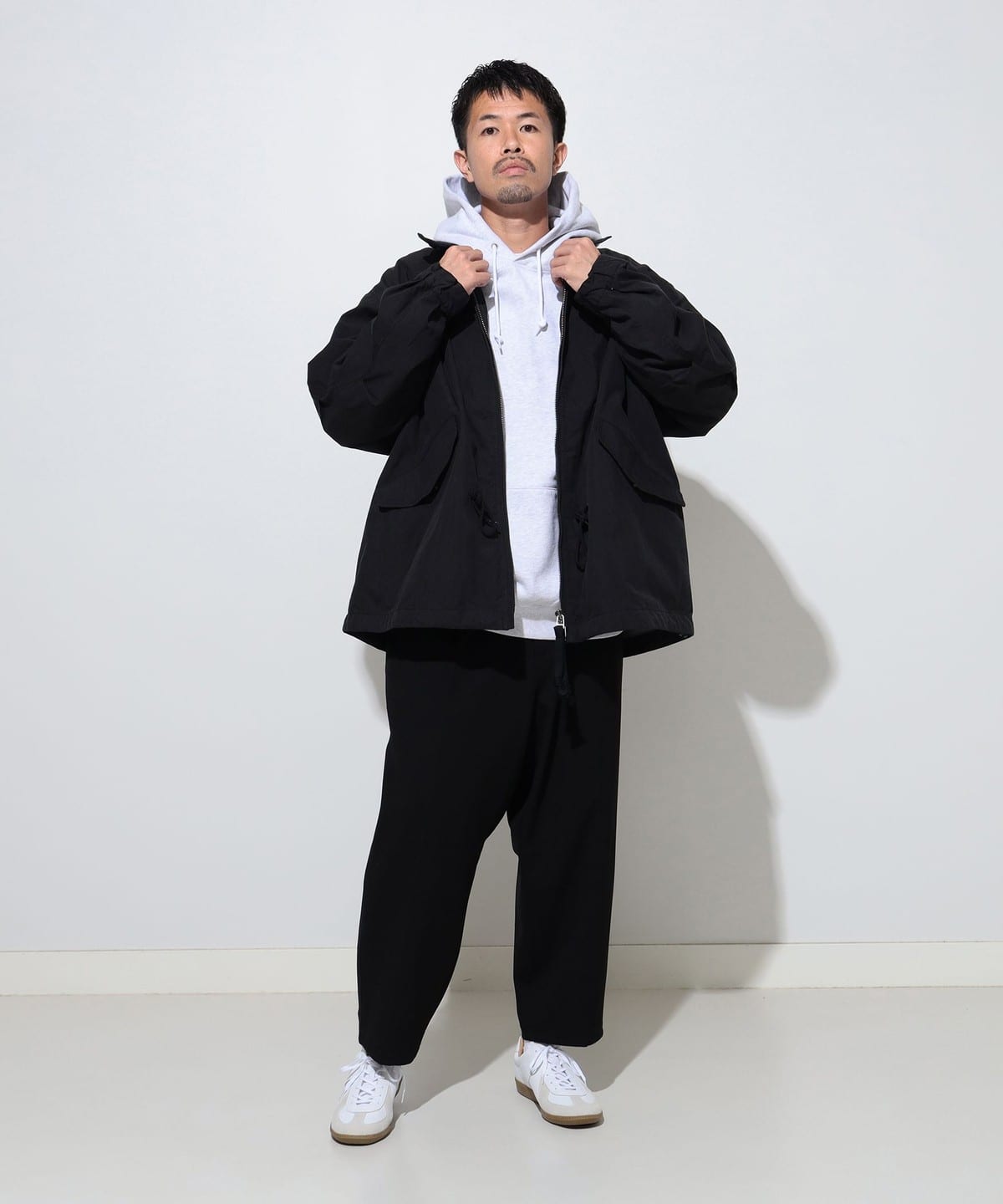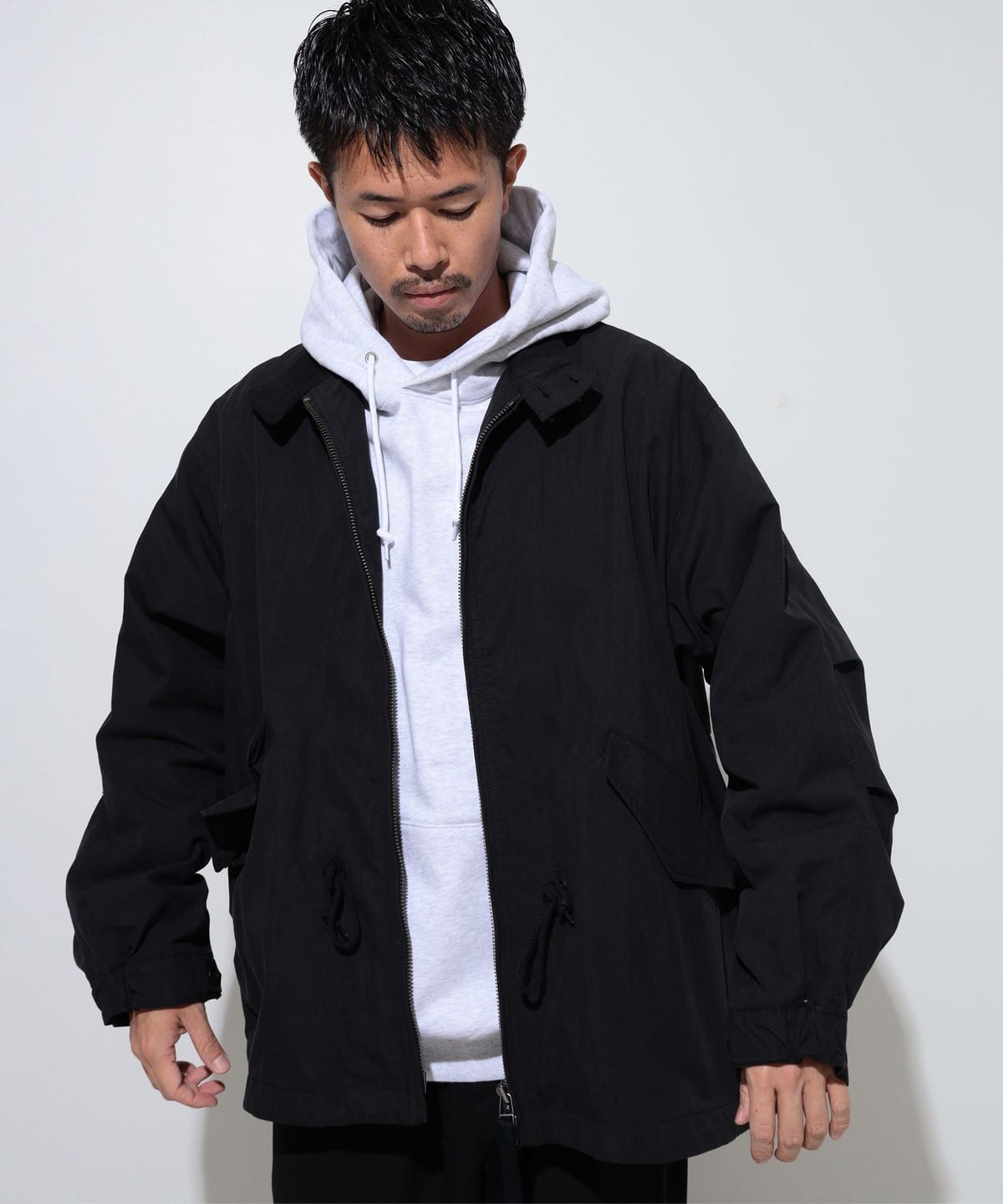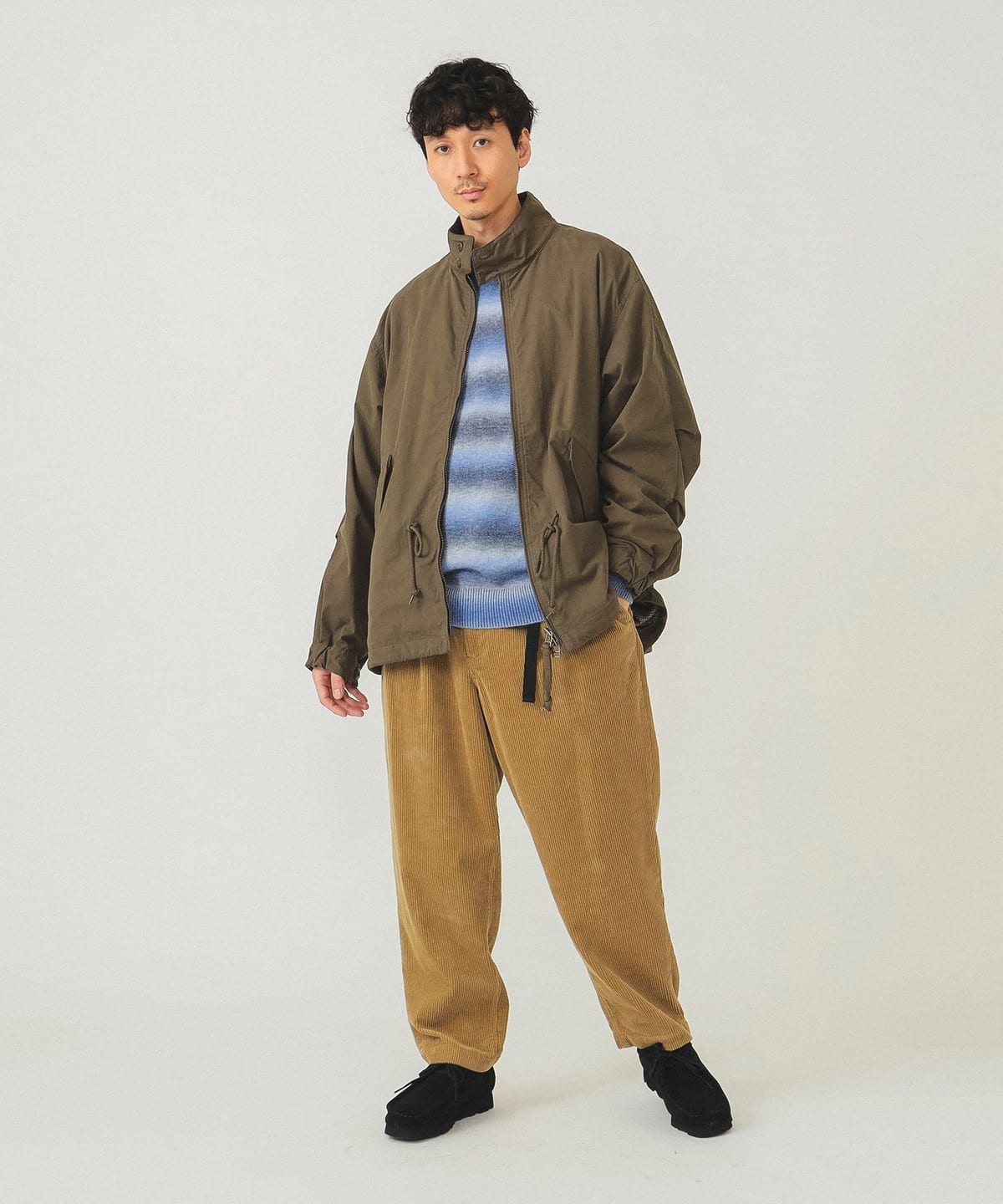 밀리터리 아이템을 믹스한 빔즈의 스탠드 블루종. 밑단의 드로우코드나 소맷단의 버튼을 사용하여 실루엣을 조절할 수 있습니다. 약간 짧은 길이의 와이드핏