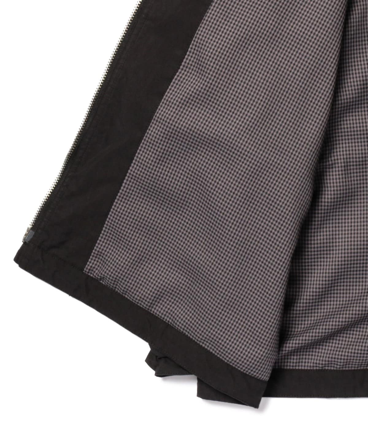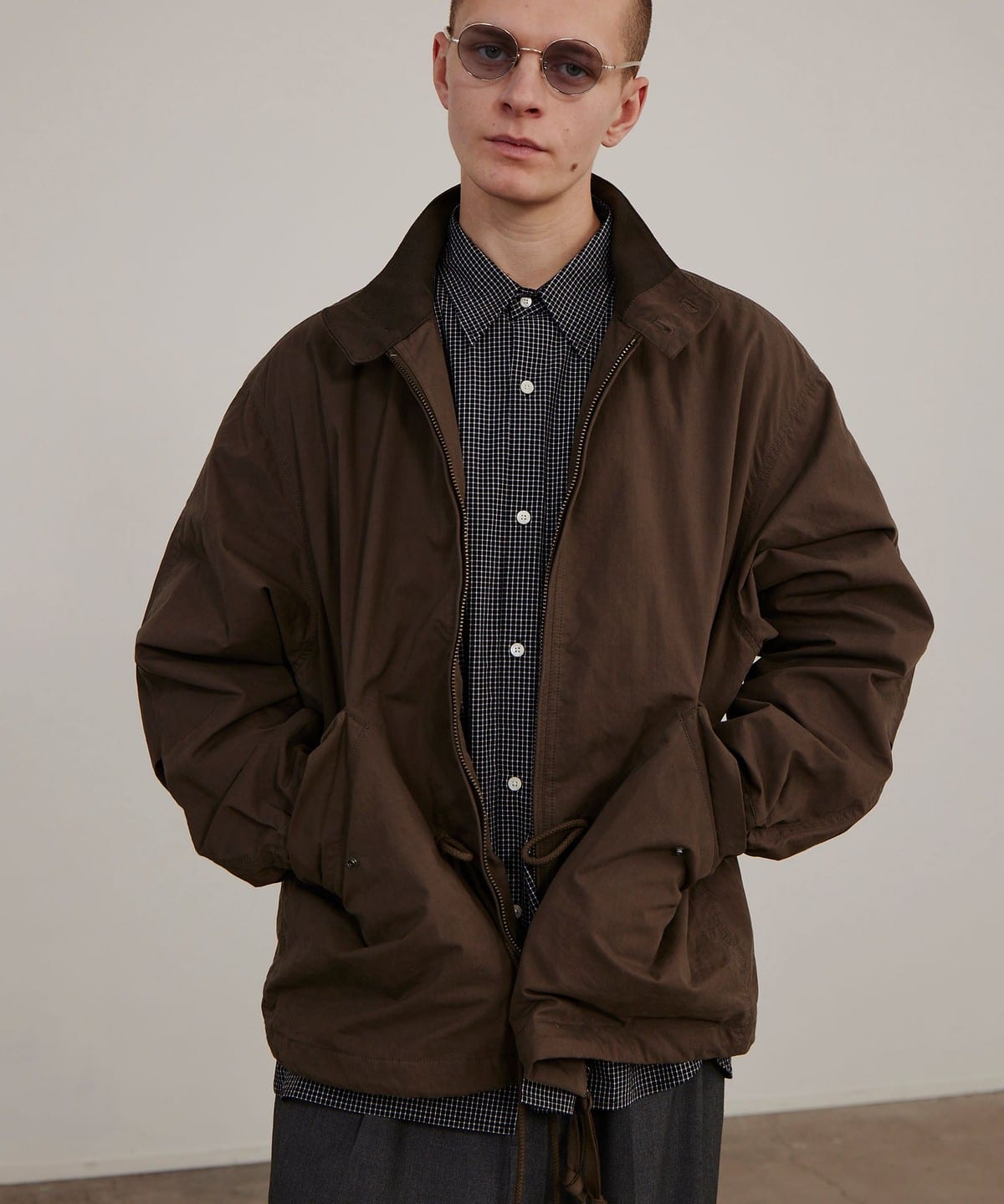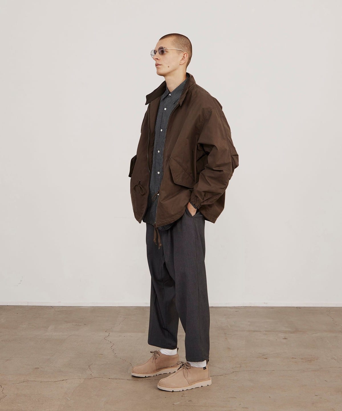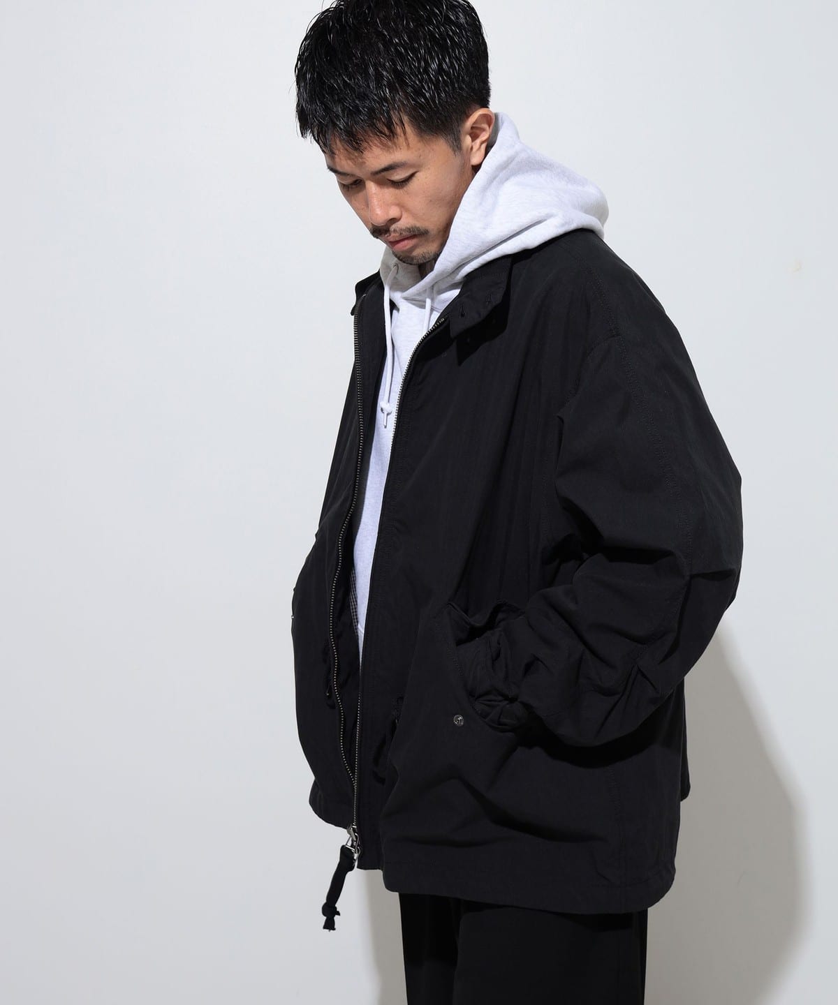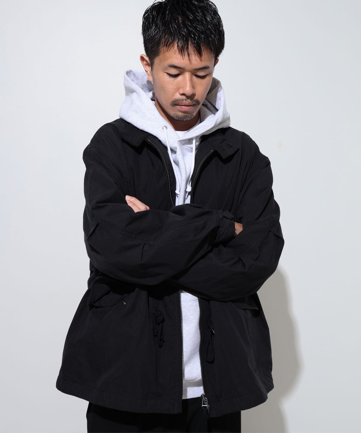 밀리터리 아이템을 믹스한 빔즈의 스탠드 블루종. 밑단의 드로우코드나 소맷단의 버튼을 사용하여 실루엣을 조절할 수 있습니다. 약간 짧은 길이의 와이드핏