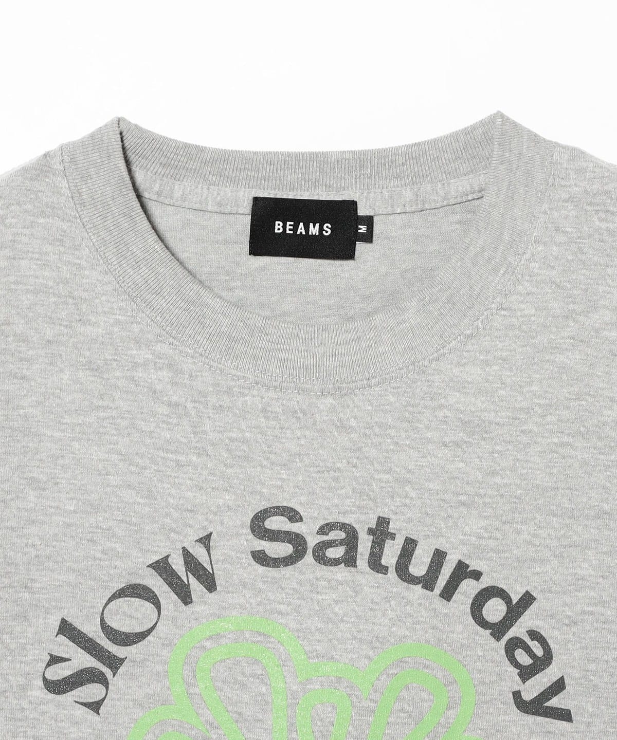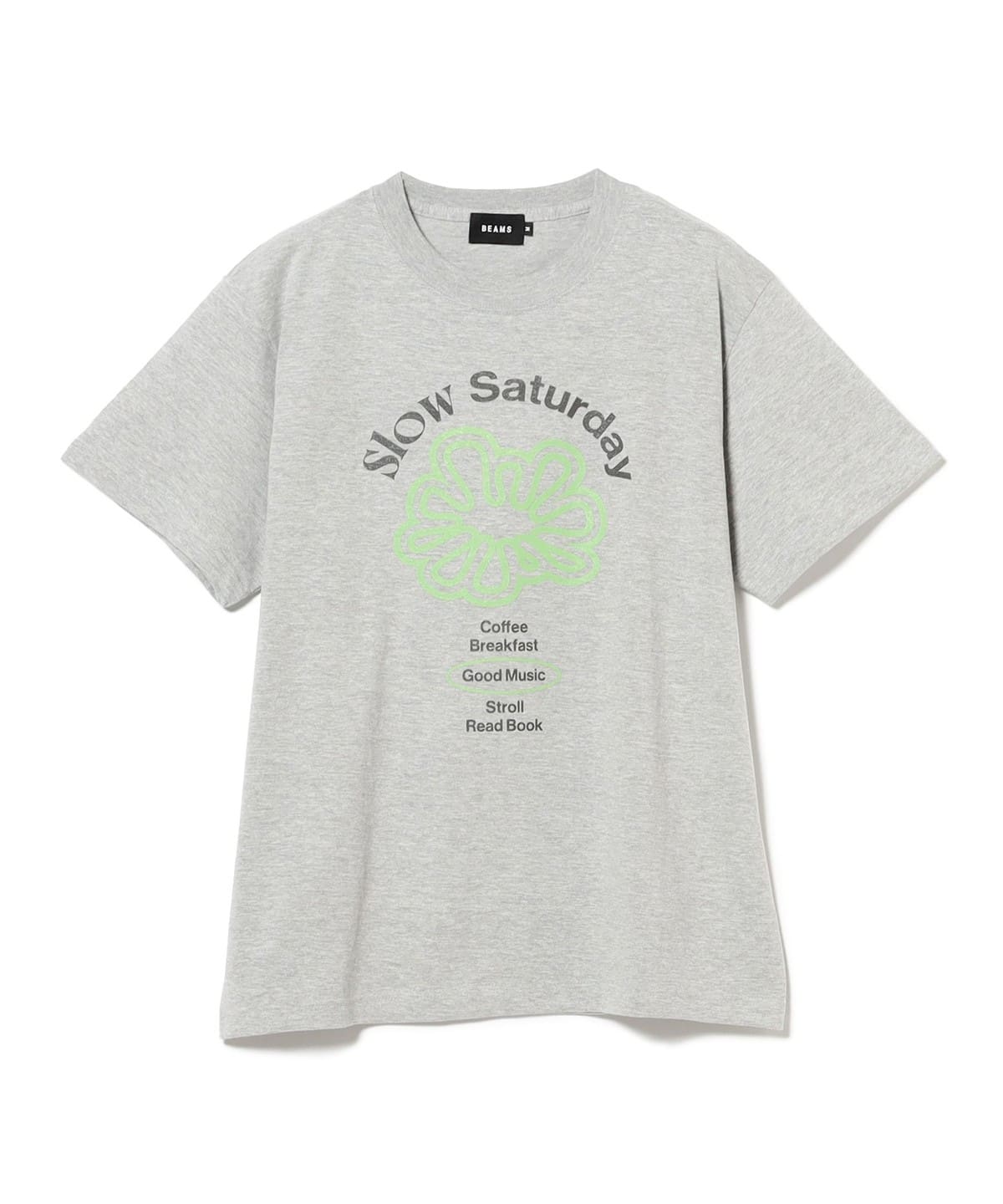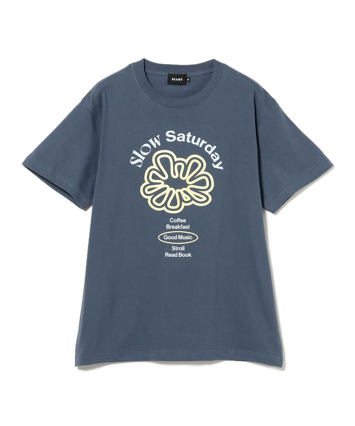 프런트에 “Slow Saturday”의 캐치한 프린트가 들어간 티셔츠