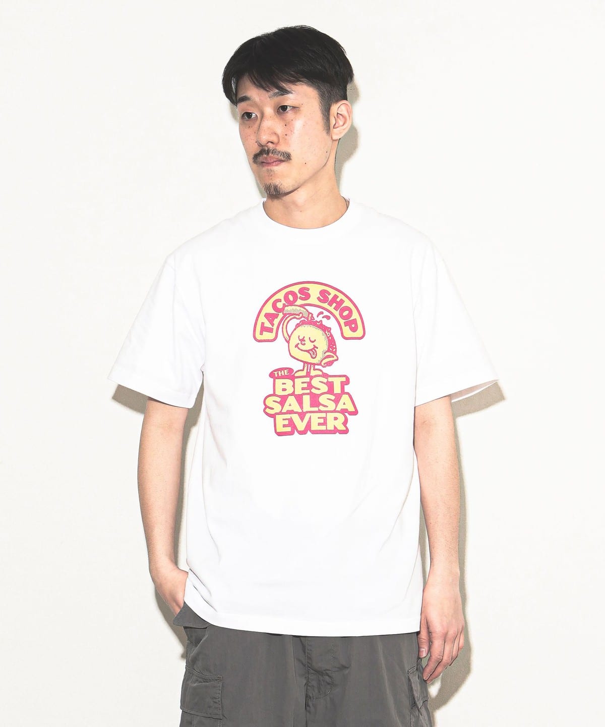 프런트에 캐치한 ‘TACOS SHOP’ 그래픽이 들어간 프린트 티셔츠입니다.