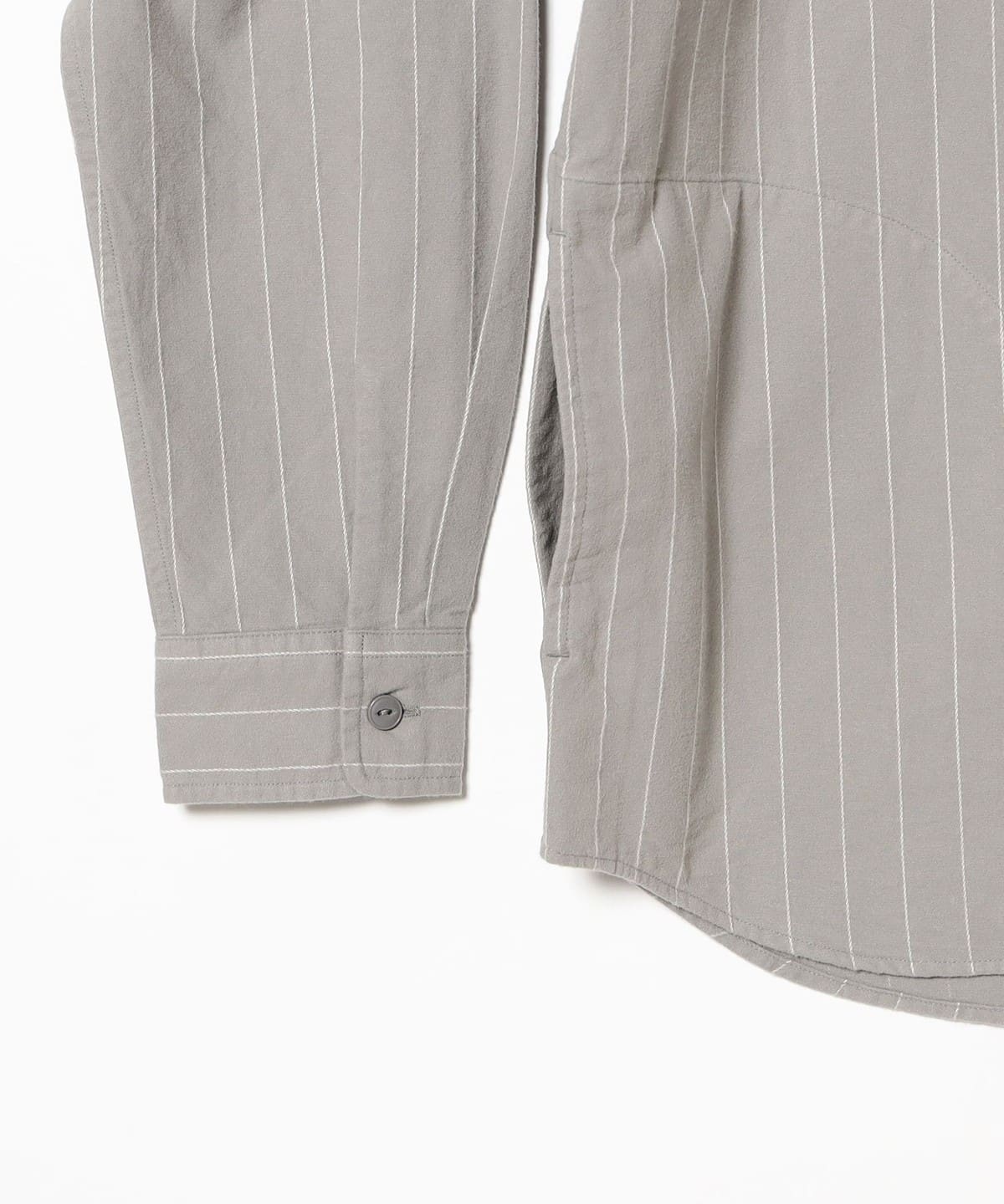 와이드 핏으로 어깨와 가슴 폭에 여유를 주었습니다. 부드러운 촉감의 플란넬 소재에 도비 조직으로 스트라이프 패턴을 표현했습니다.