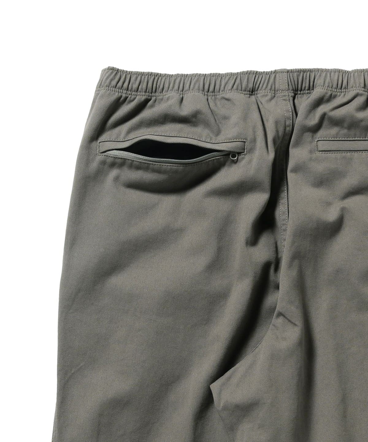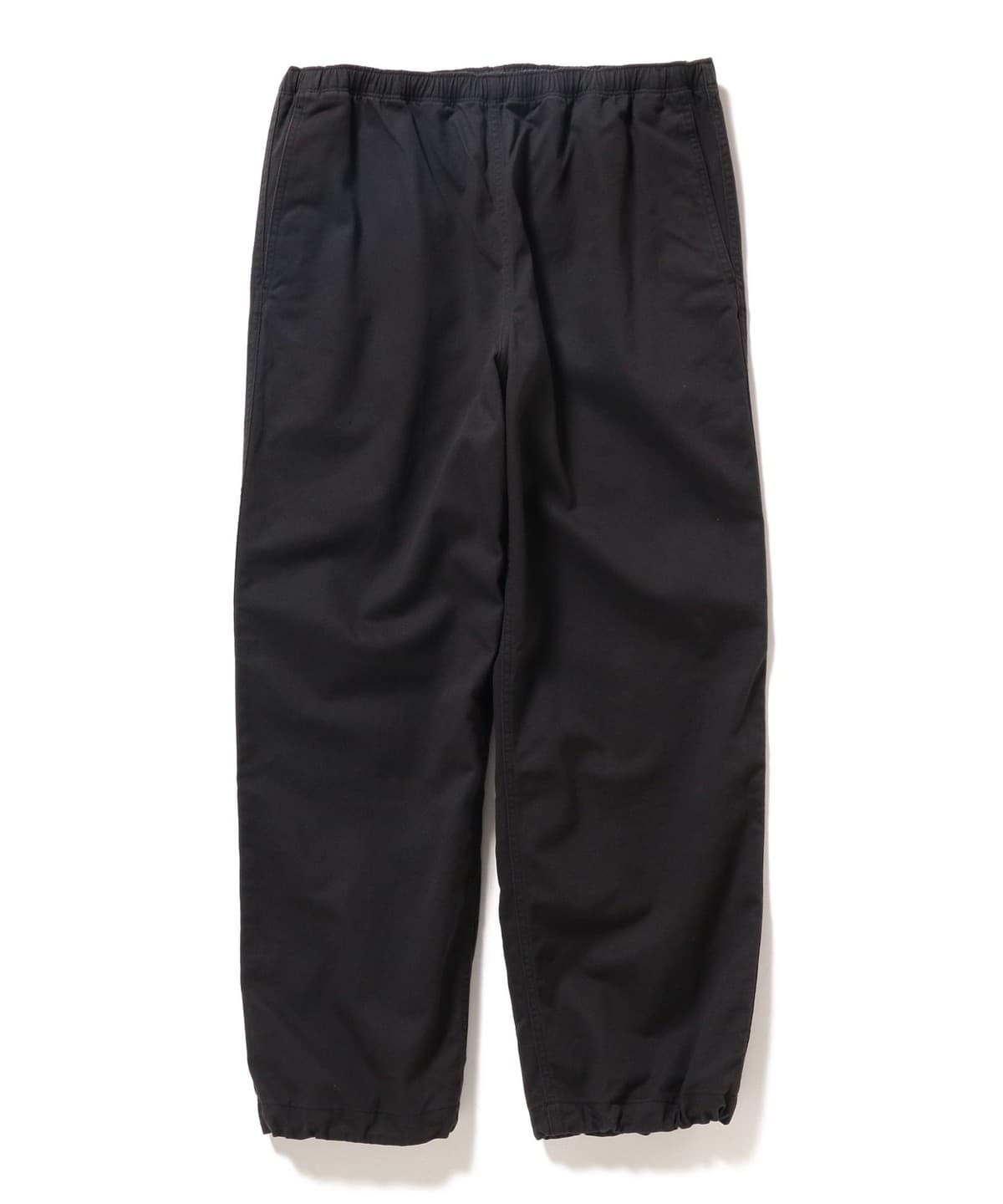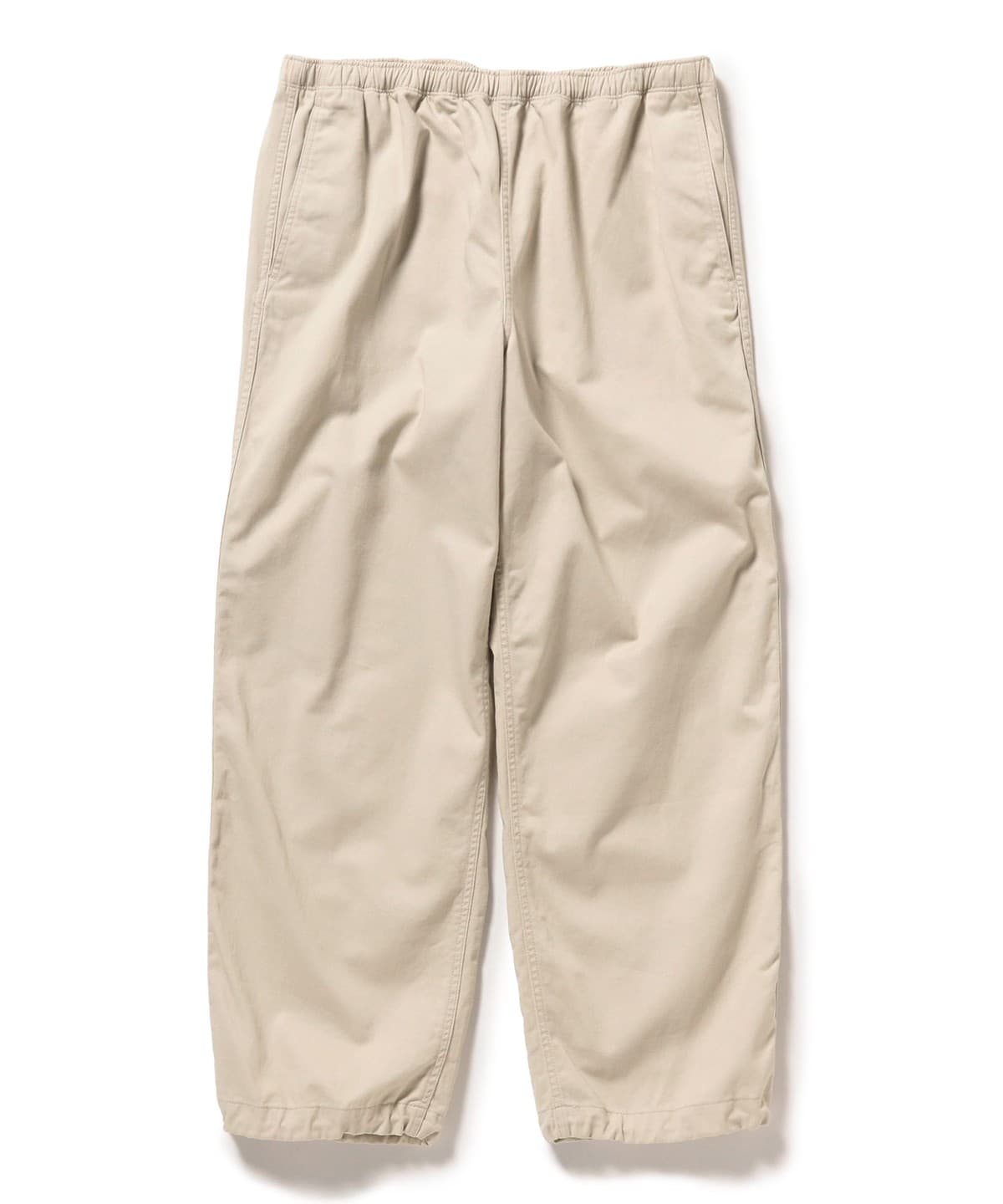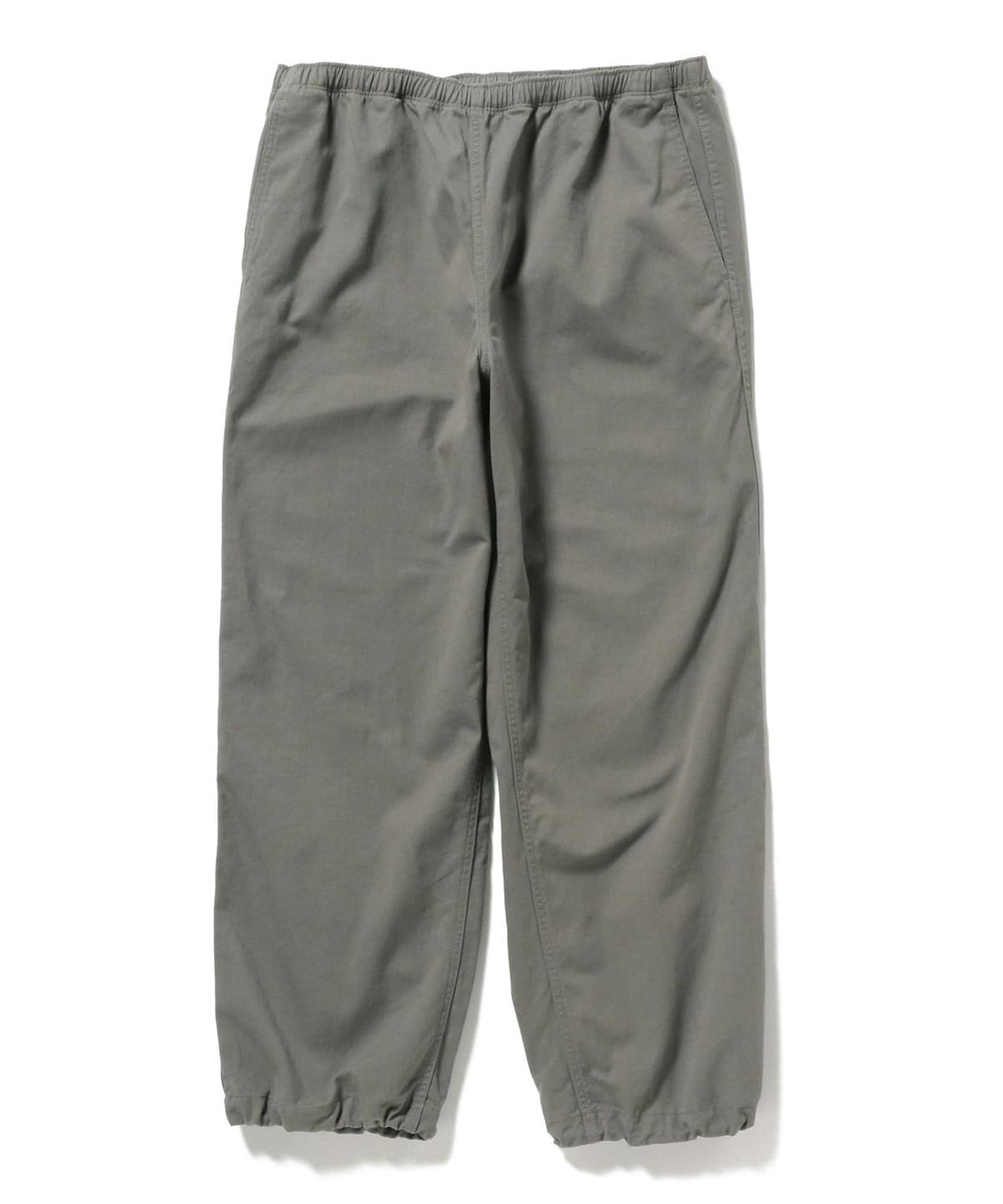 허리는 밴딩 셔링과 스트링 조절 방식으로 착용이 편리하며, 밑단은 조절 가능한 스트랩으로 실루엣을 자유롭게 변형할 수 있습니다. 뒷면 오른쪽 포켓에는 BEAMS 로고 탭을 배치하여 포인트를 더했습니다.