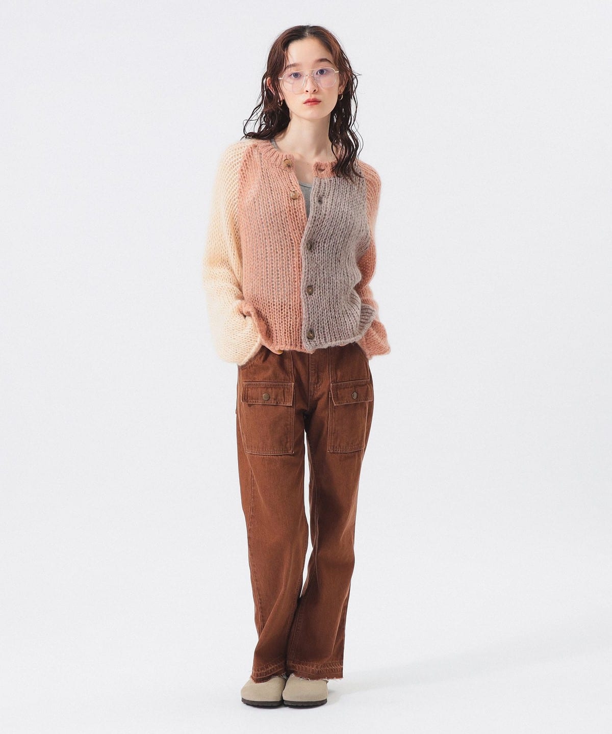 - 스트레이트 실과 슬럽 실을 섞어 직조하여, 세로 방향의 자연스러운 페이드감 과