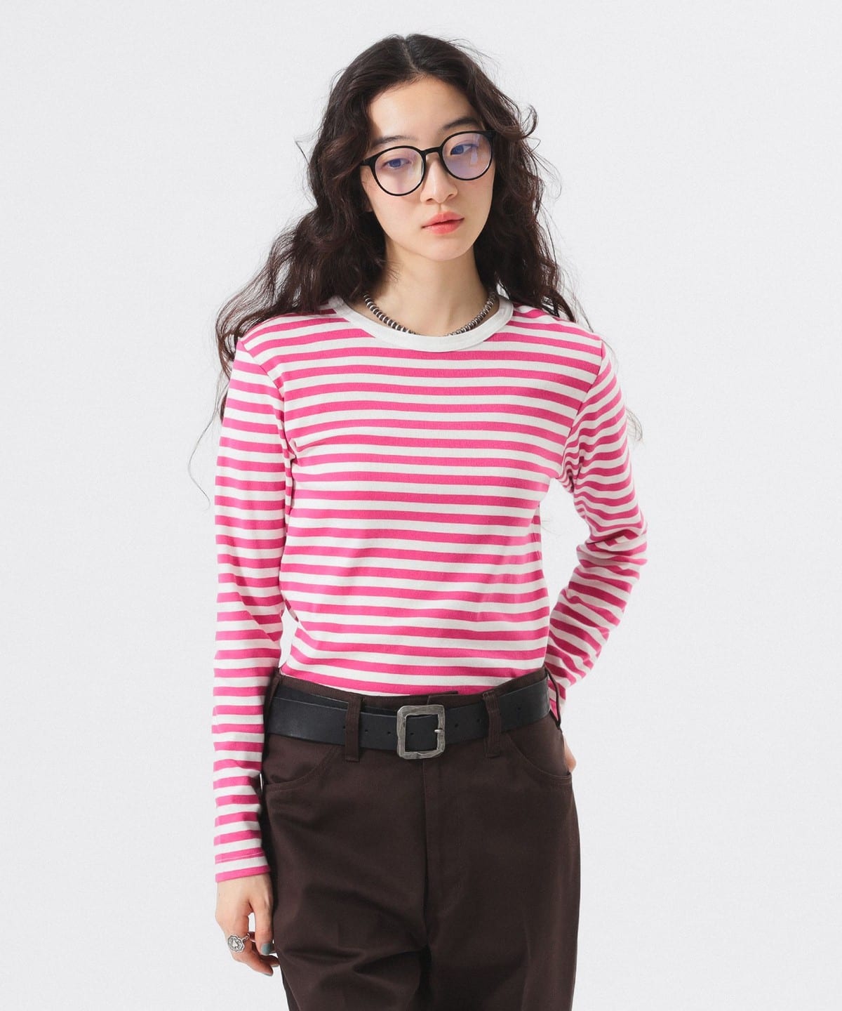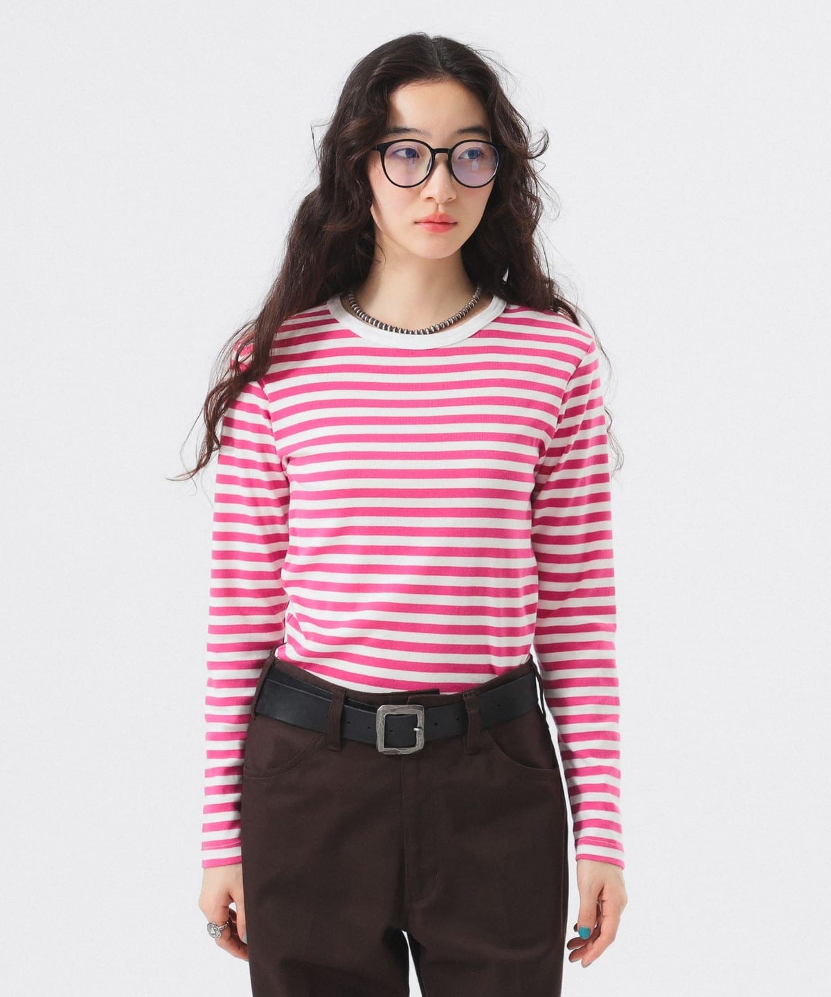 부드러운 촉감의 플라이스 원단을 사용해 적당한 핏의 긴팔 티. 몸에 자연스럽게 핏되는 슬림한 사이즈감으로 제작되었습니다.