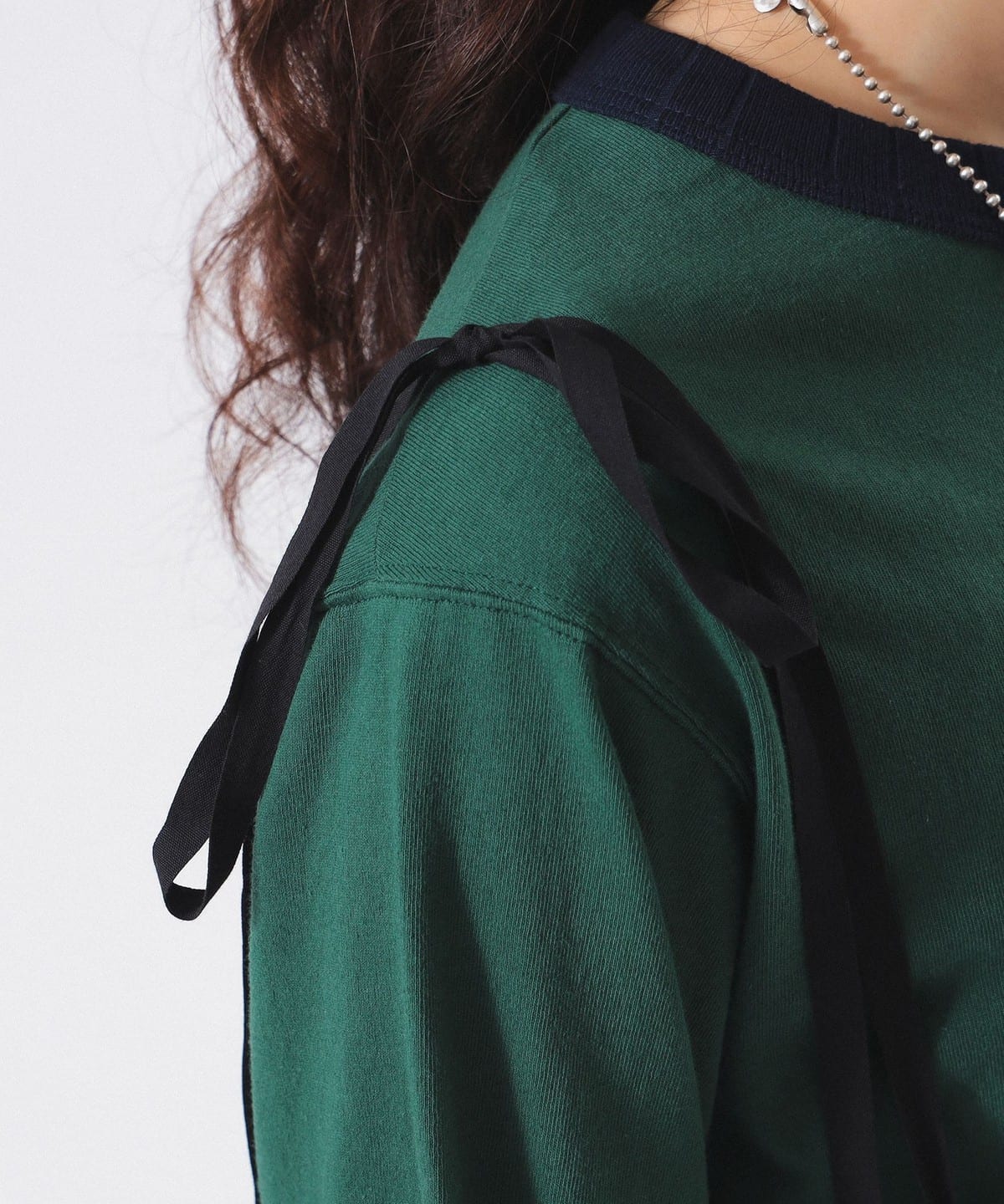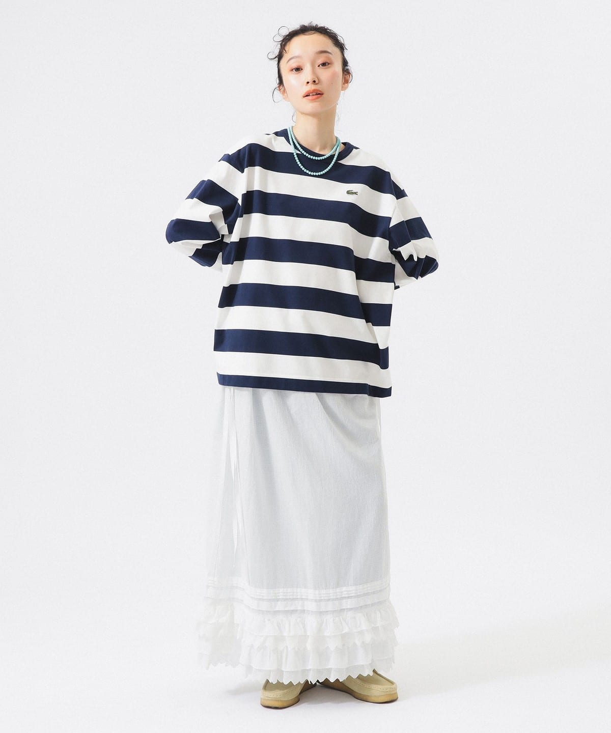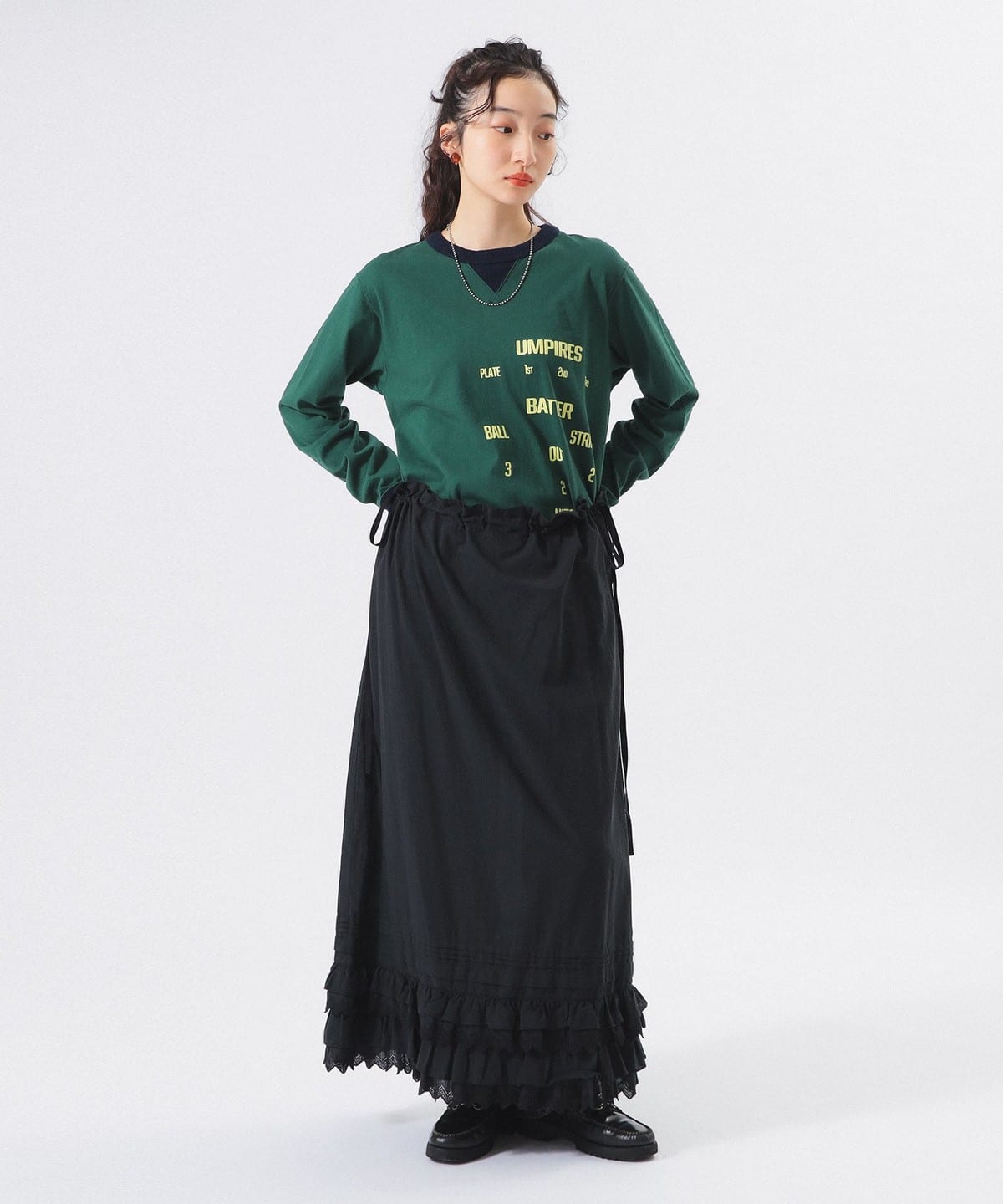 풍성한 프릴과 클래식한 텍스처가 특징인 스커트. 어깨 끈을 묶어 원피스처럼 입을 수 있습니다.