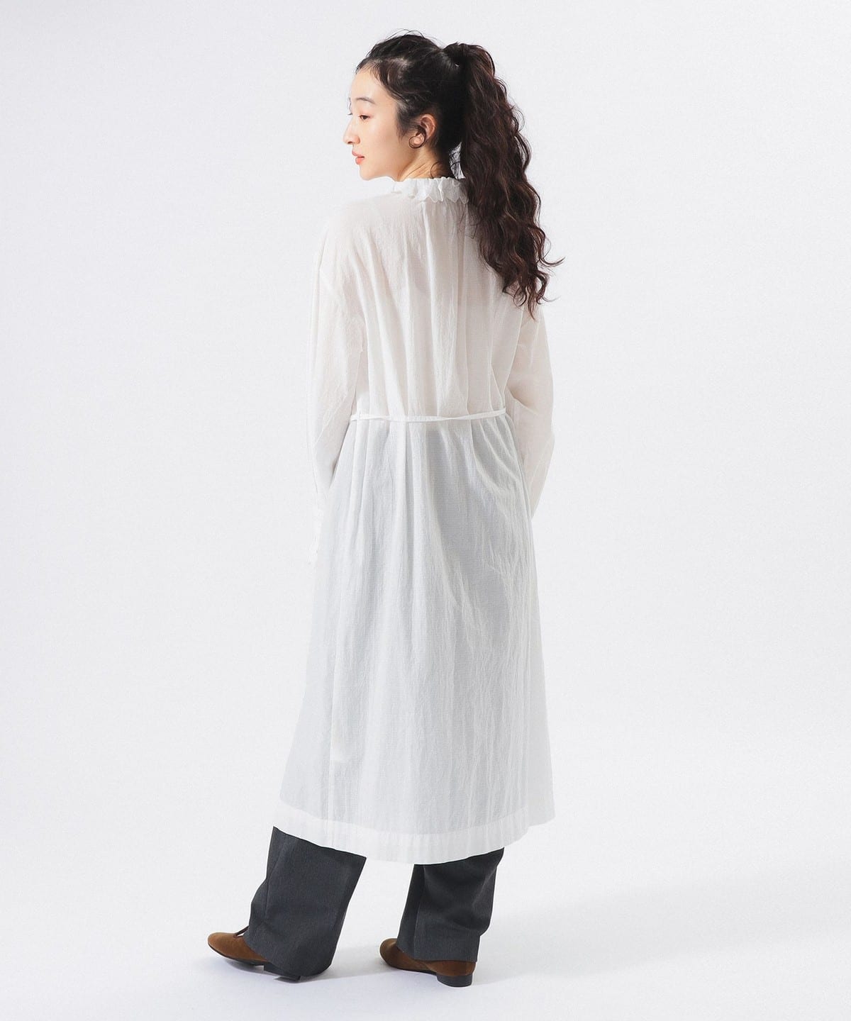허리끈을 묶어 자연스러운 핏 조절이 가능합니다.