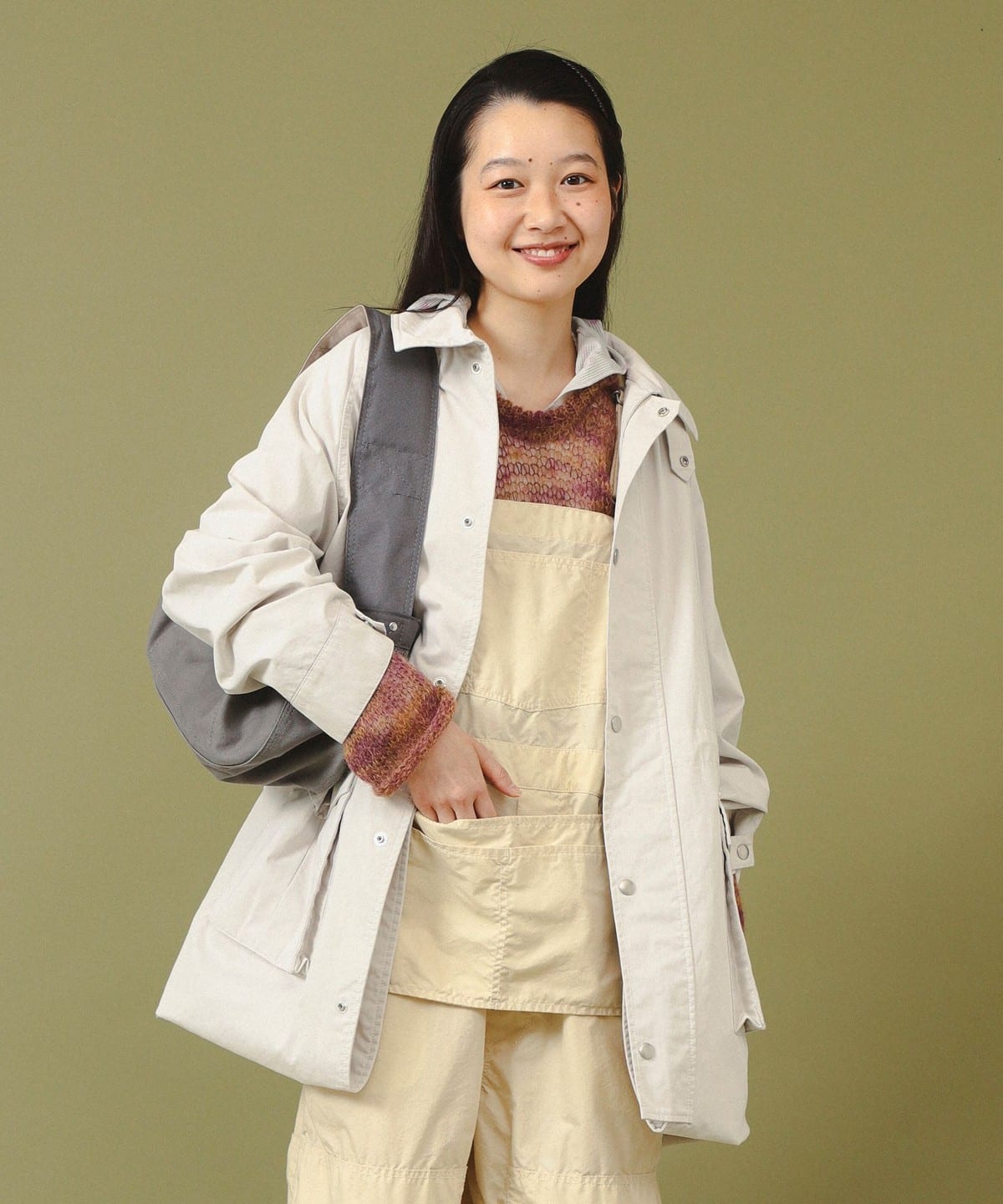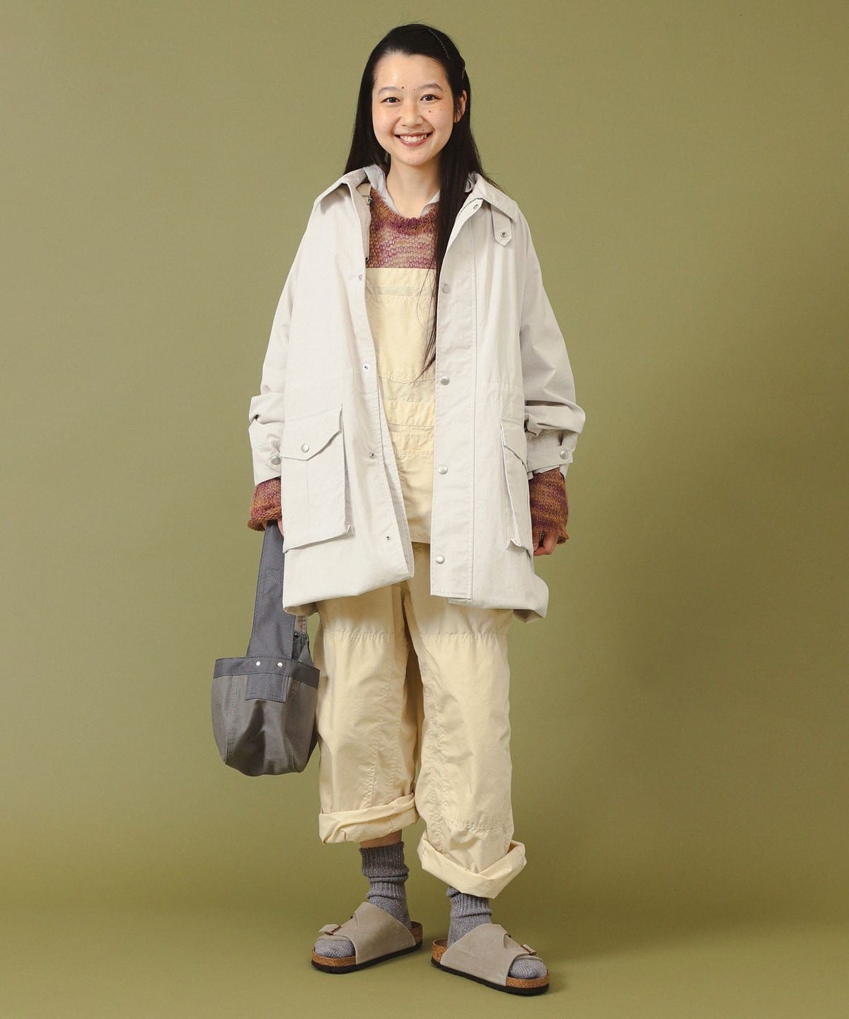밑단을 접어 올려 쇼트 코트 디자인으로 입을 수 있습니다.