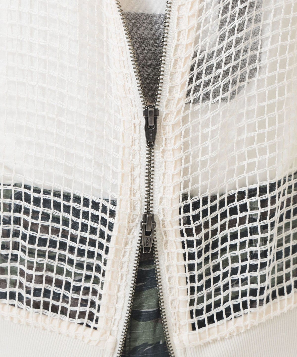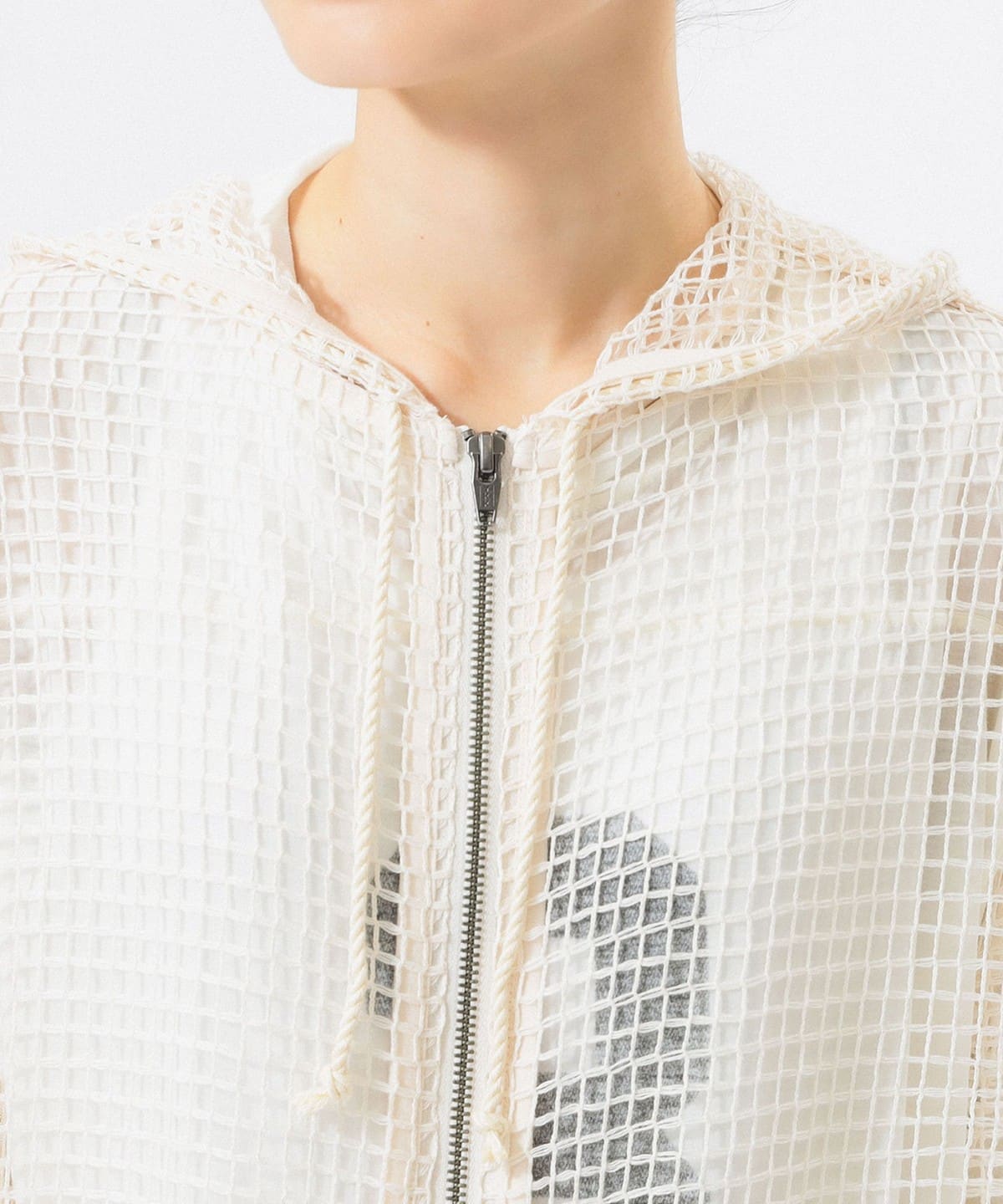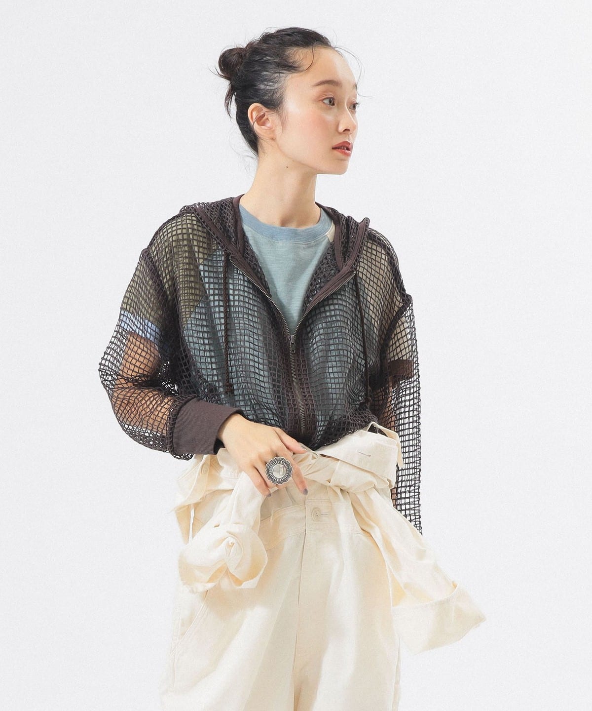 원단은 코튼 100%의 큼직한 격자 패턴 스퀘어 메쉬로 변경되었으며 소매와 밑단에는 부드러운 리브 마감을 적용해 메쉬 특유의 루즈함이 과해 보이지 않도록 균형을 잡았습니다.
