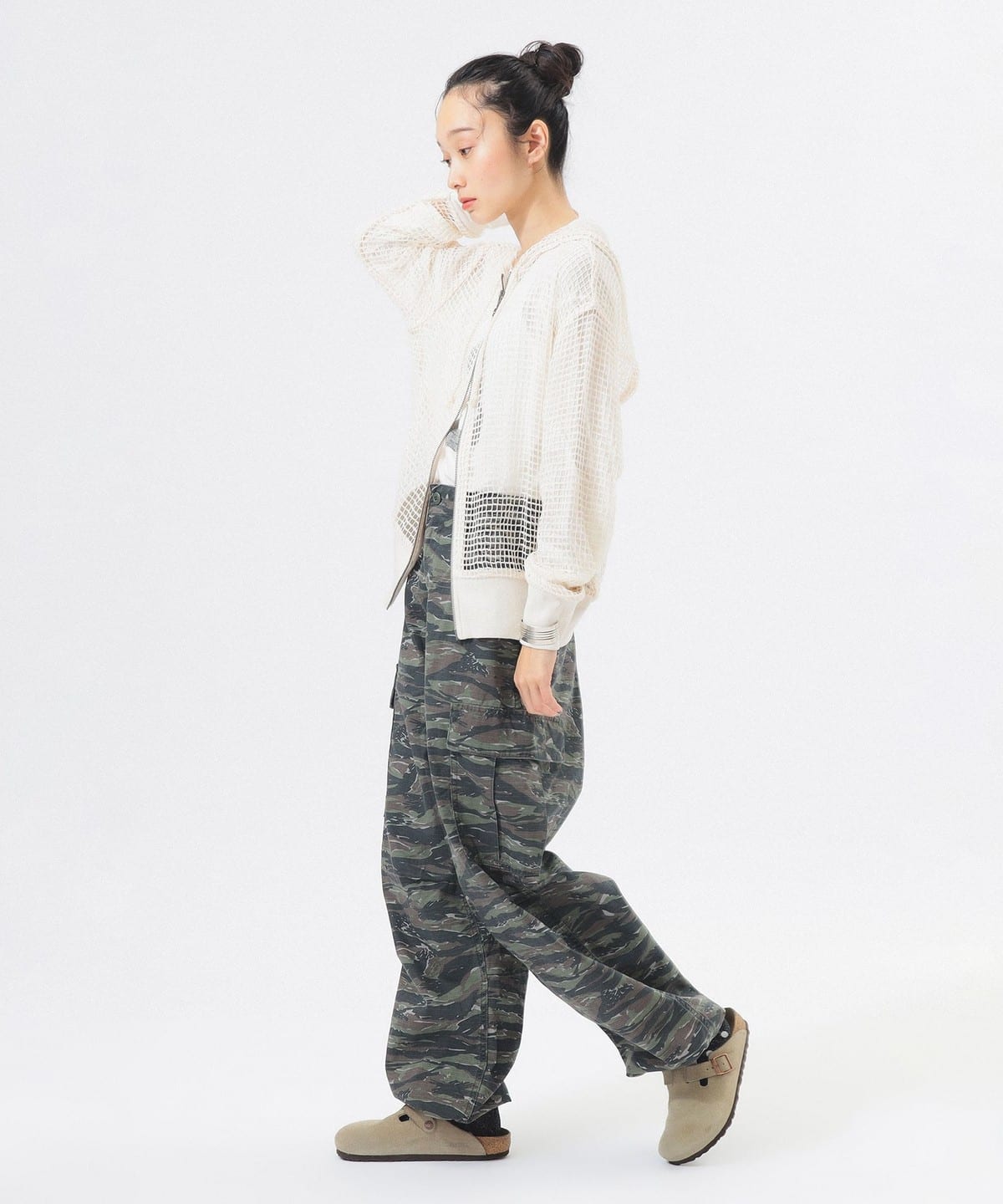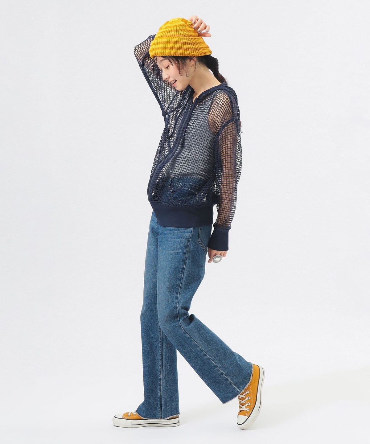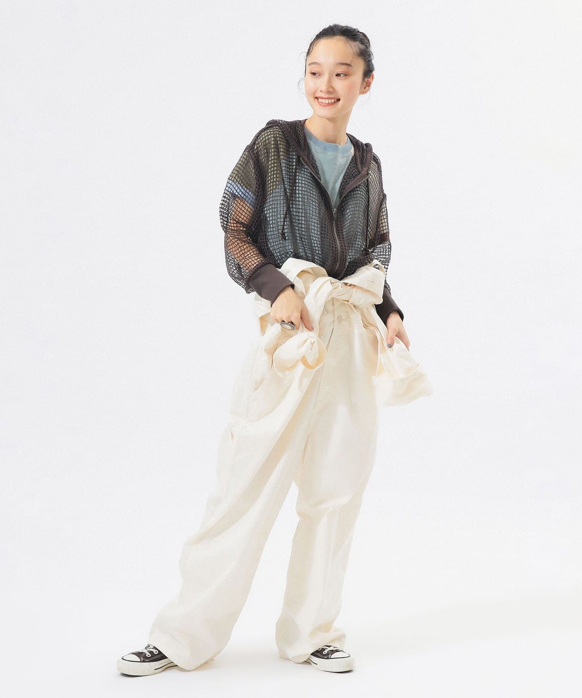 원단은 코튼 100%의 큼직한 격자 패턴 스퀘어 메쉬로 변경되었으며 소매와 밑단에는 부드러운 리브 마감을 적용해 메쉬 특유의 루즈함이 과해 보이지 않도록 균형을 잡았습니다.