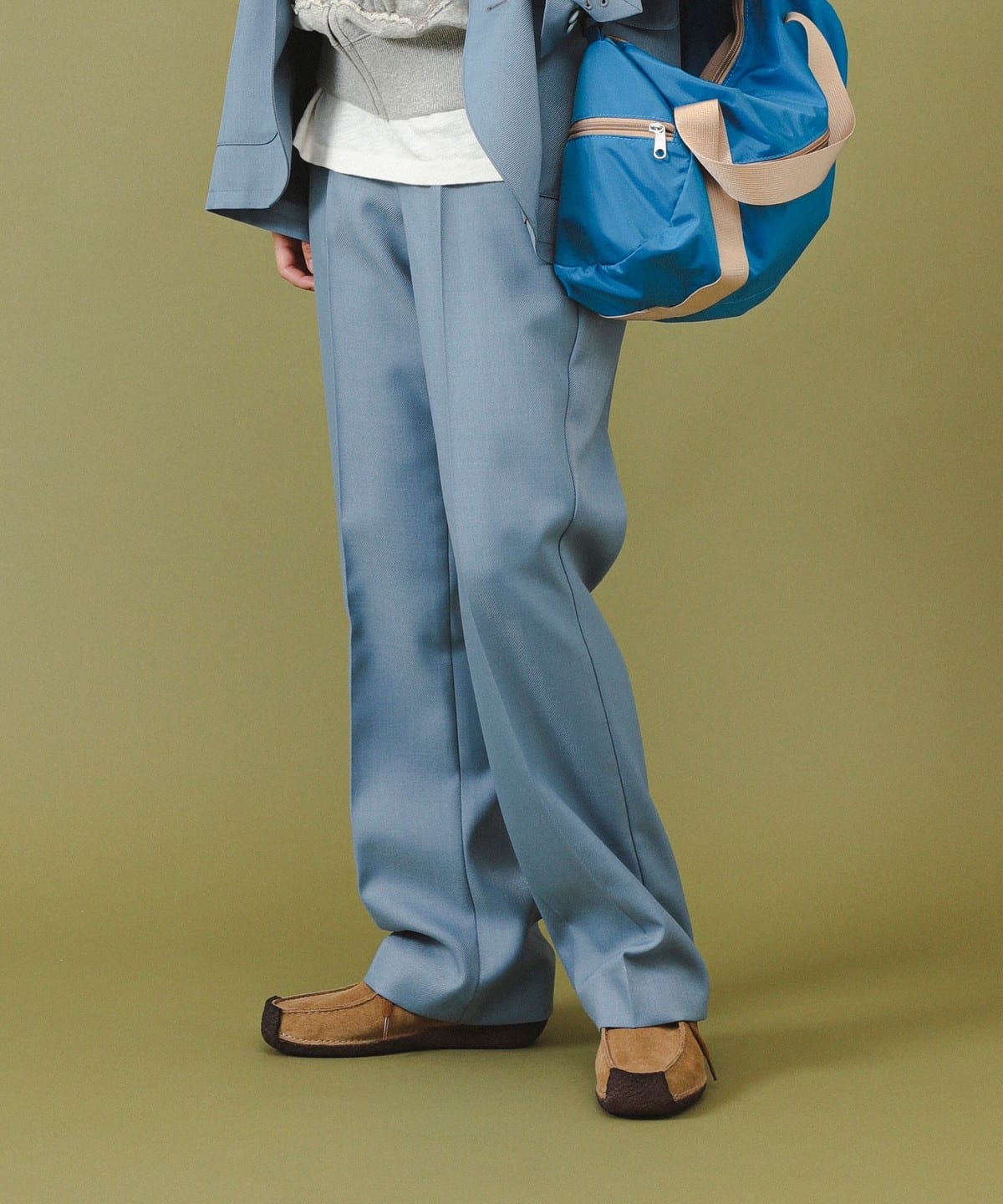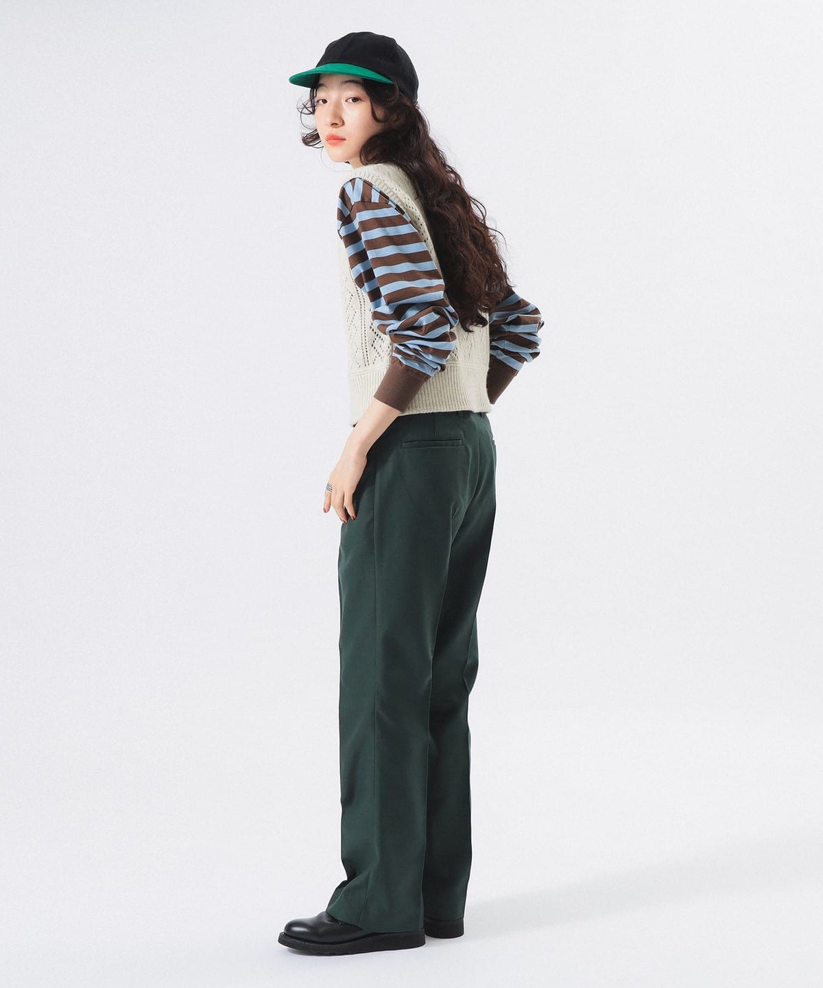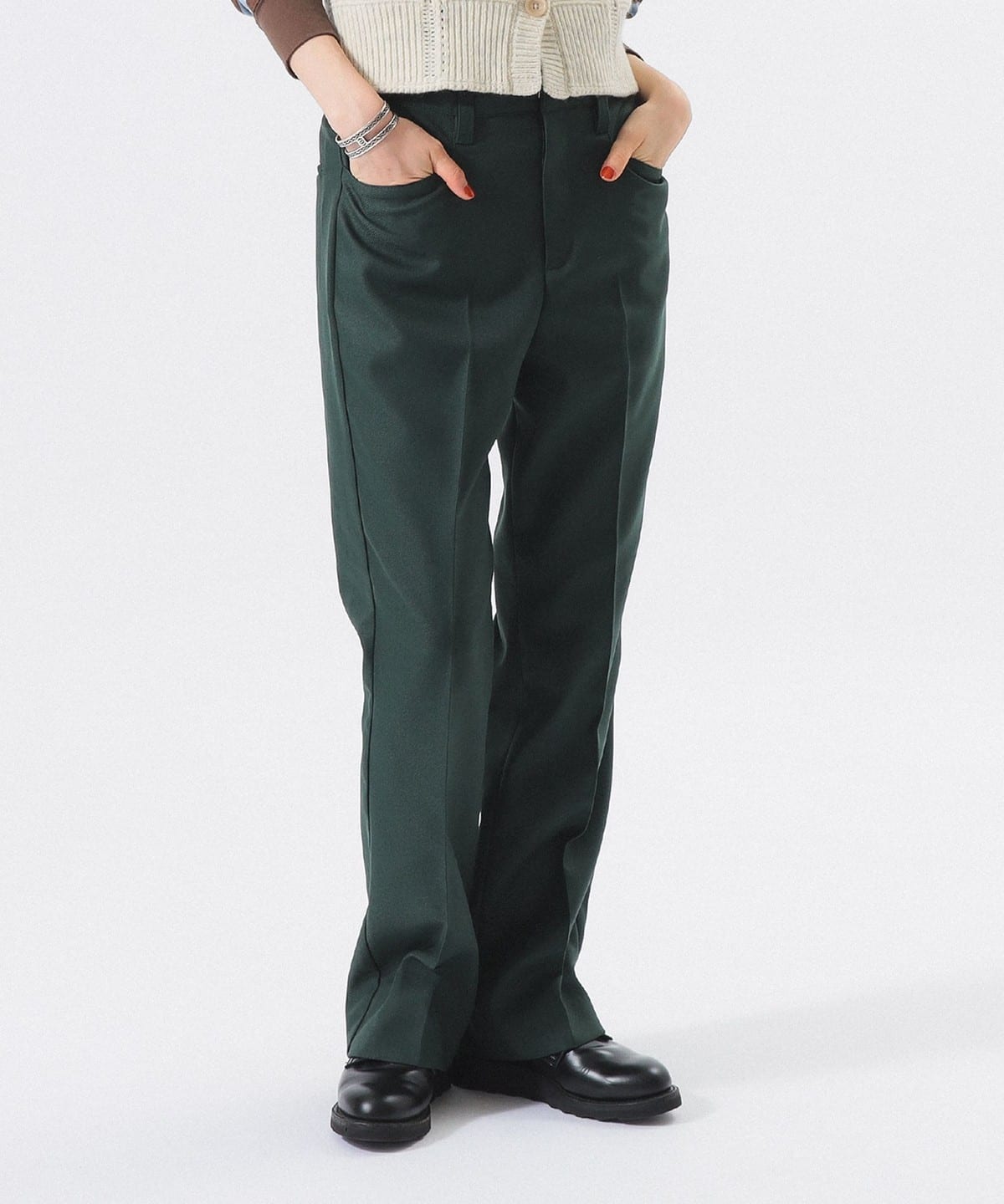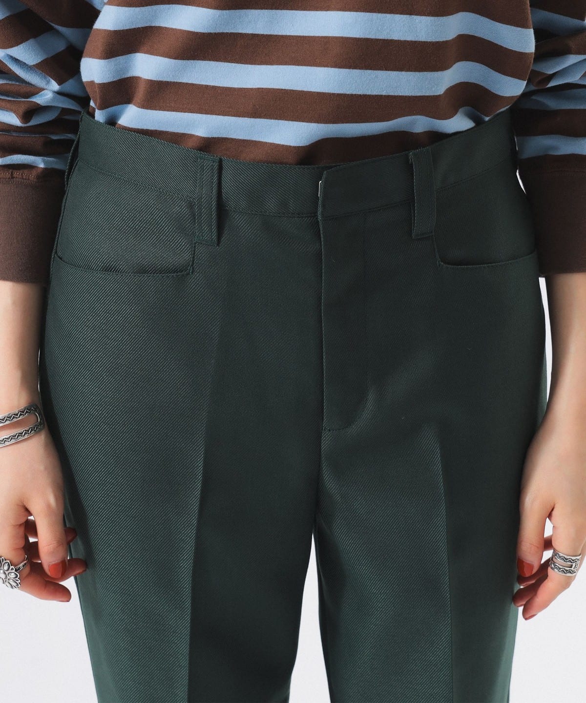 폴리에스테르 트윌 슬렉스로 길게 설계된 벨트루프는 은근한 포인트가 되어줍니다.