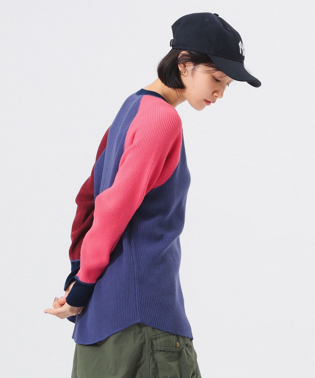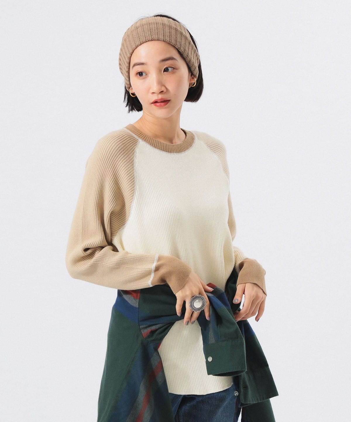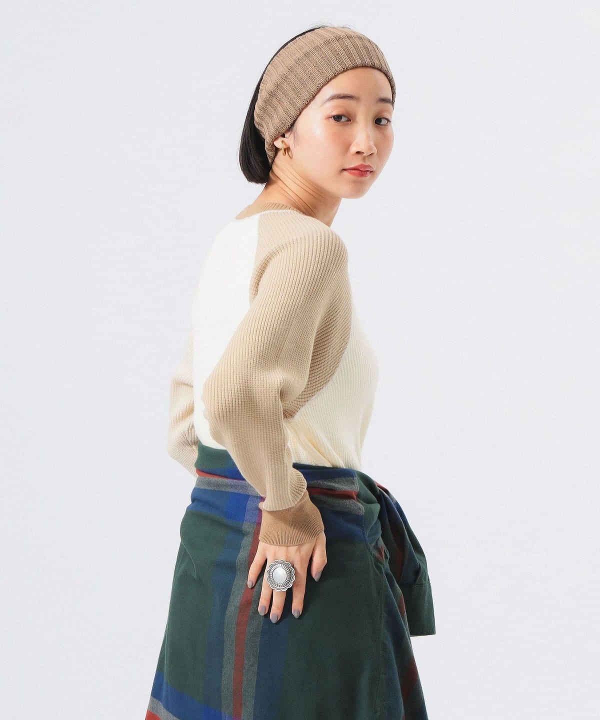 차분한 색상의 크레이지 컬러 배색의 니트.