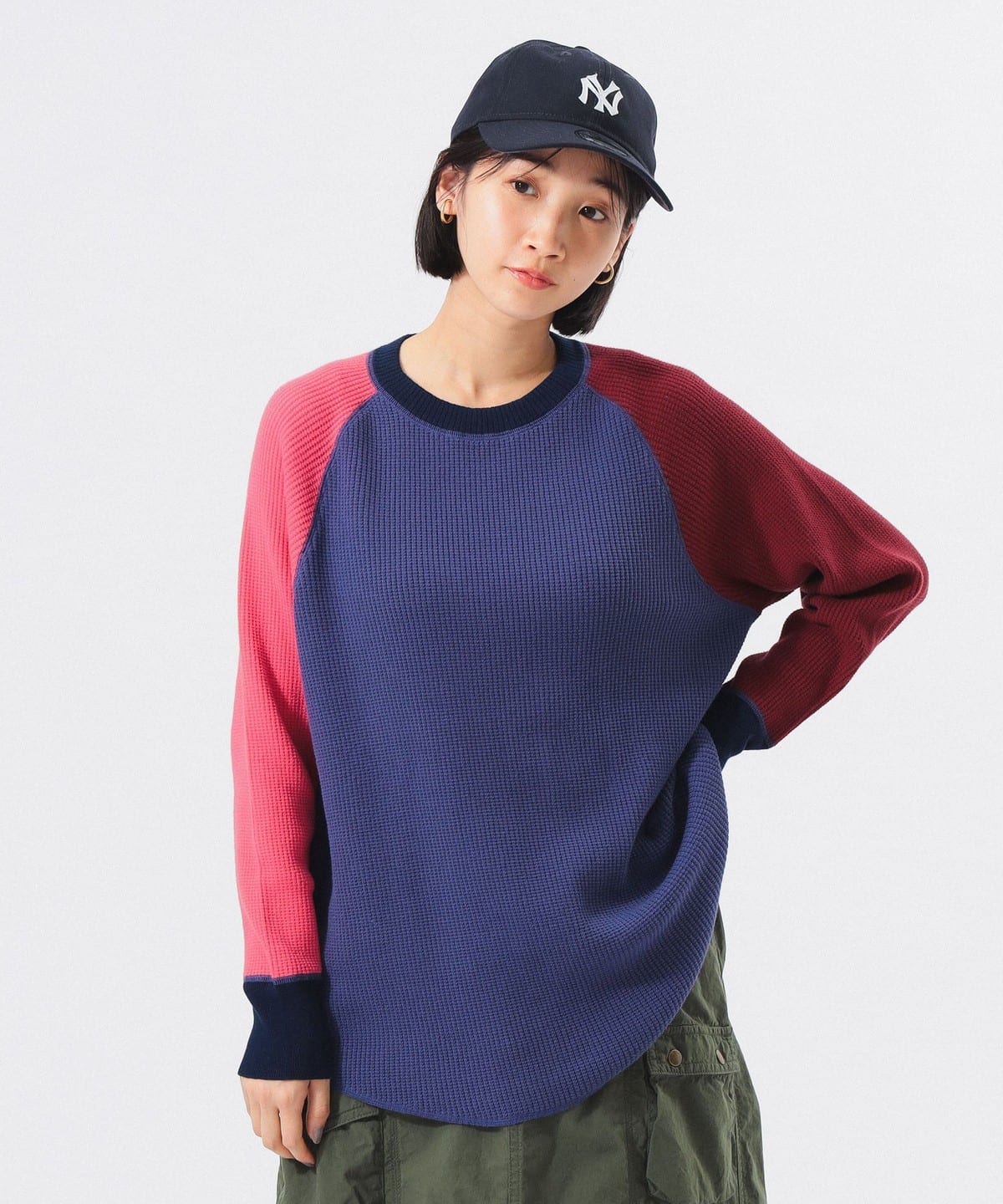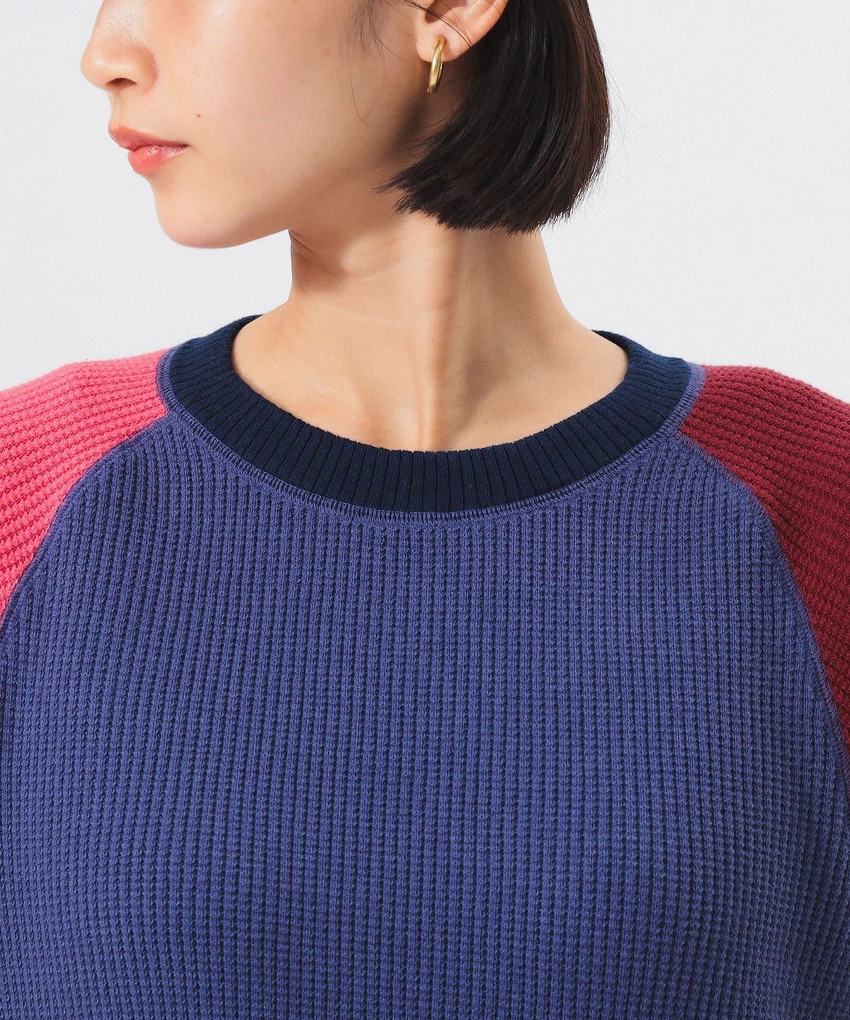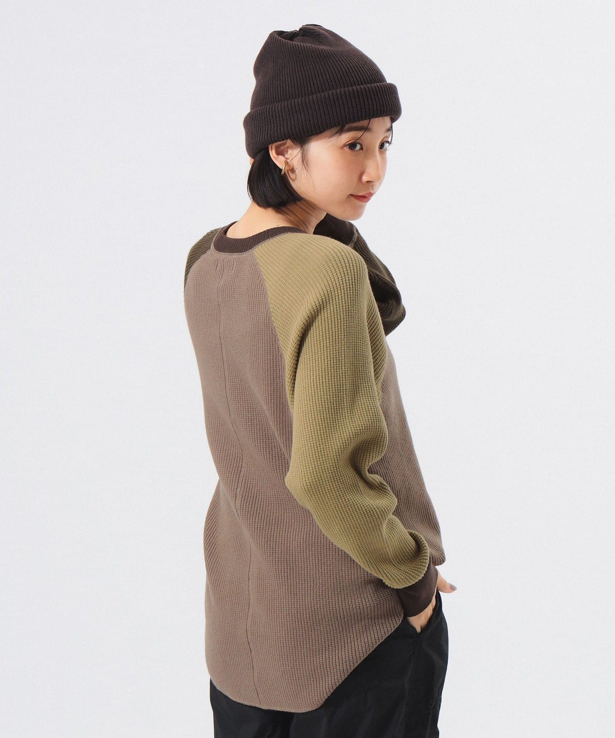차분한 색상의 크레이지 컬러 배색의 니트.