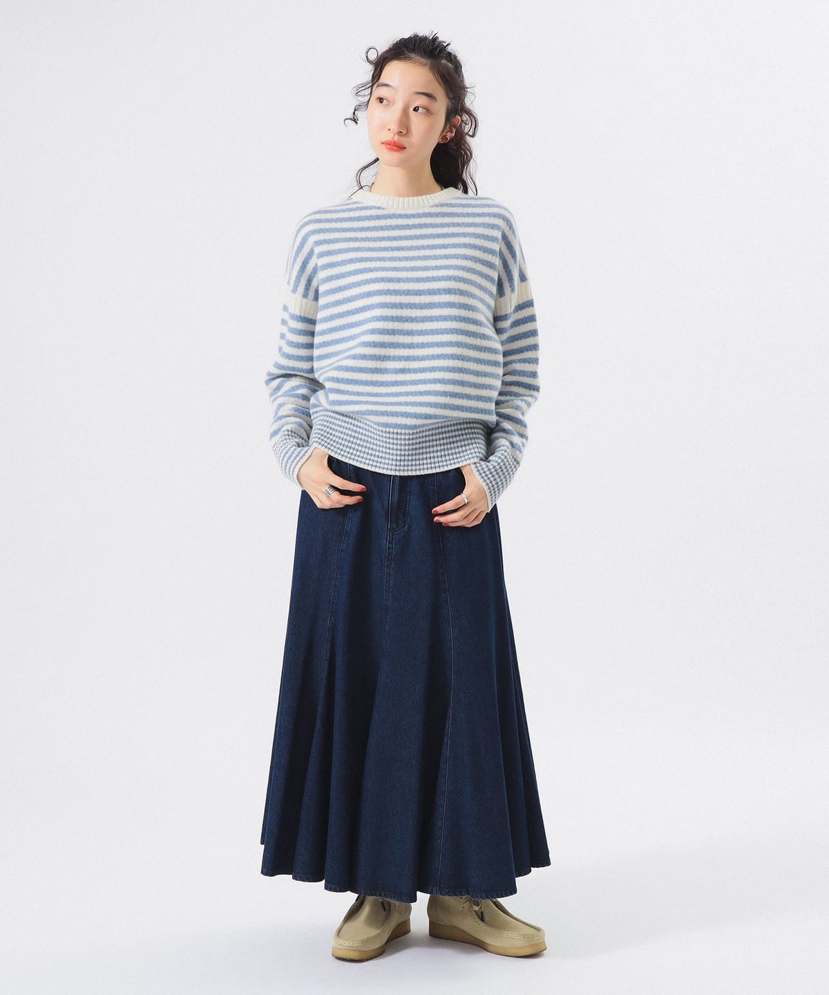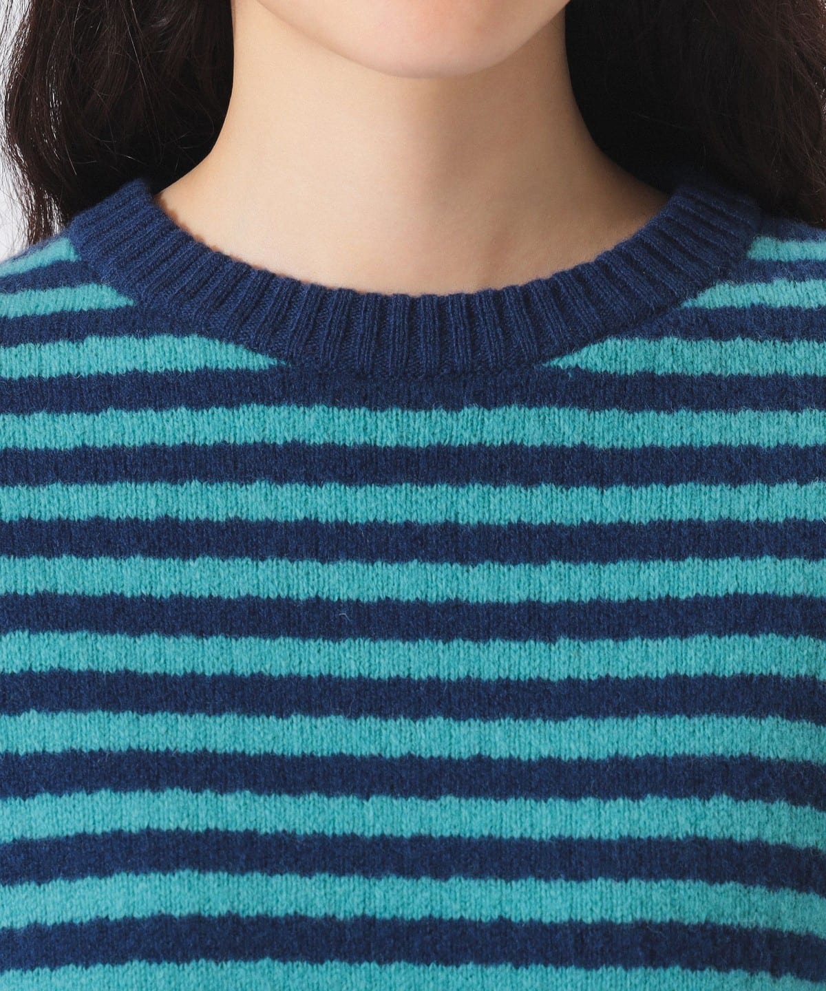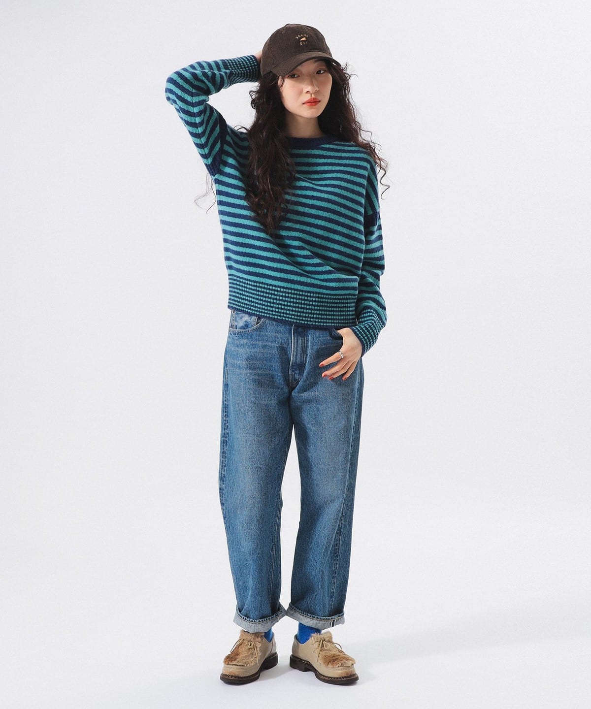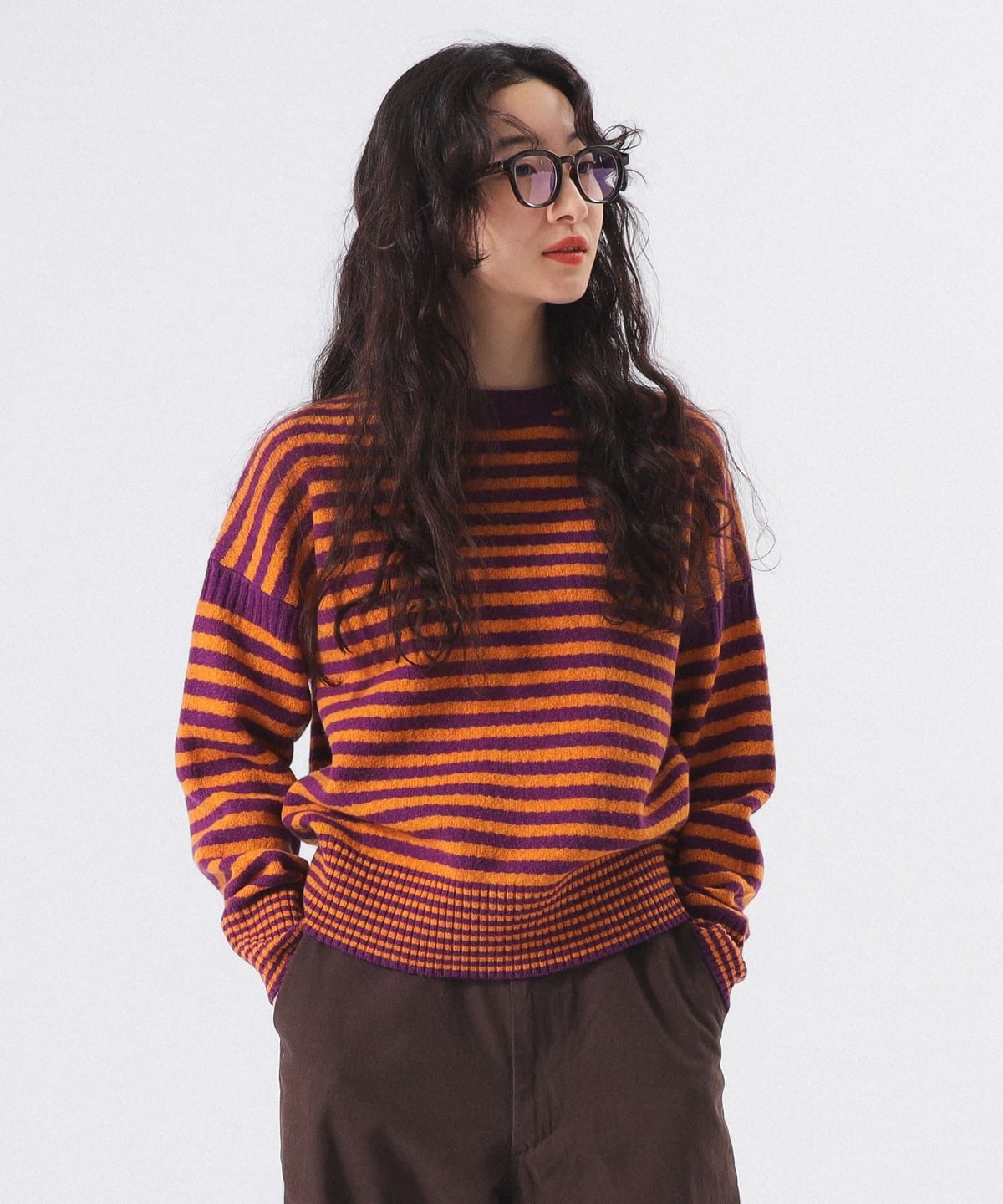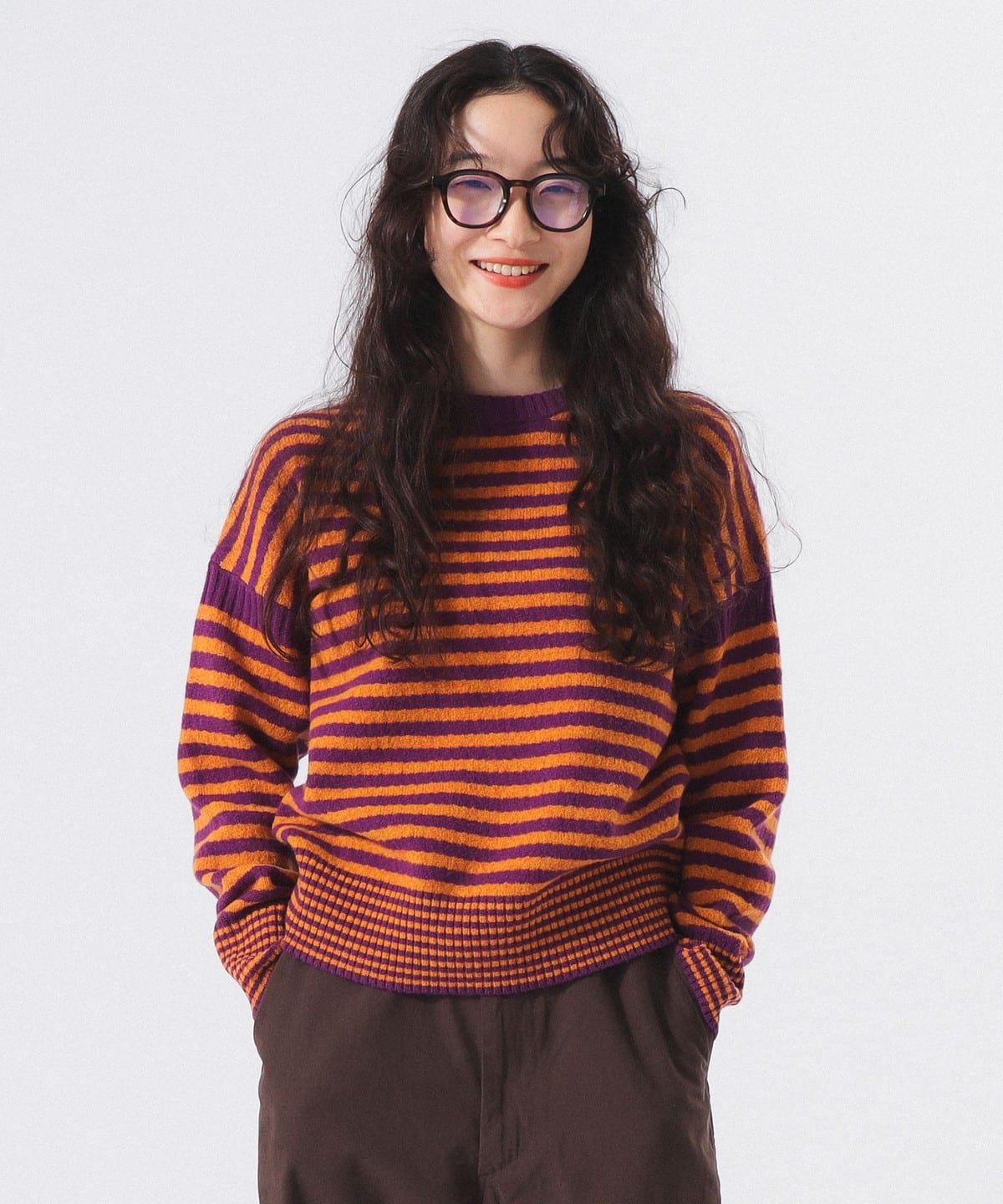 컬러풀한 배색의 울 니트. 편안하고 릴렉스한 실루엣입니다.