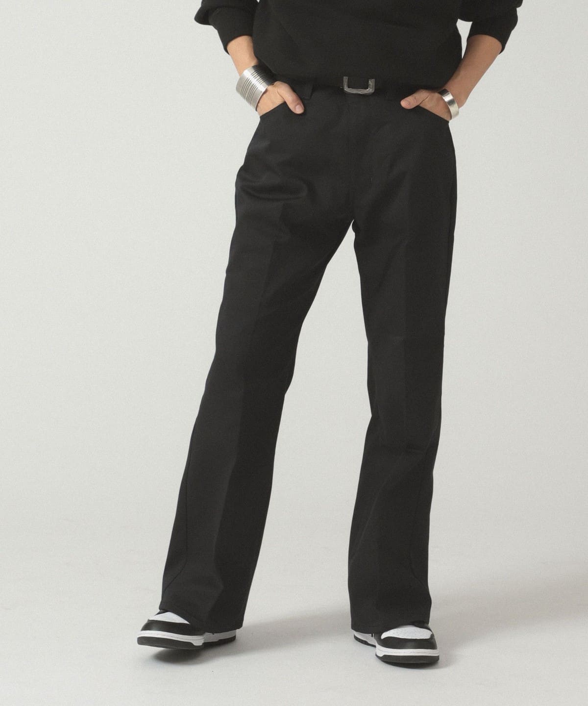 1980년대에 실제 존재했던 데님 웨스턴 팬츠를 모티프로, DICKIES 특유의 TC 트윌 워크 원단 으로 재구성한 특별한 플레어 팬츠입니다.