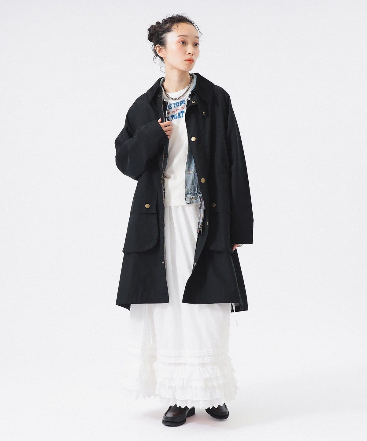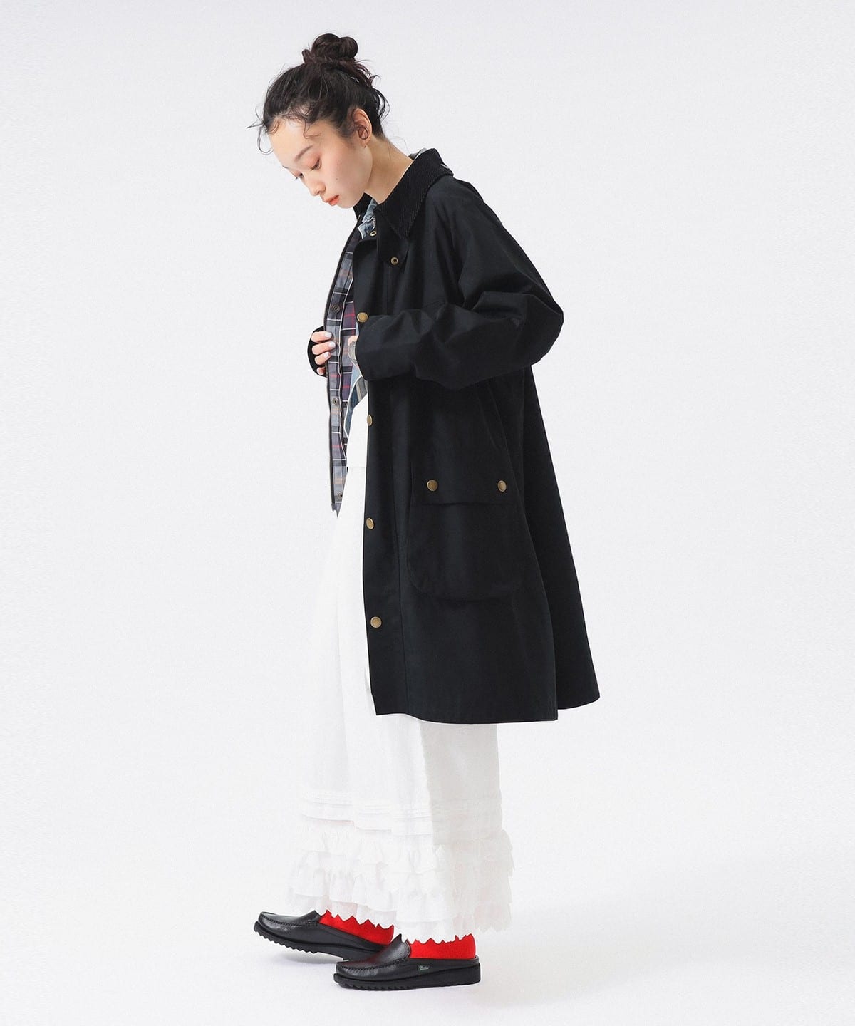 영국을 대표하는 브랜드 바버와 빔즈보이의 스페셜 모델. 넉넉한 품과 어깨 움직임을 방해하지 않는 래글런 슬리브로 레이어드 하기 좋습니다.