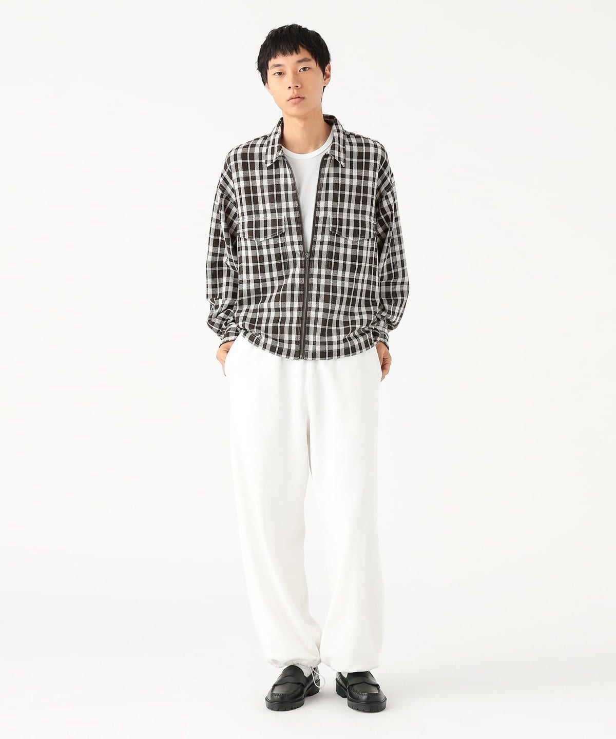 빈티지 워크셔츠의 분위기를 살리면서도 오리지널 체크 패턴의 집업 셔츠