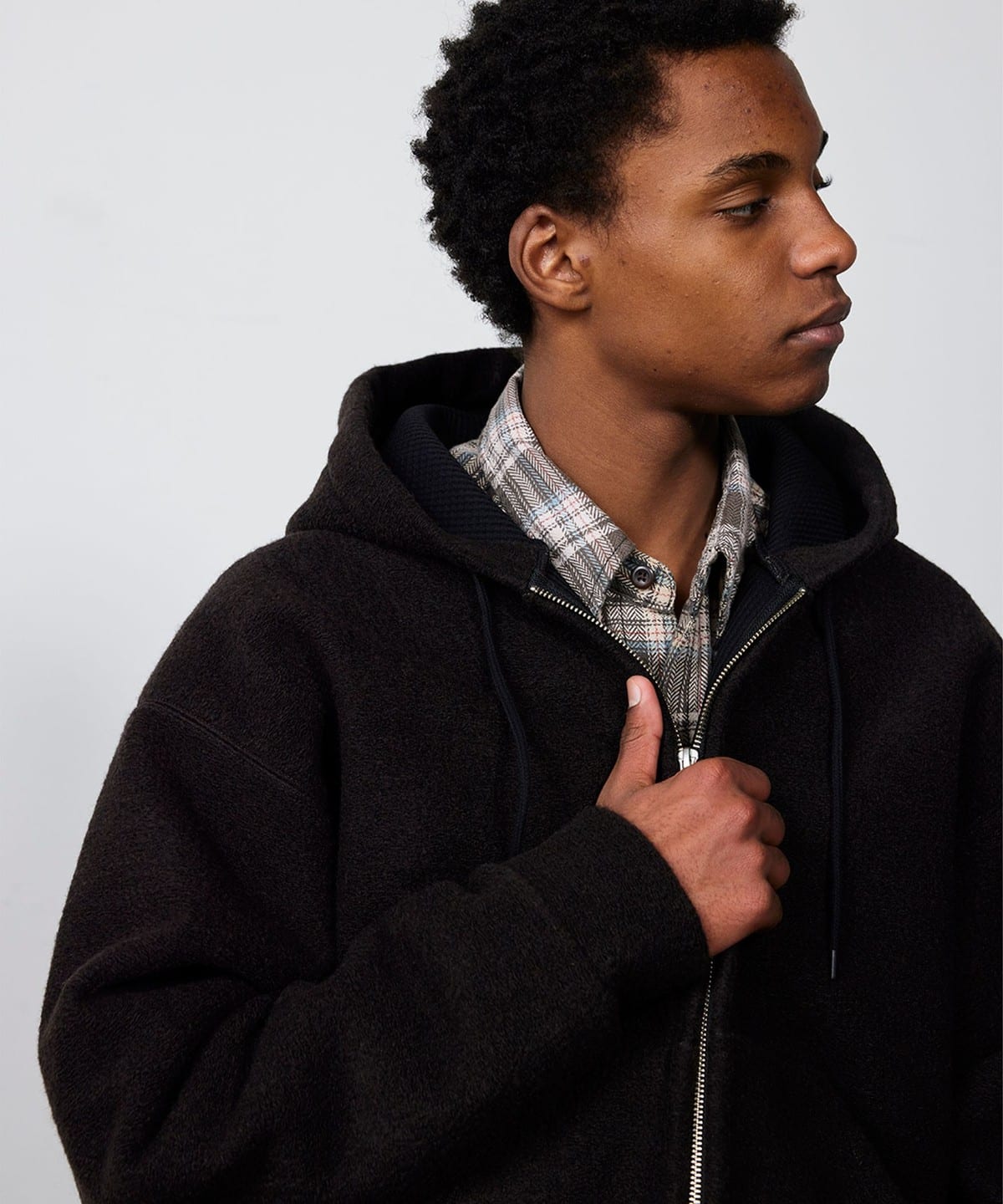 여유 있는 볼륨 실루엣에 트렌디한 짧은 기장감을 더한 풀집업 후드입니다. 방풍 효과가 뛰어난 더블페이스 구조이며 와이드한 품과 짧은 길이의 와읻 숏 핏 실루엣입니다.