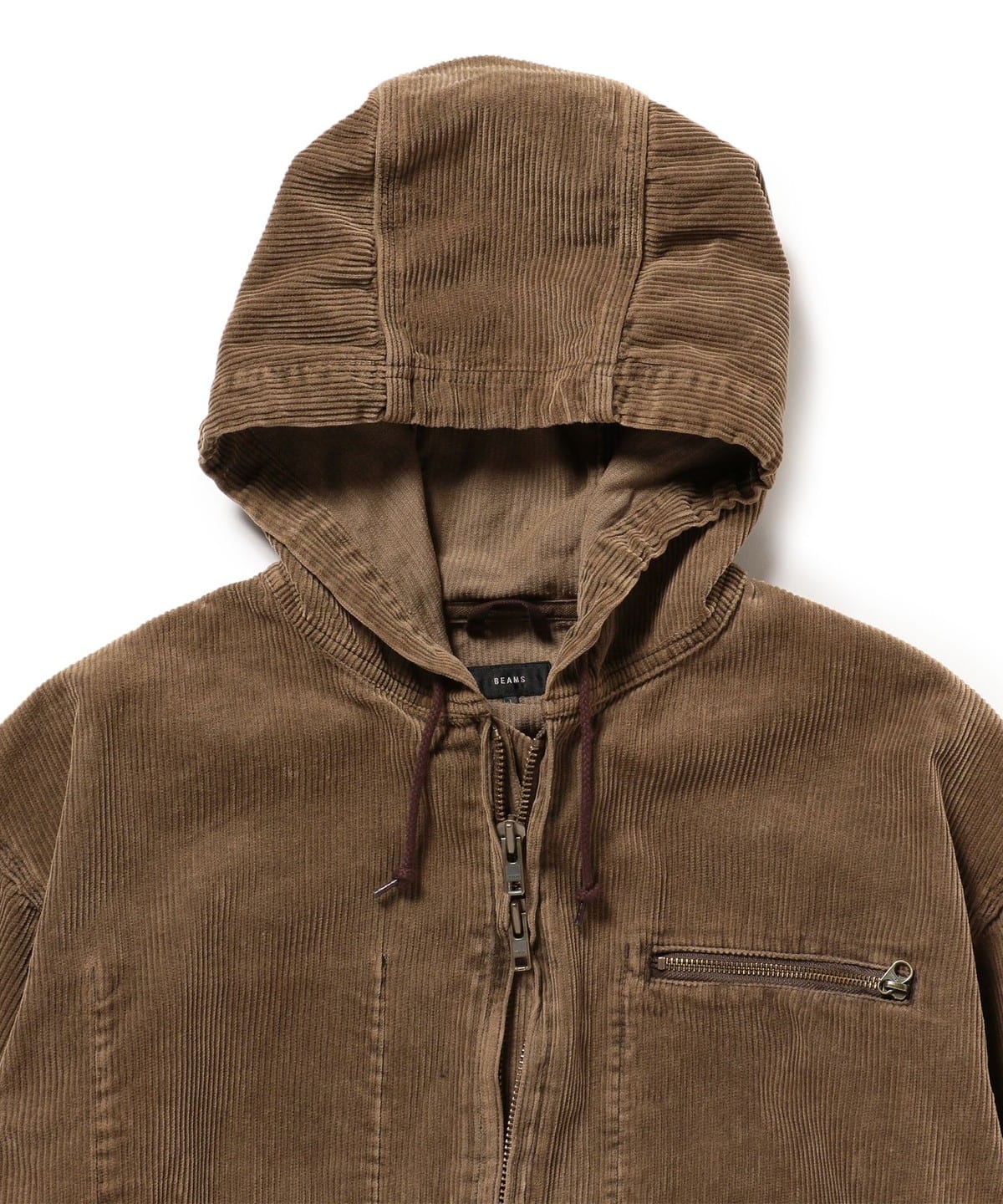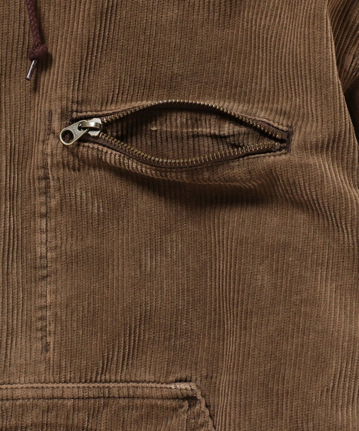 리얼 빈티지처럼 자연스러운 페이드 가공이 특징인 코듀로이 후드 블루종입니다. 소매는 2단계 조절이 가능한 버튼식 어저스터가 있ㅅ브니다.