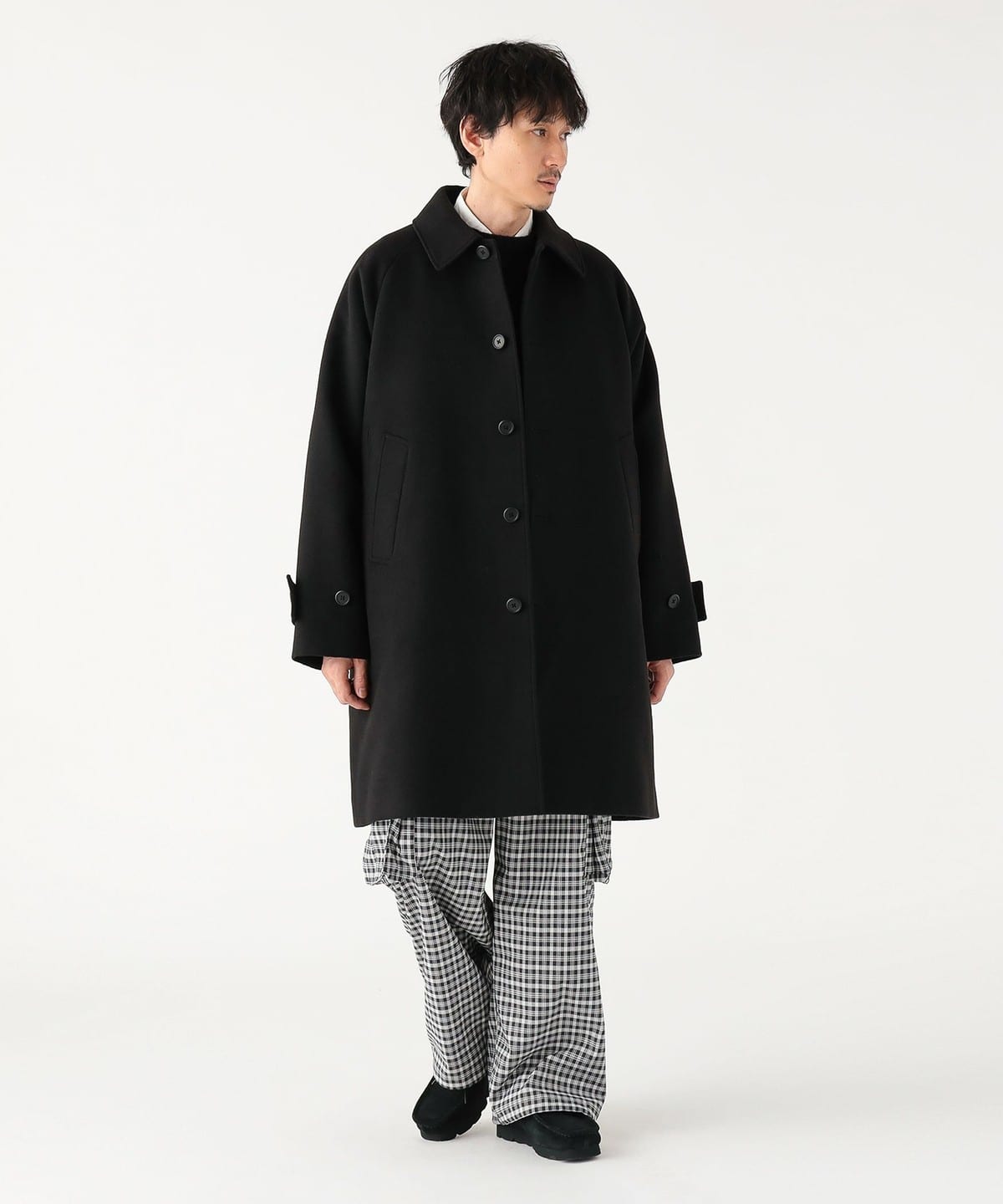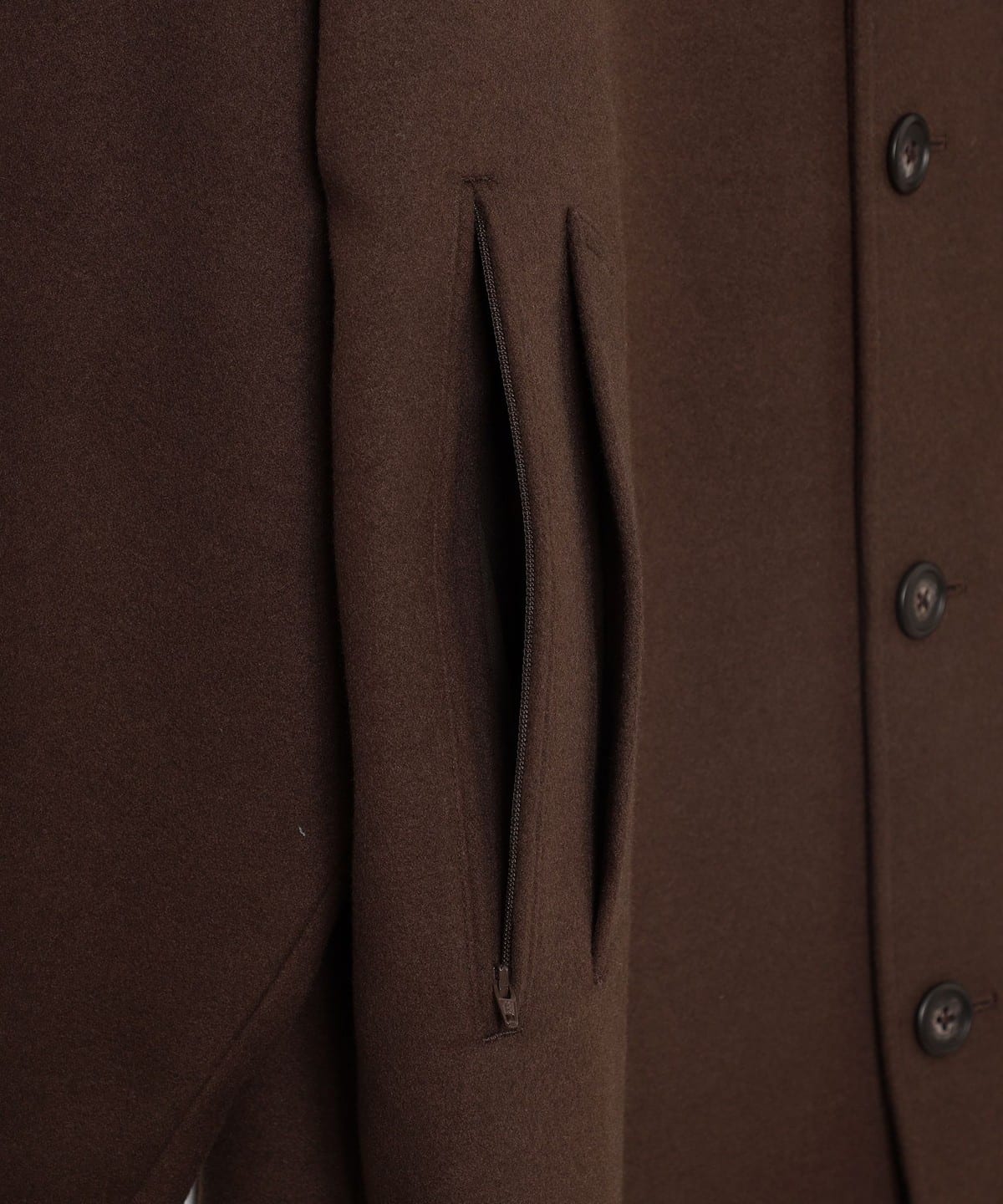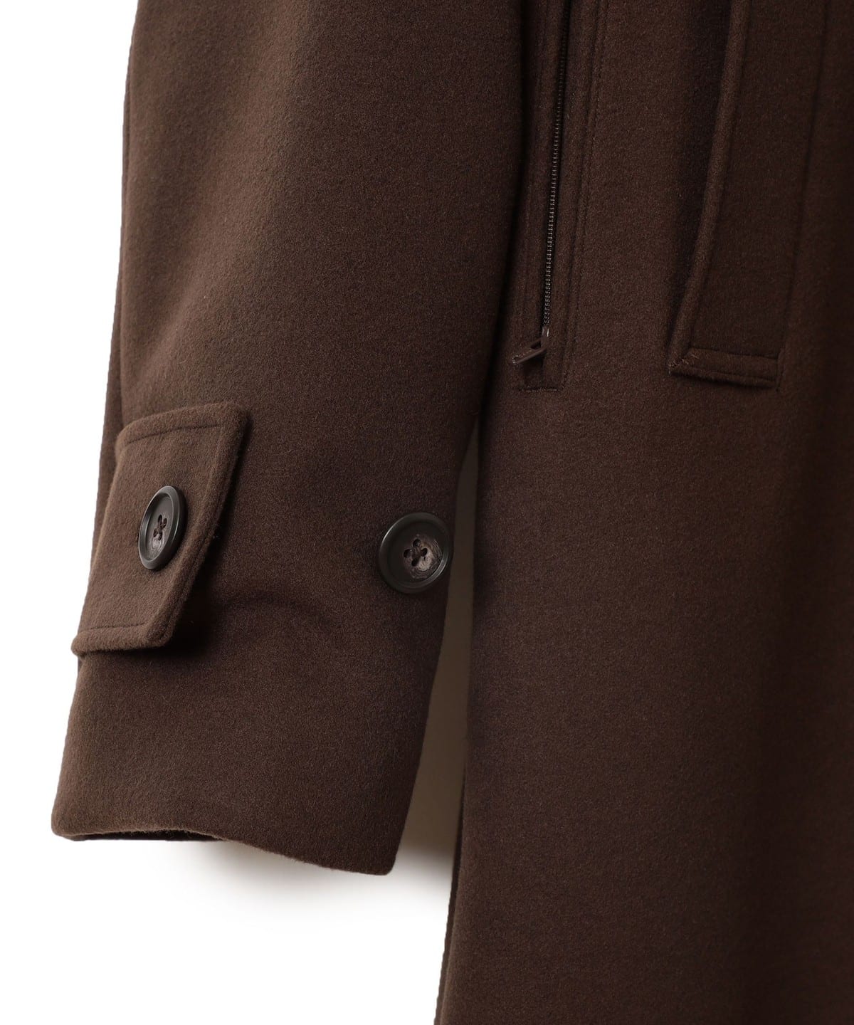 밀도감 있는 플리스 멜톤 소재로 제작된 스텐칼라 코트입니다. 넓은 소매끝에는 버튼으로 조절 가능한 스트랩이 있으며 여유 있는 사이즈로 캐주얼한 느낌입니다.