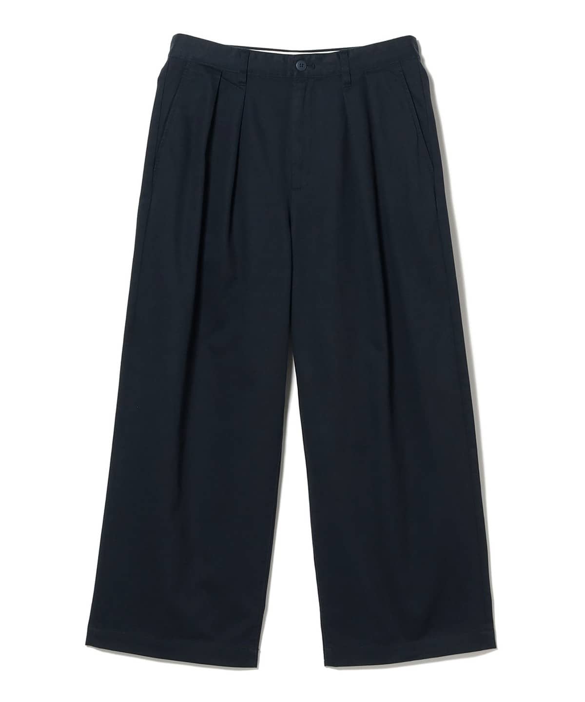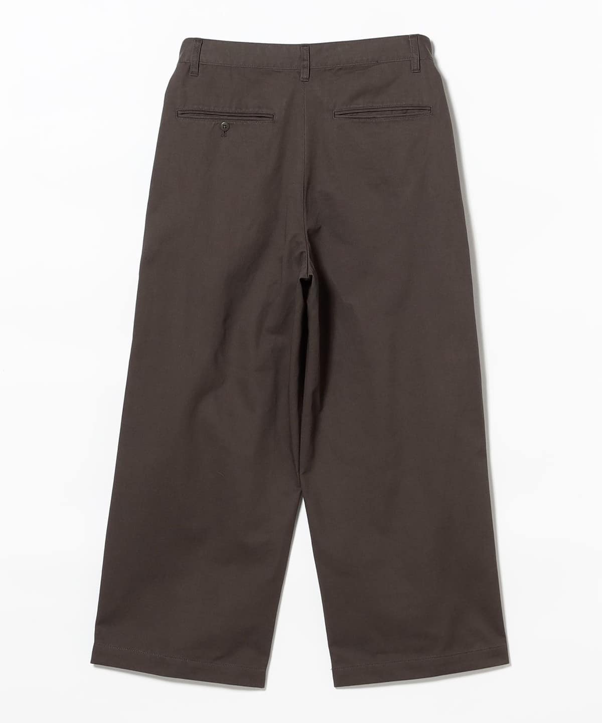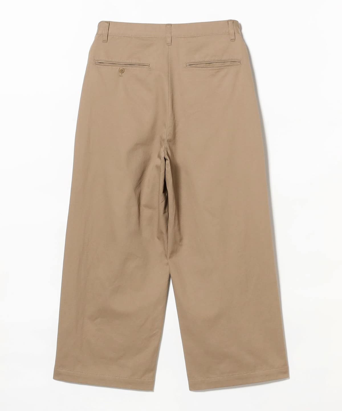 강렬한 와이드 실루엣이 돋보이는 투 플리츠 치노 팬츠. 허리에 드로우스트링이 있으며 힙 라인에 여유 있는 와이드 실루엣입니다. 밑단에도 드로우스트링이 있어 실루엣을 조절할 수 있습니다.
