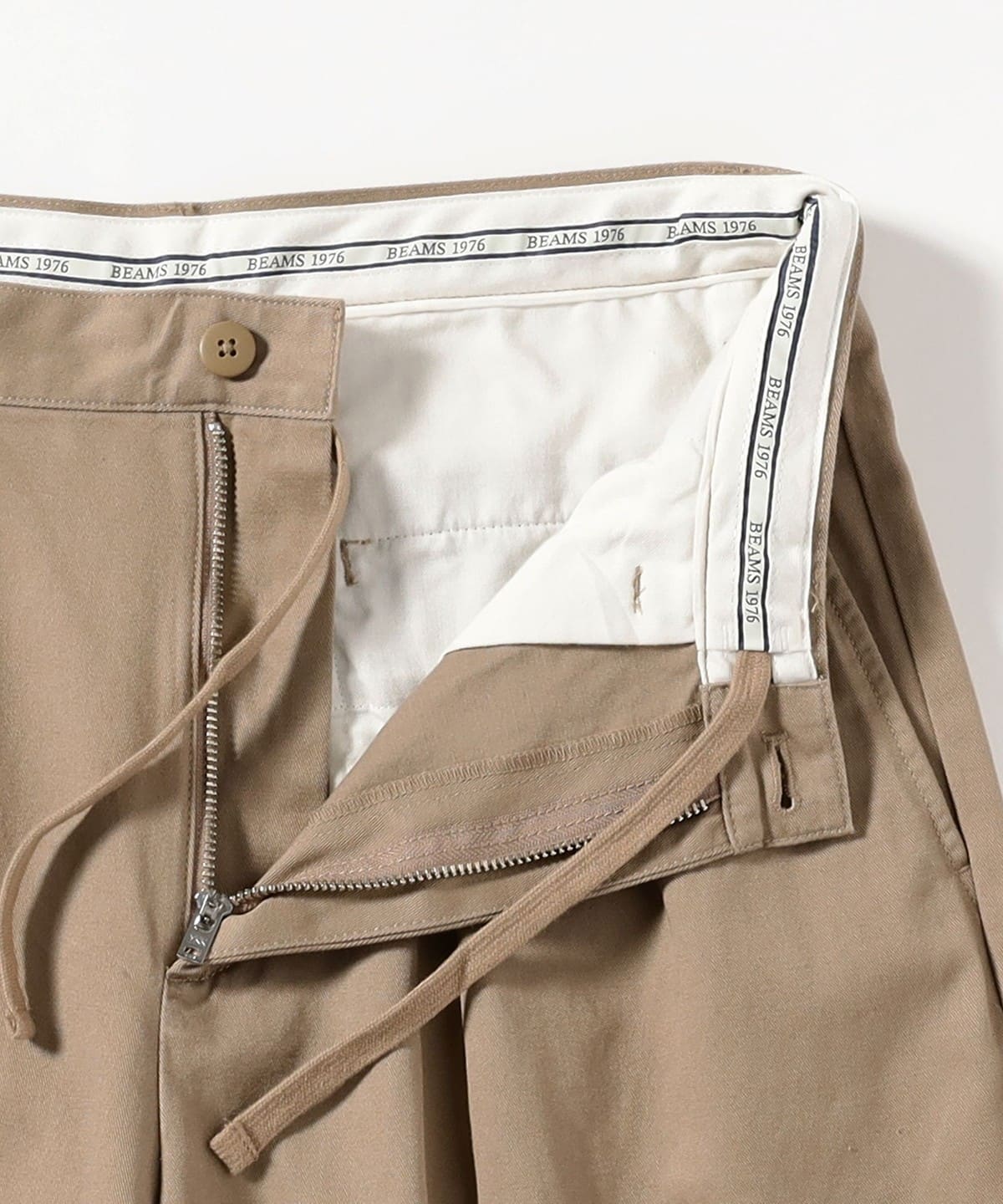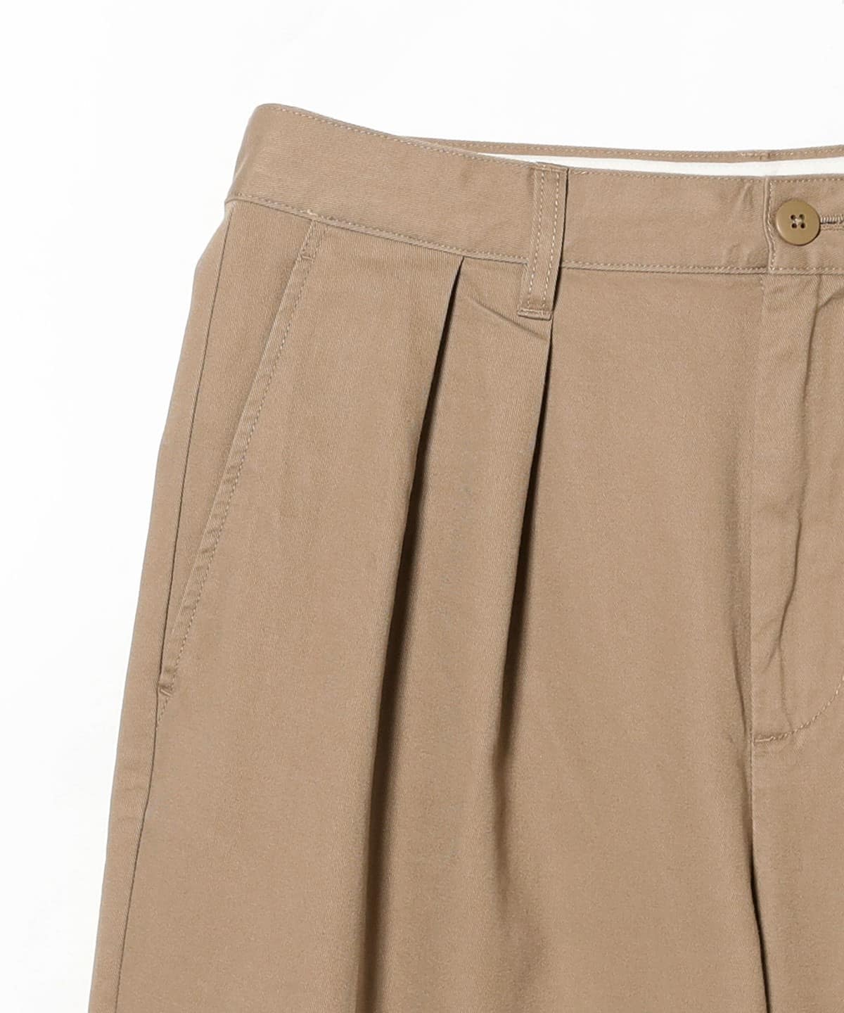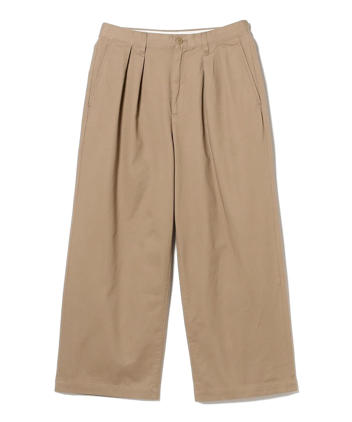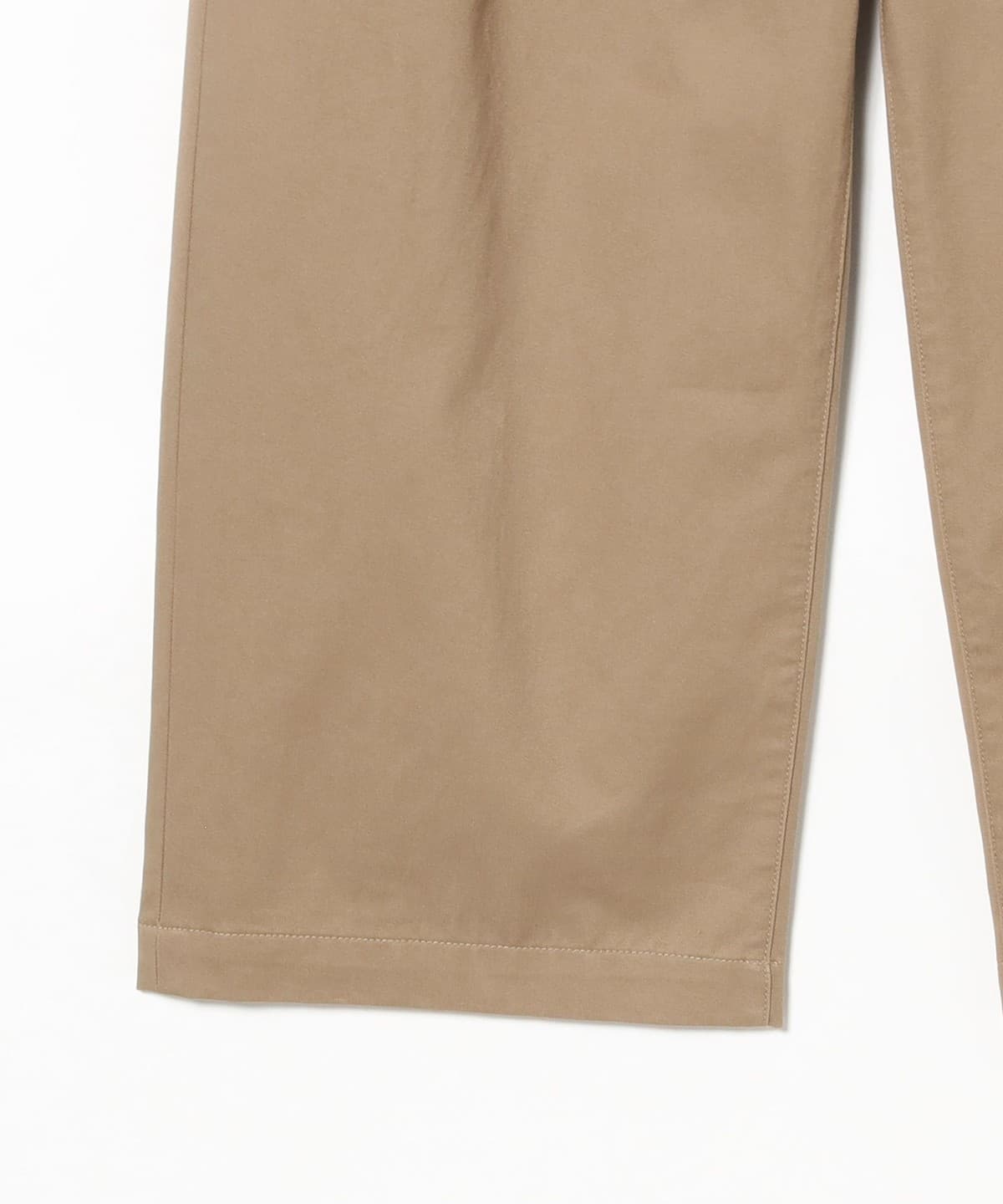 강렬한 와이드 실루엣이 돋보이는 투 플리츠 치노 팬츠. 허리에 드로우스트링이 있으며 힙 라인에 여유 있는 와이드 실루엣입니다. 밑단에도 드로우스트링이 있어 실루엣을 조절할 수 있습니다.