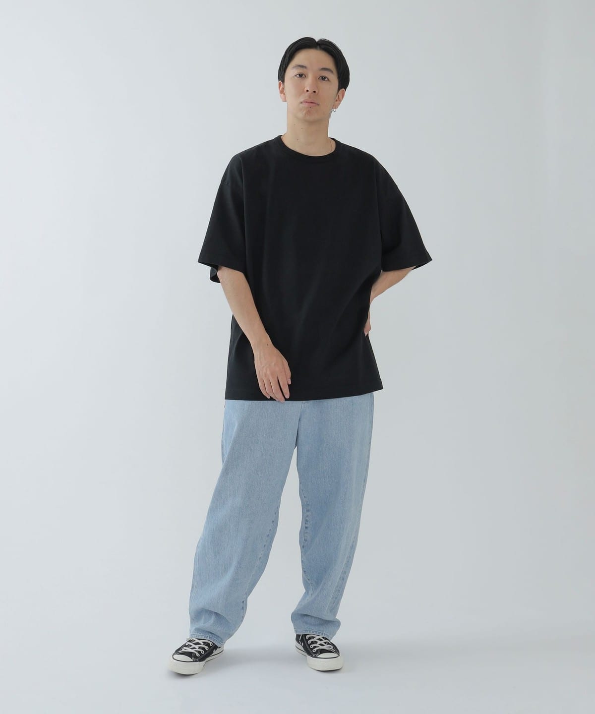 하이게이지 헤비급 티셔츠. 탄력있고 도톰한 소재감이 특징입니다. 어깨와 몸 폭에 여유가 충분한 실루엣입니다.
