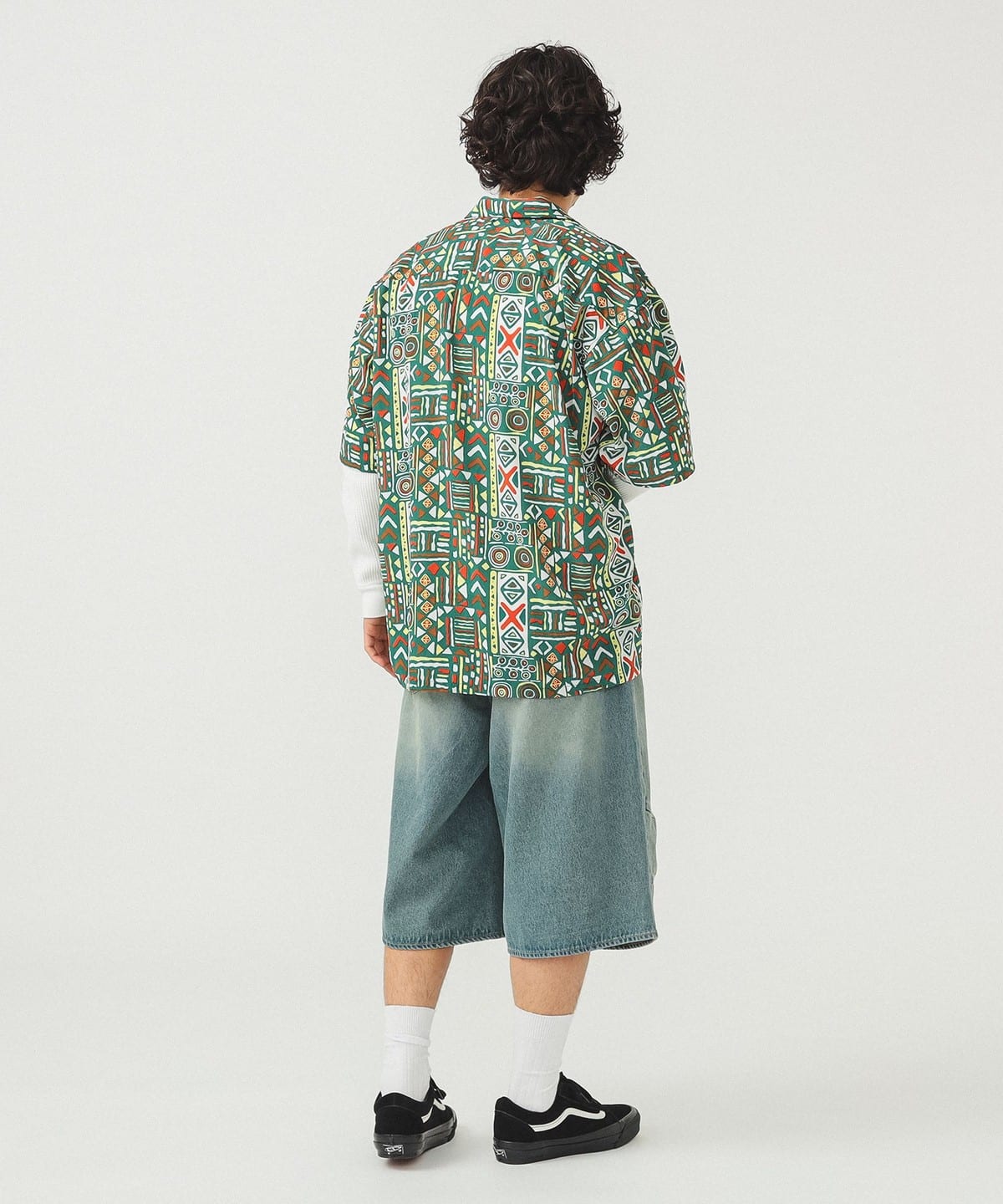 빔즈 지오메트릭 프린트 오픈 칼라 셔츠