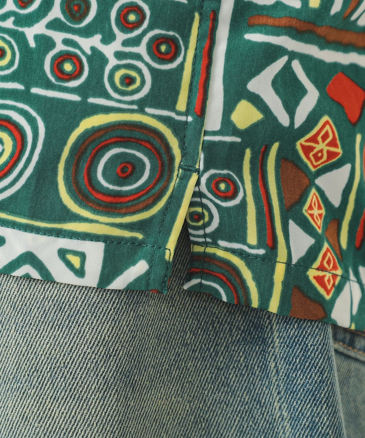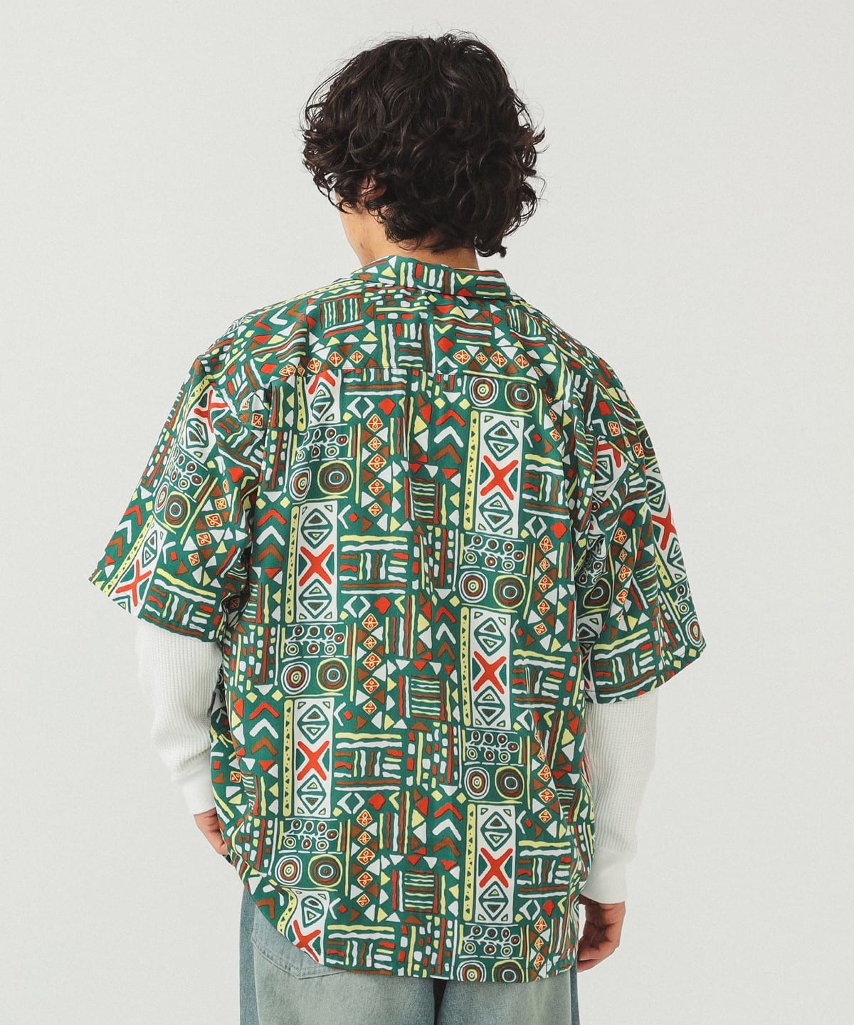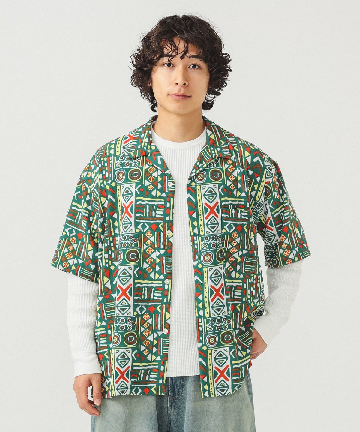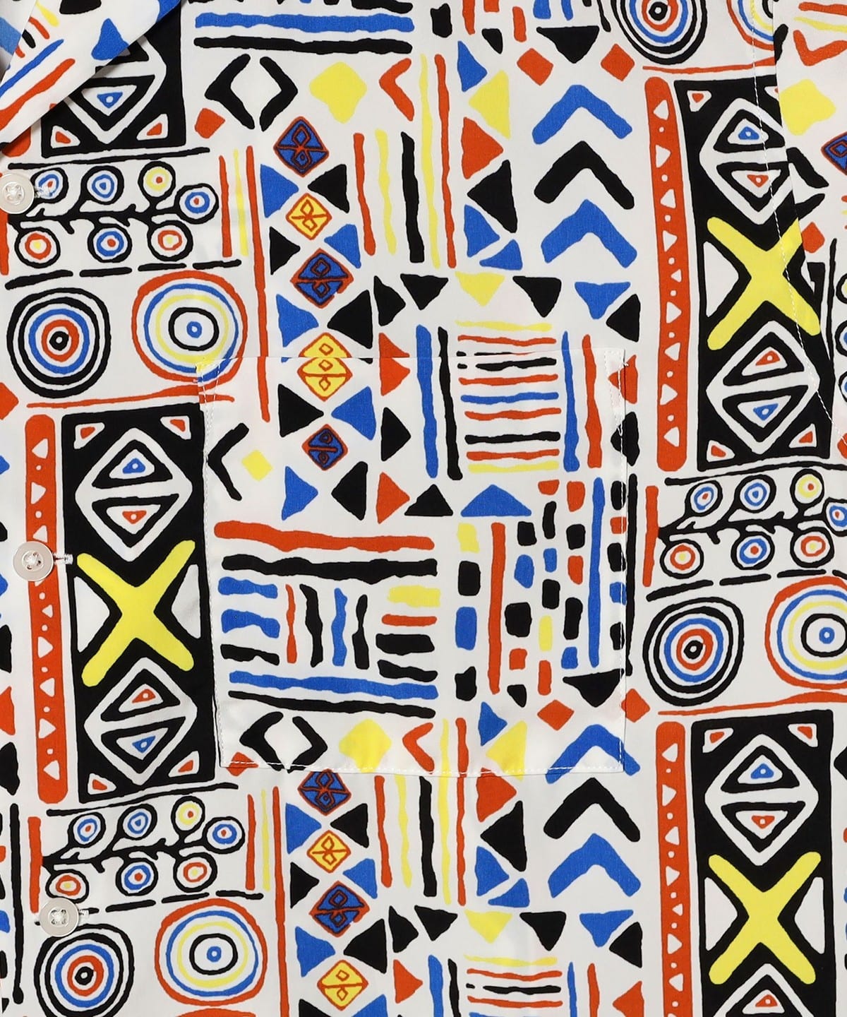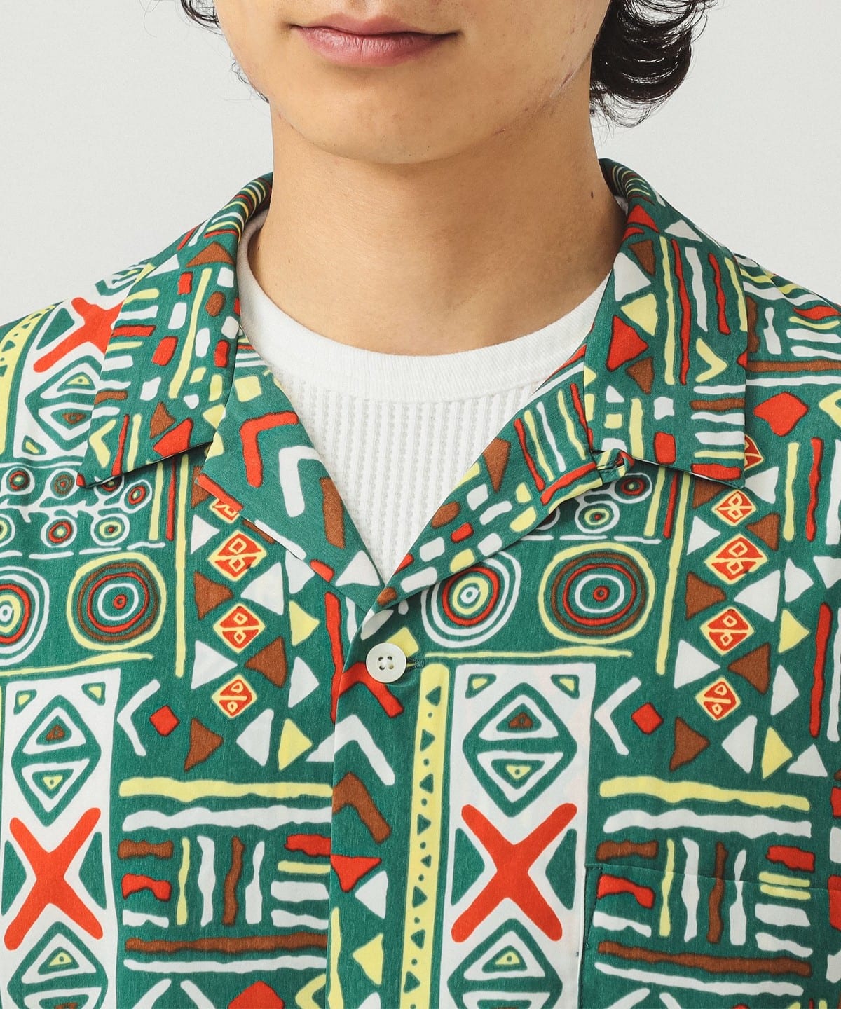 팝한 감각의 기하학 패턴이 시선을 사로잡는 오픈칼라 셔츠입니다.