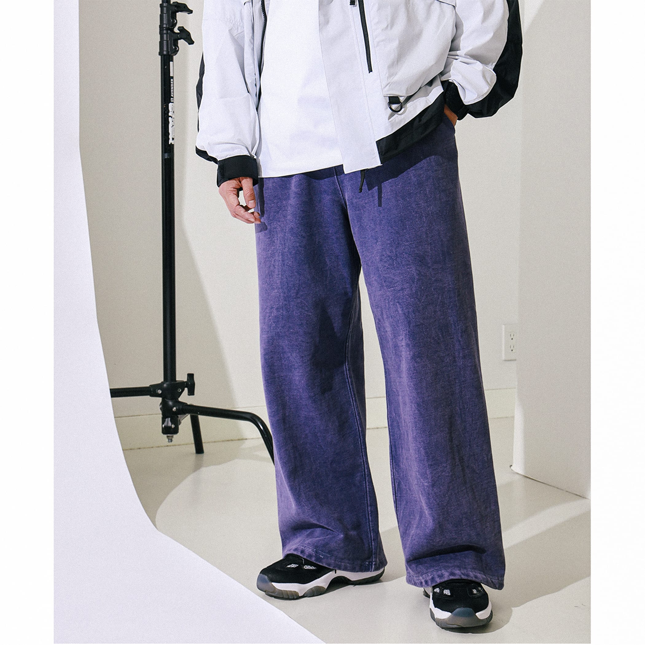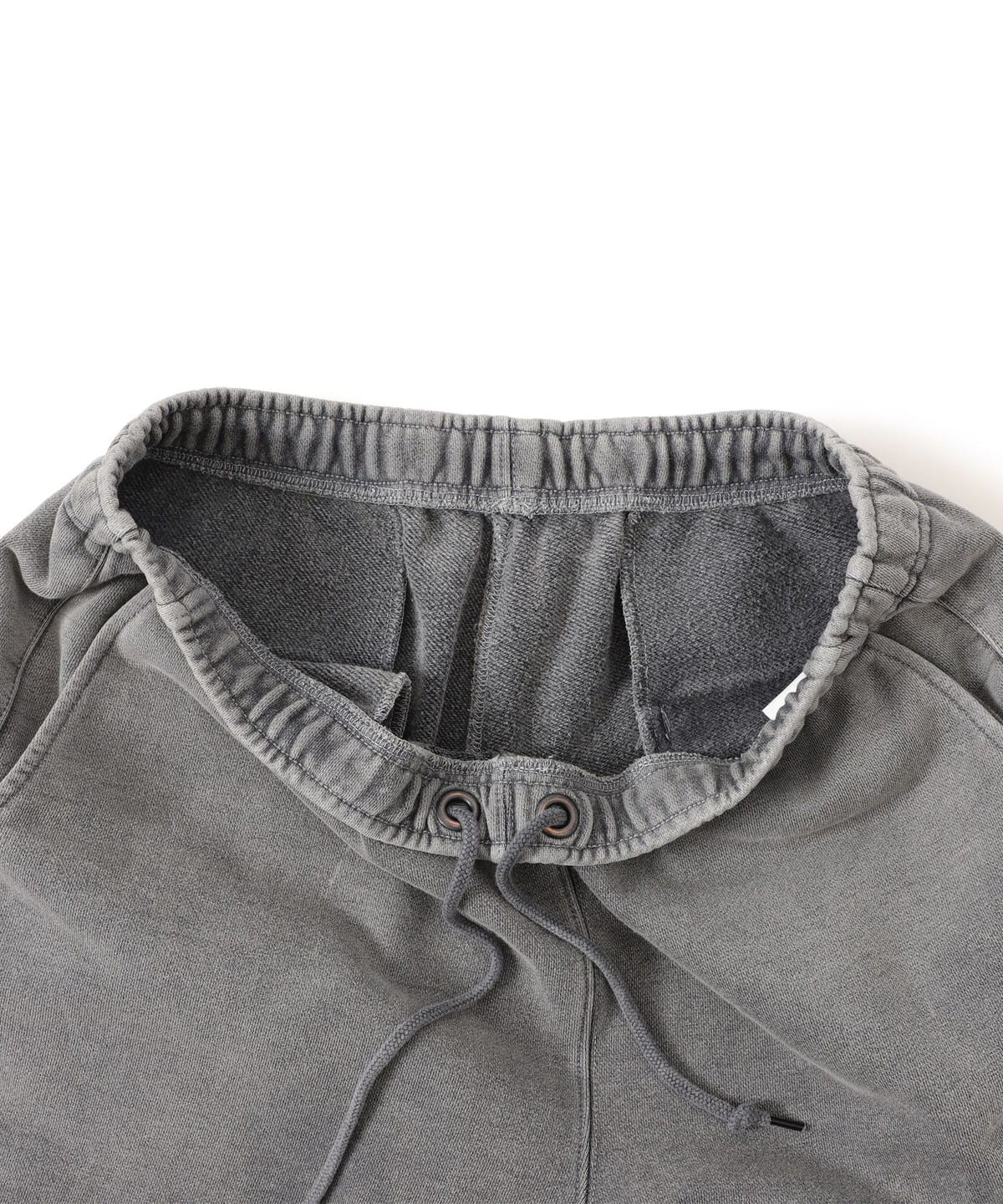 헤비웨이트의 빈티지 태닝이 특징인 와이드 스웨트 팬츠. 측면에 이음새가 없으며 밑단은 고무 스핀들이 있습니다.