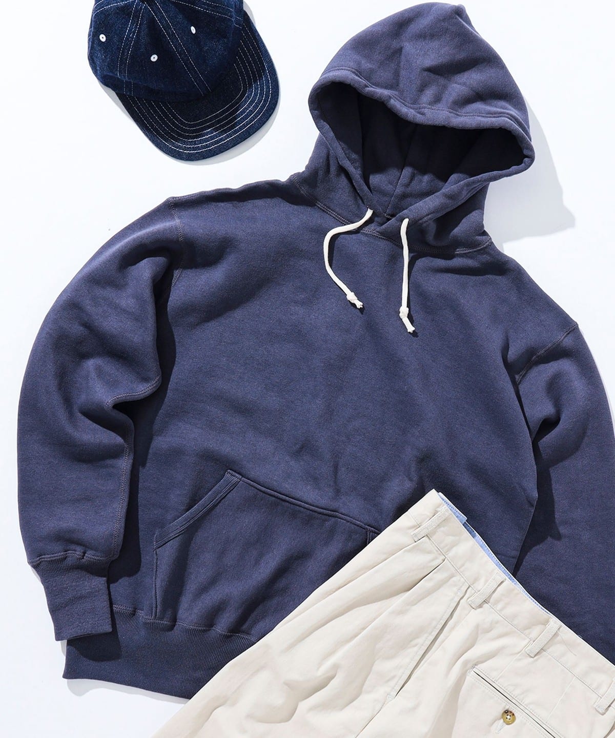 탄탄한 질감의 헤비웨이트 기모 원단에 실제 오래 입은 듯한 자연스러운 에이징 가공을 실시했습니다.