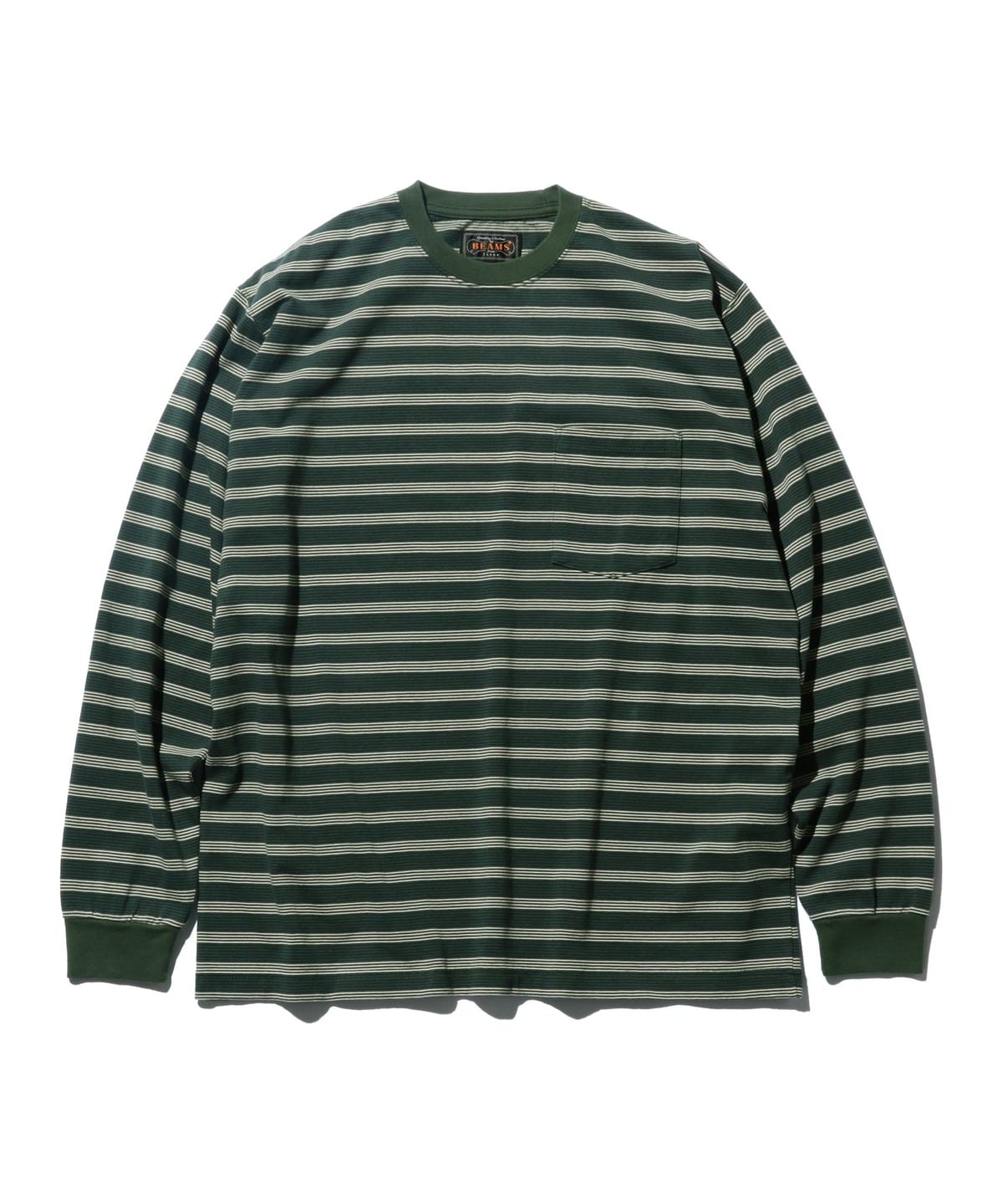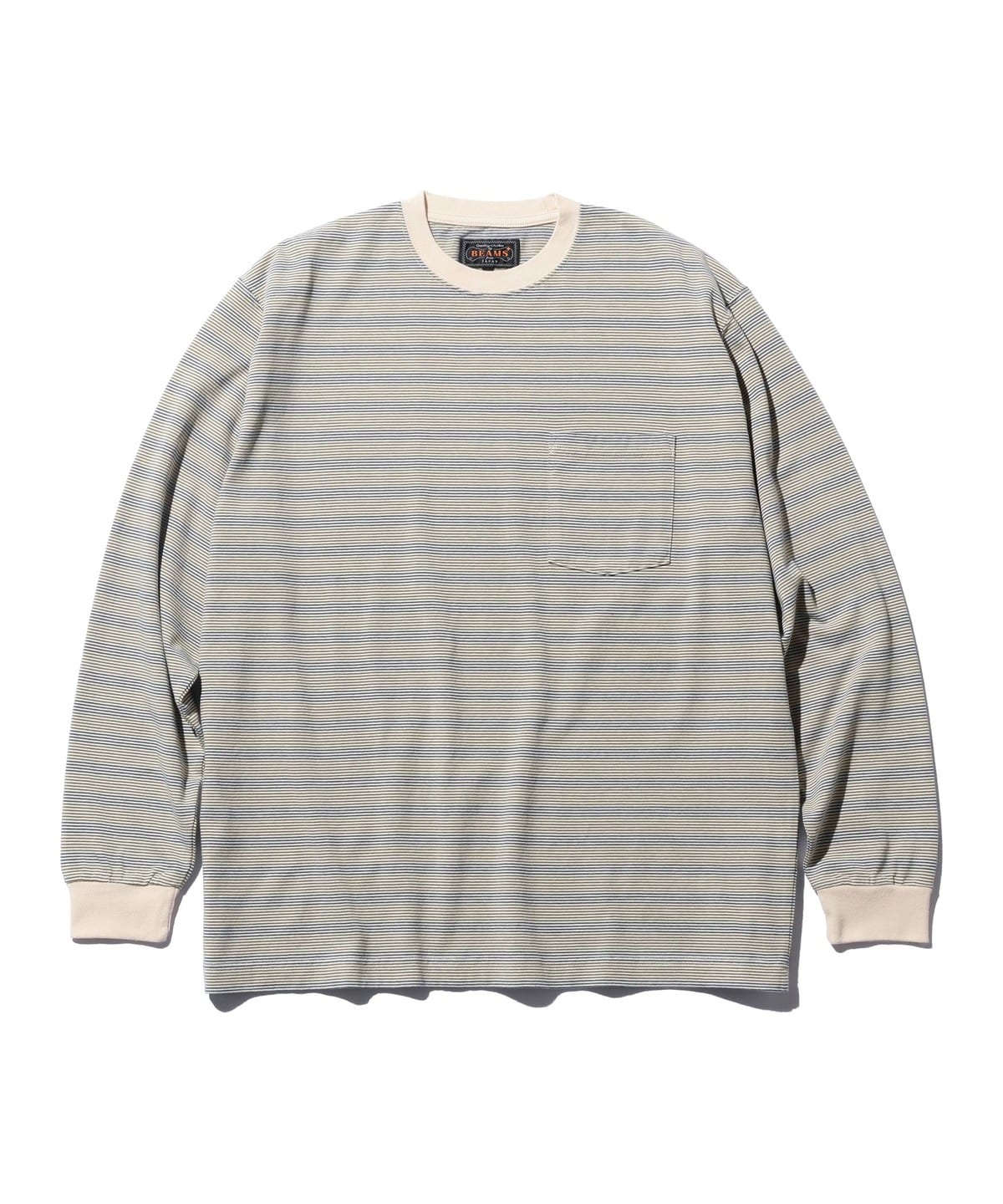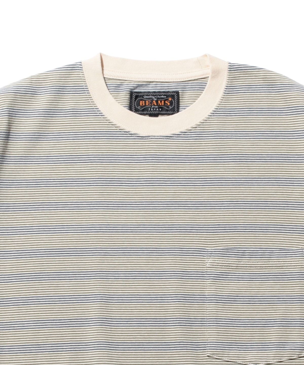 투톤 컬러 배색의 포켓 티셔츠. 좌우 소매와 포켓 부분의 패턴을 맞춰, 전체적으로 깔끔한 디자인입니다.
