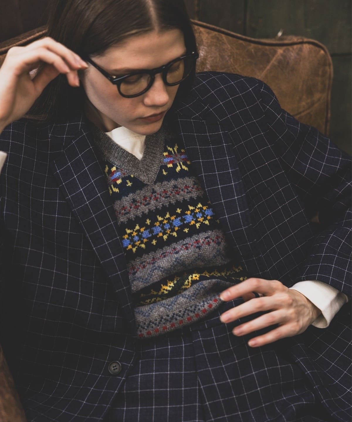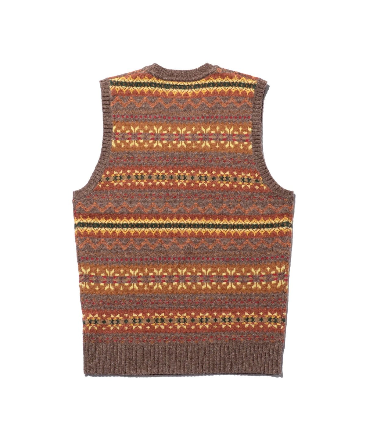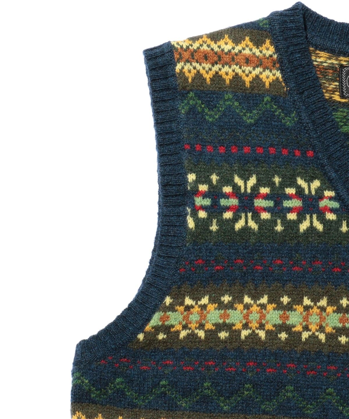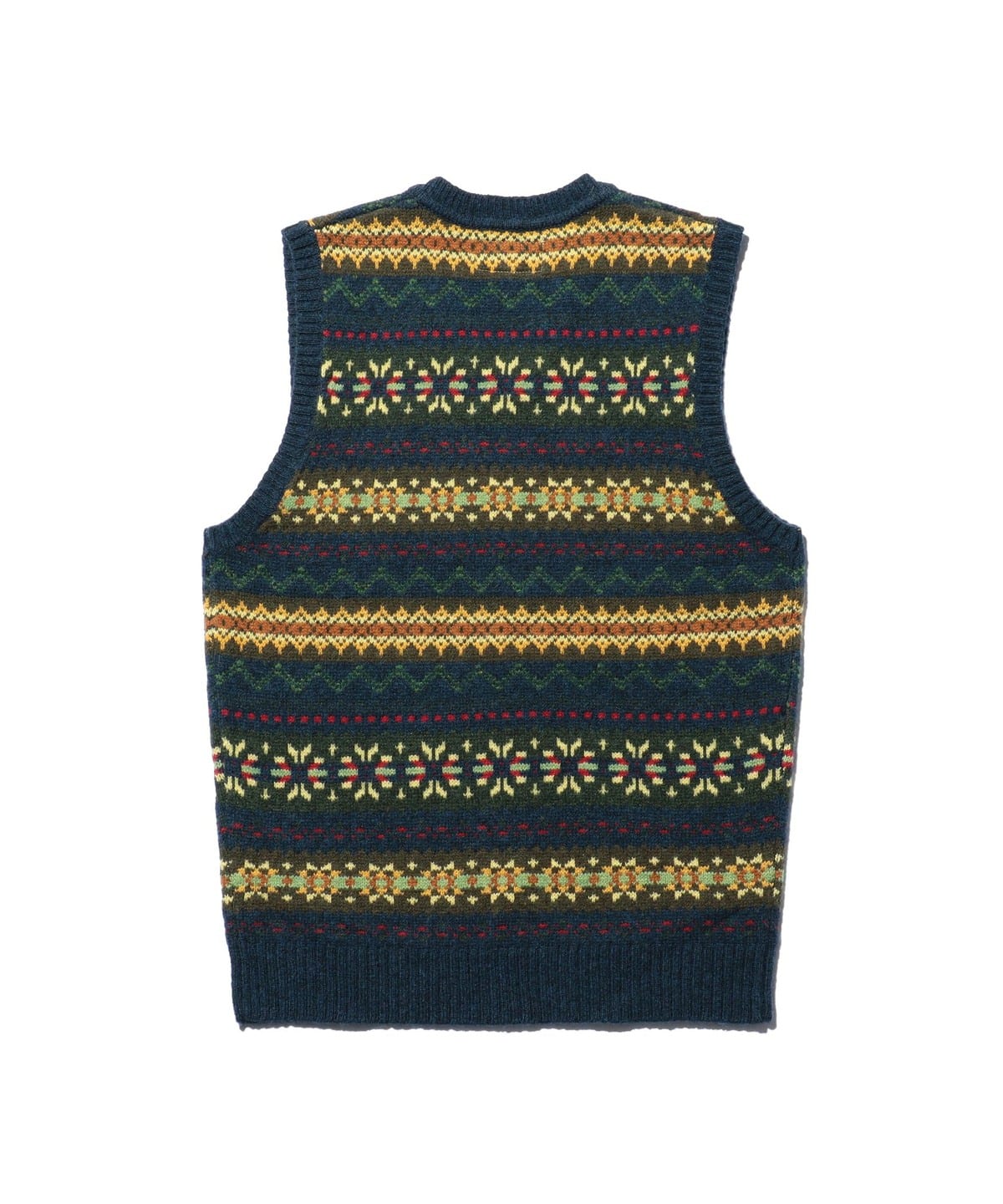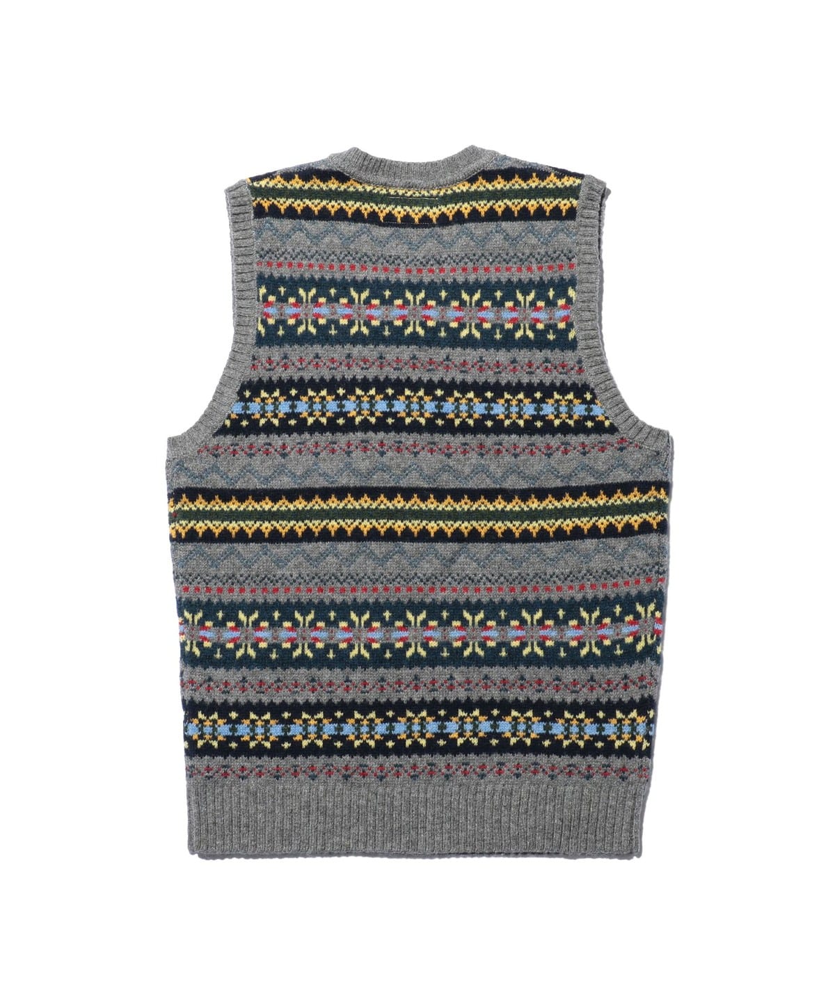 BEAMS PLUS의 클래식 감성을 담은 페어아일 패턴 V넥 니트 베스트 입니다.