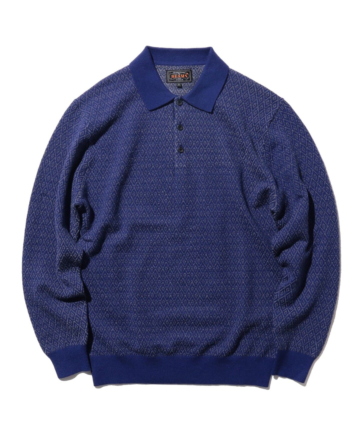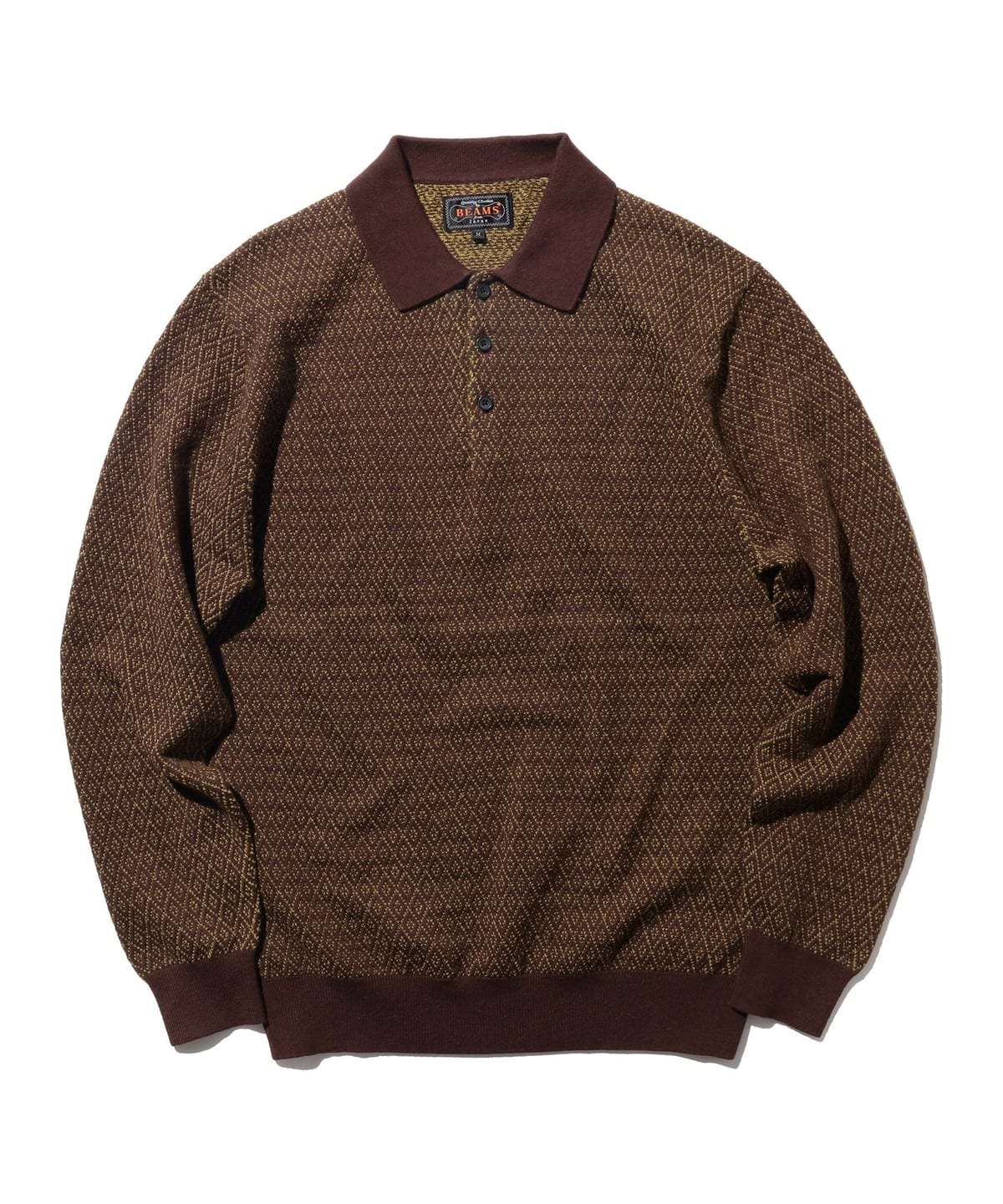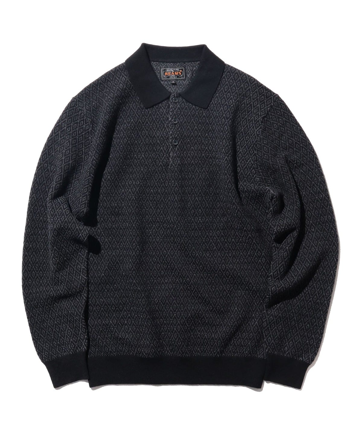 다이아몬드 패턴이 돋보이는 〈BEAMS PLUS〉 롱슬리브 니트 폴로셔츠 입니다.