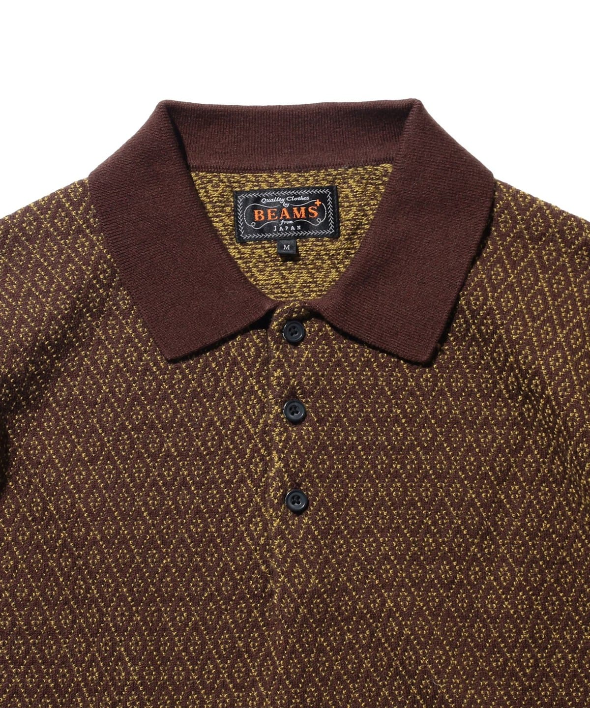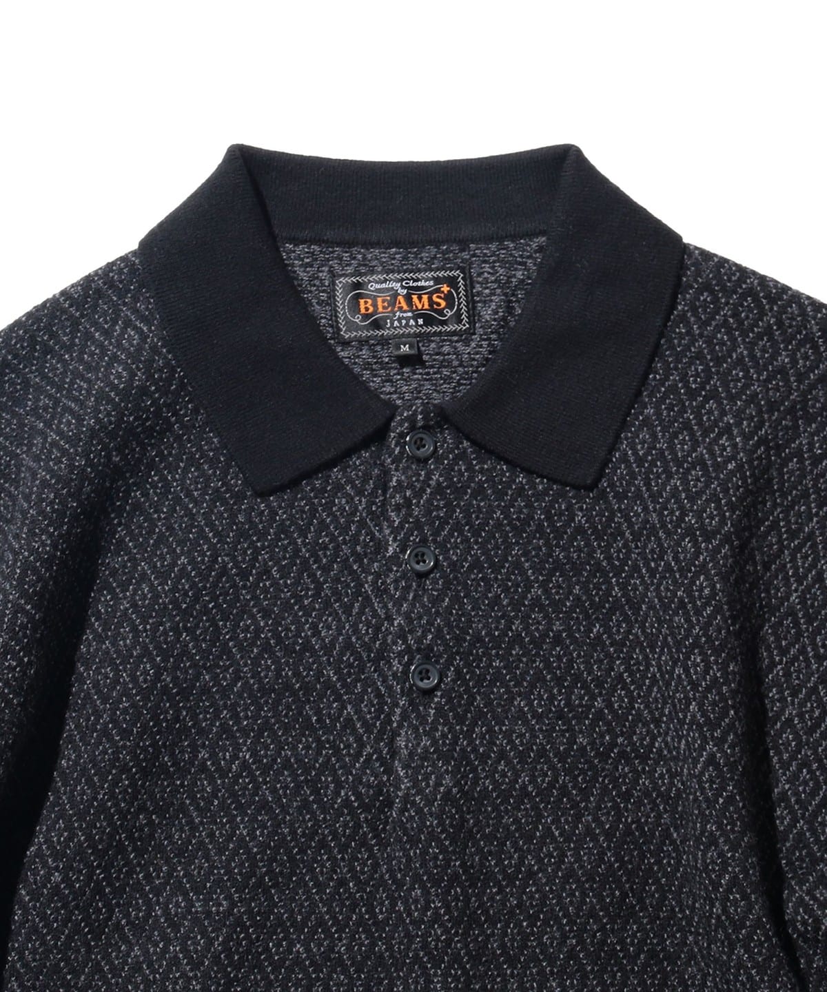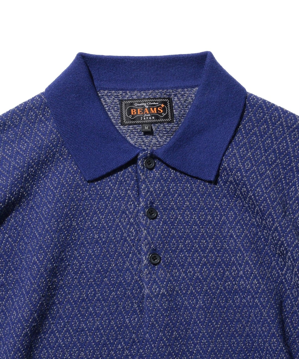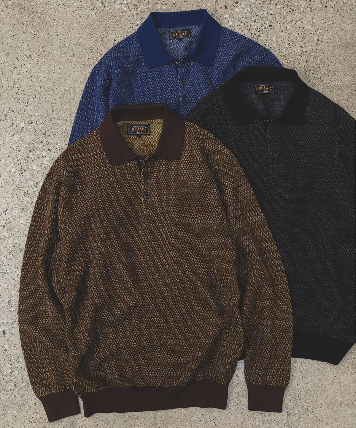 다이아몬드 패턴이 돋보이는 〈BEAMS PLUS〉 롱슬리브 니트 폴로셔츠 입니다.