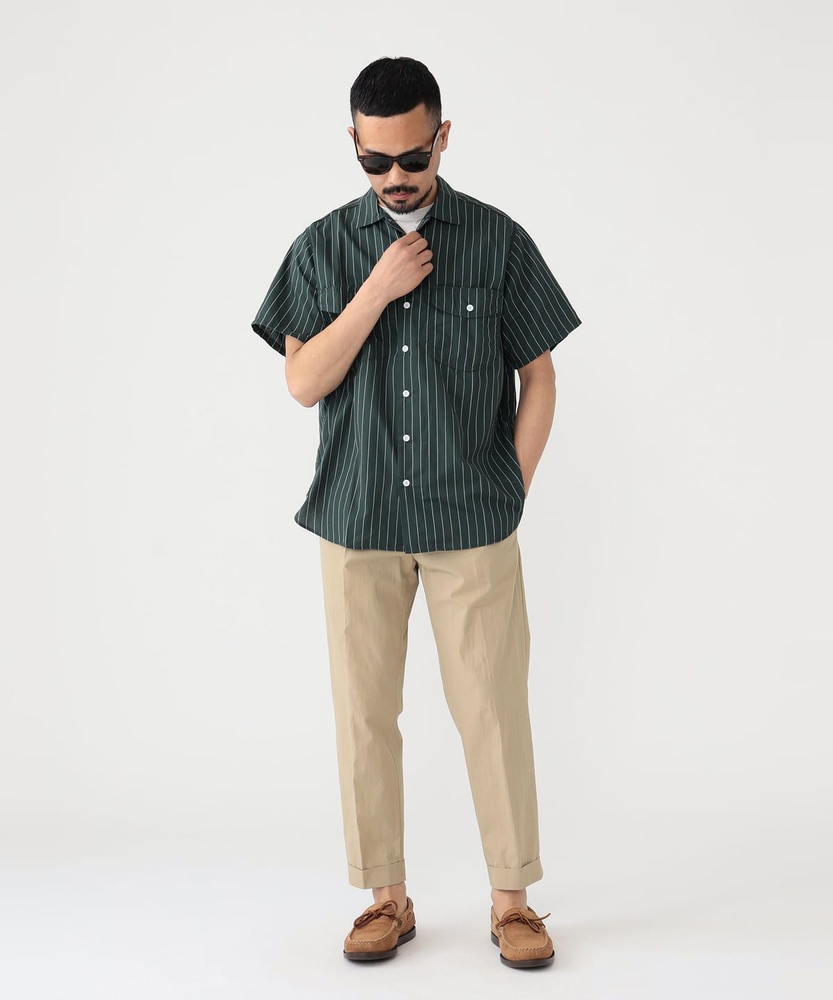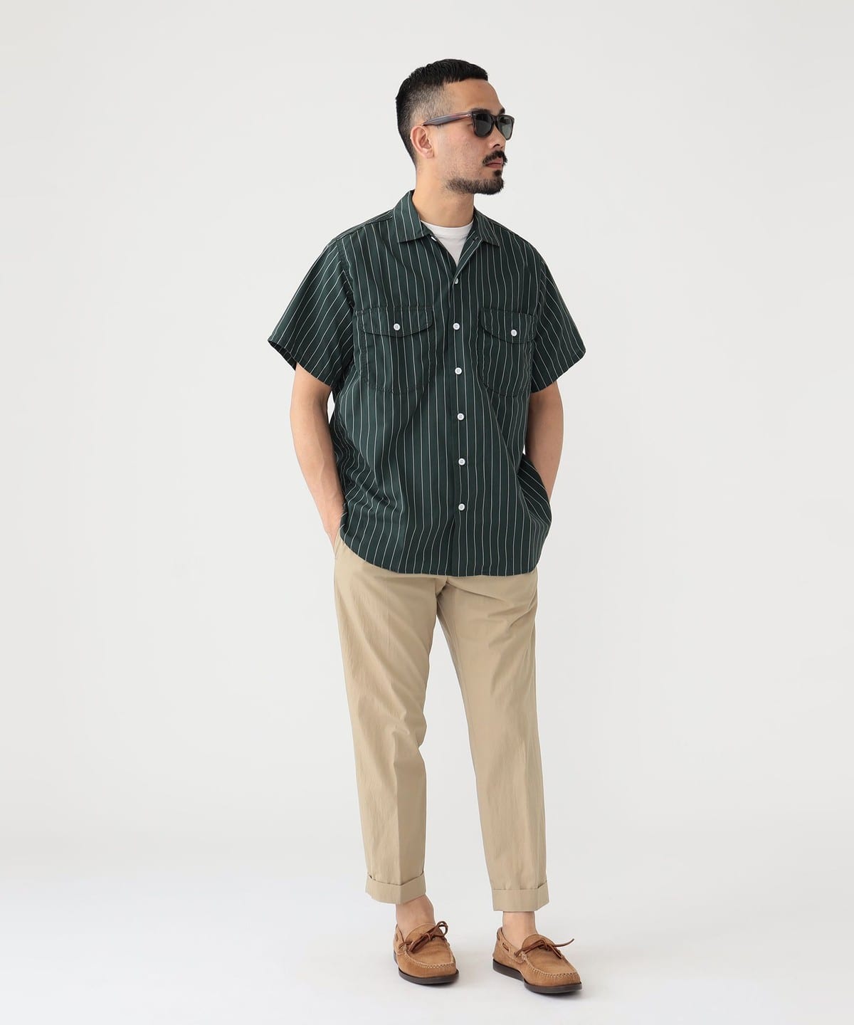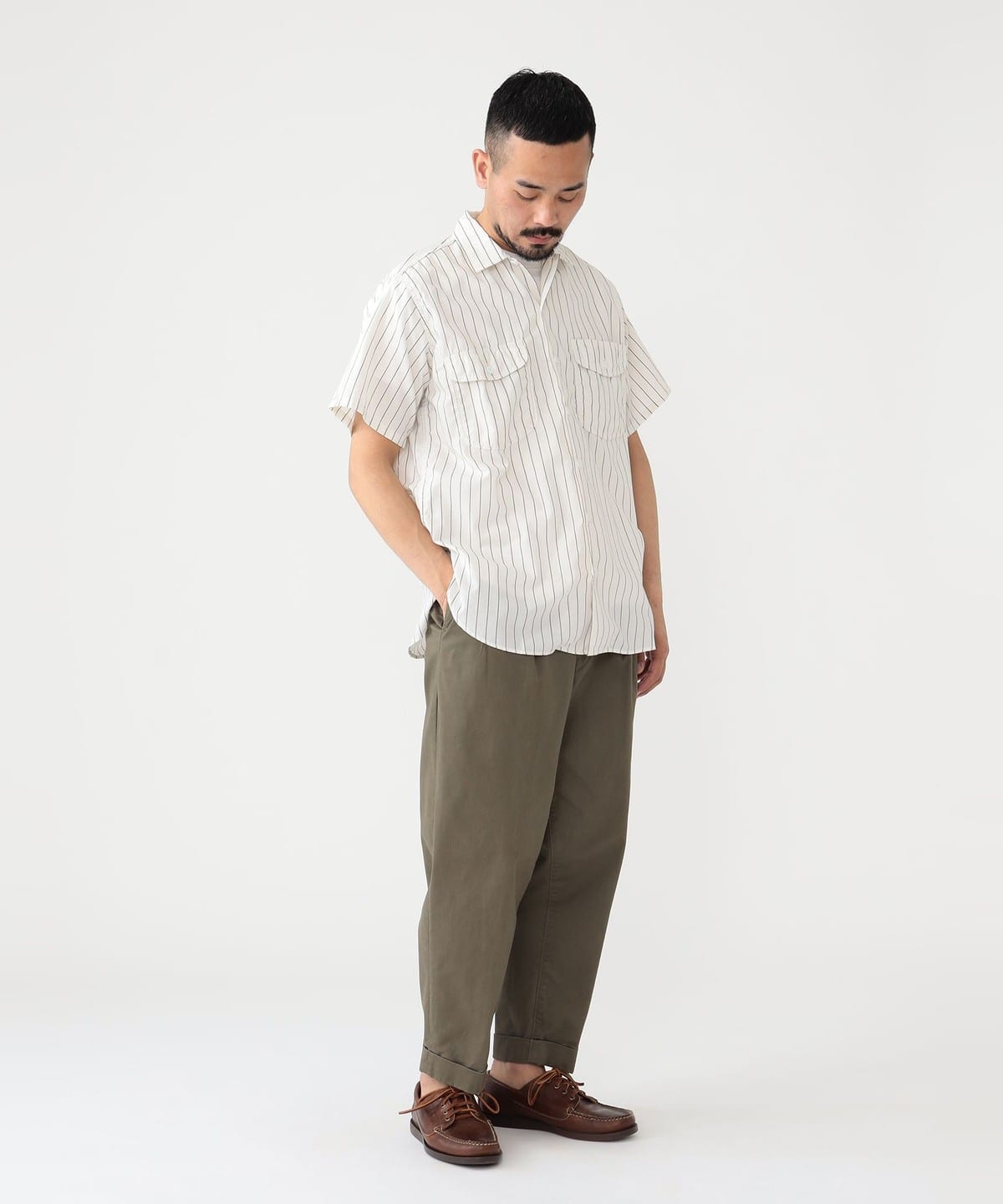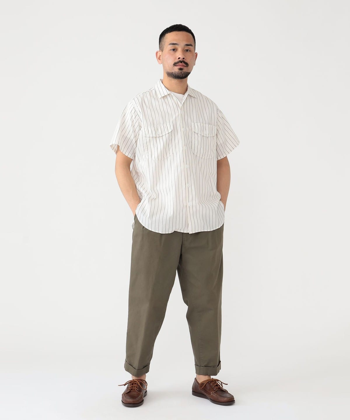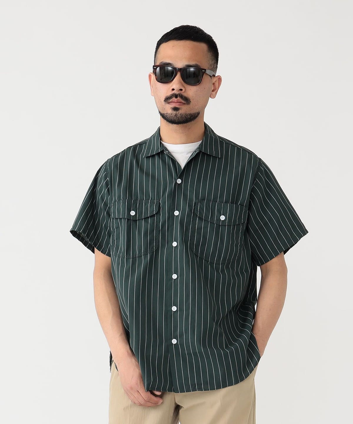 빔즈 플러스 반팔 워크 셔츠 스트라이프