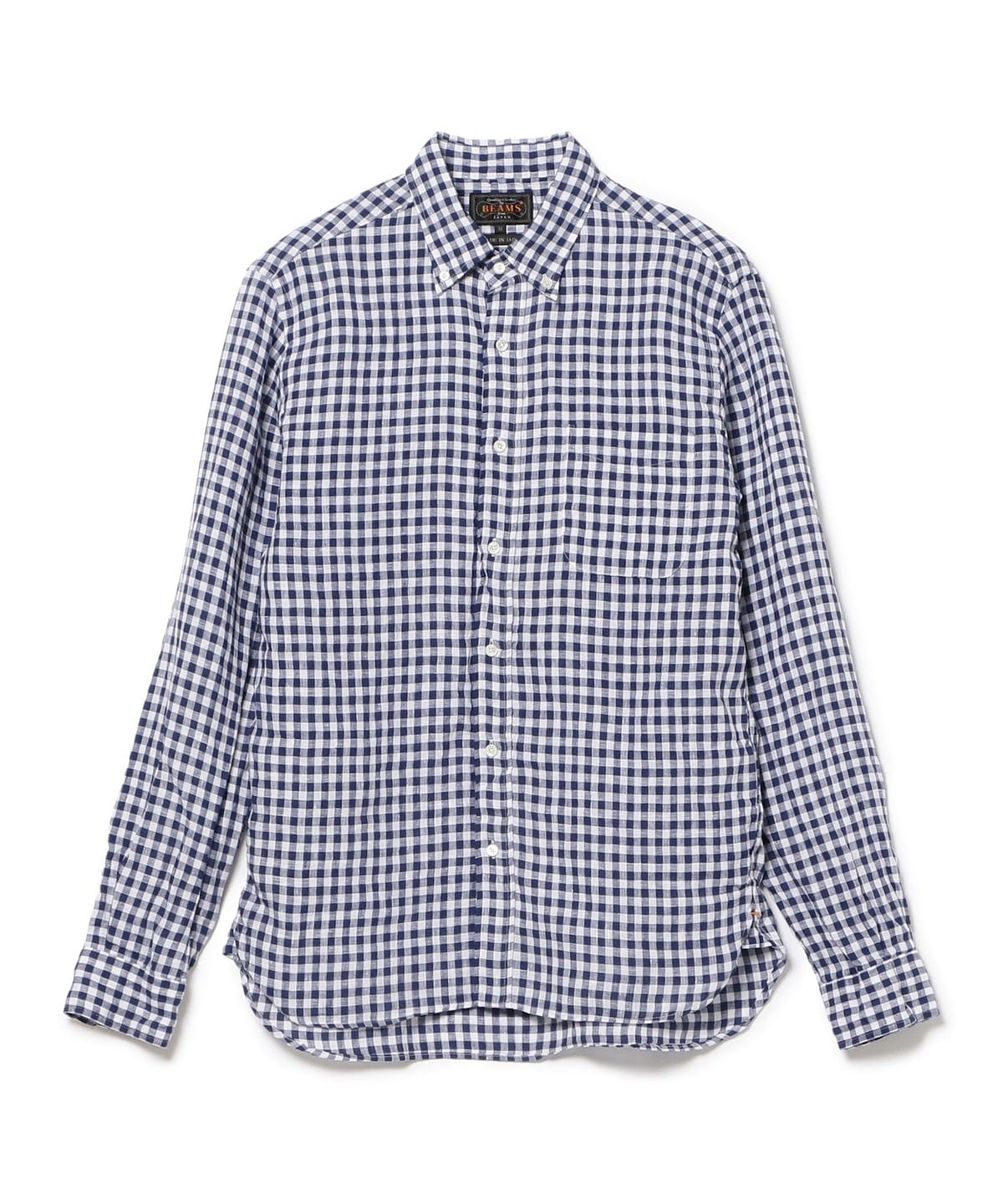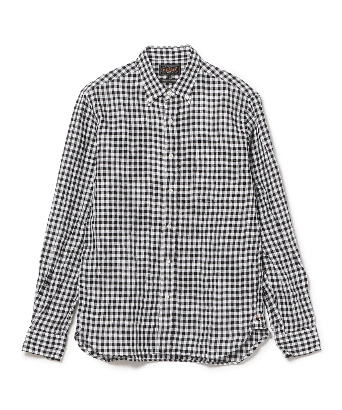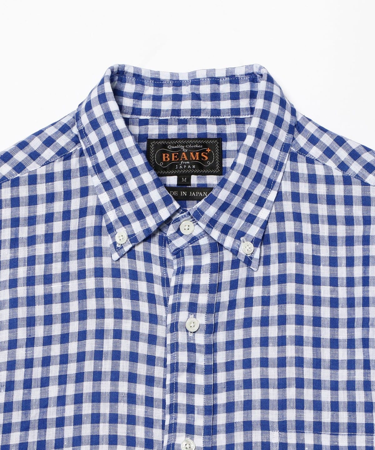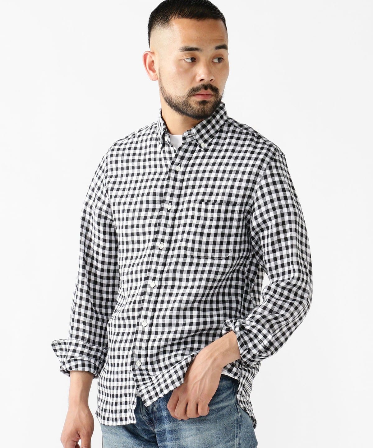 빔즈 플러스 버튼다운 깅엄 체크 린넨 셔츠