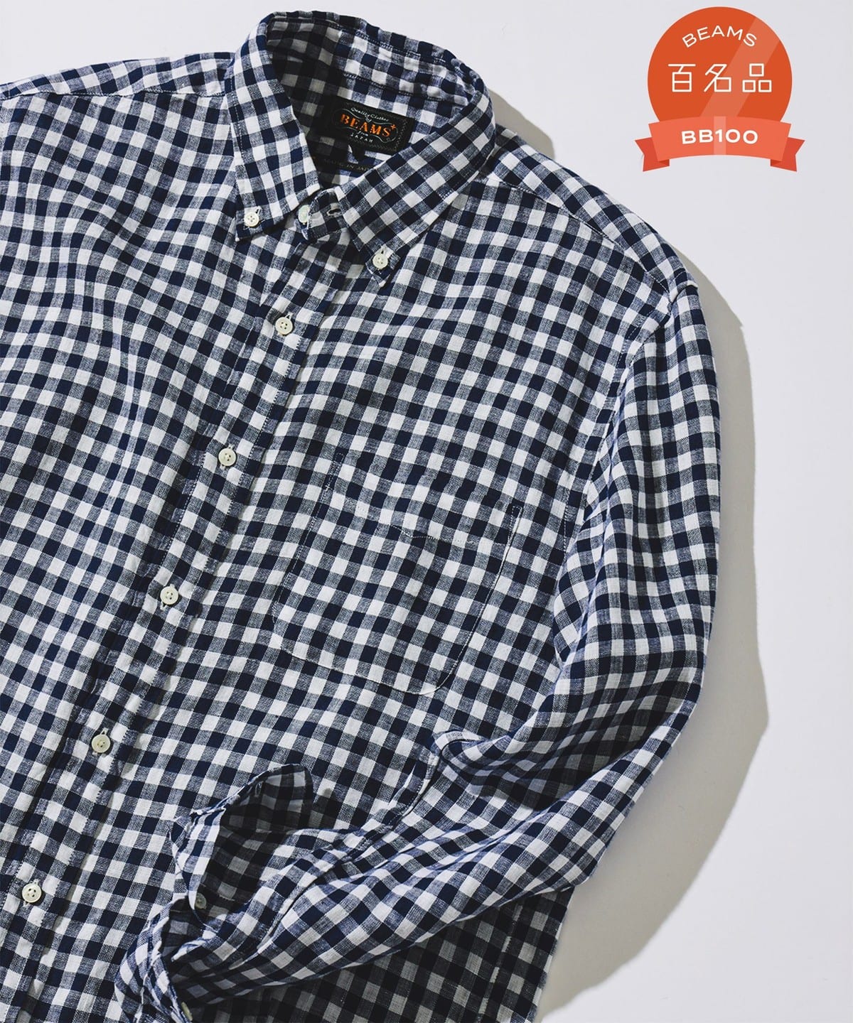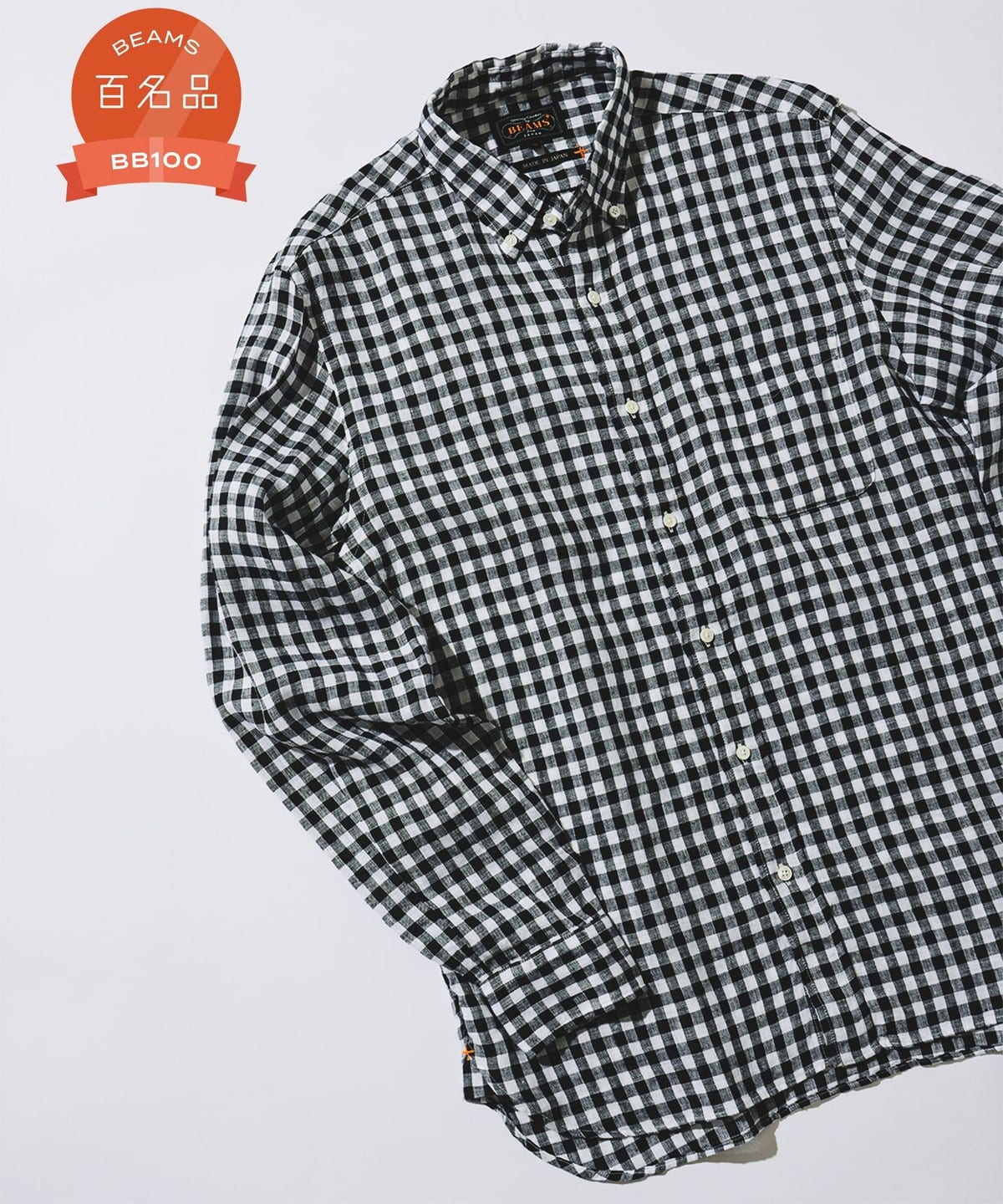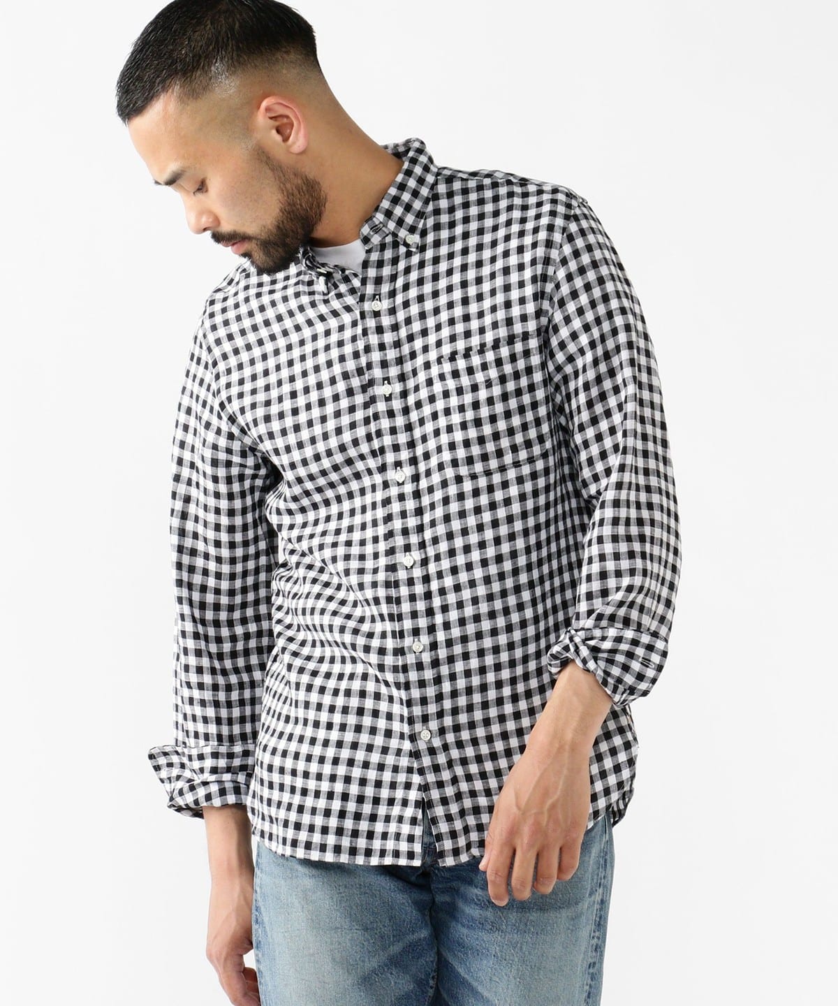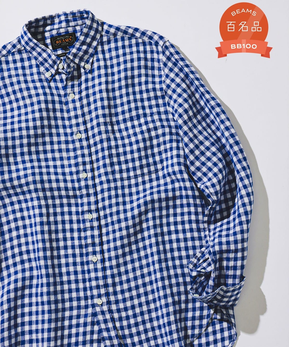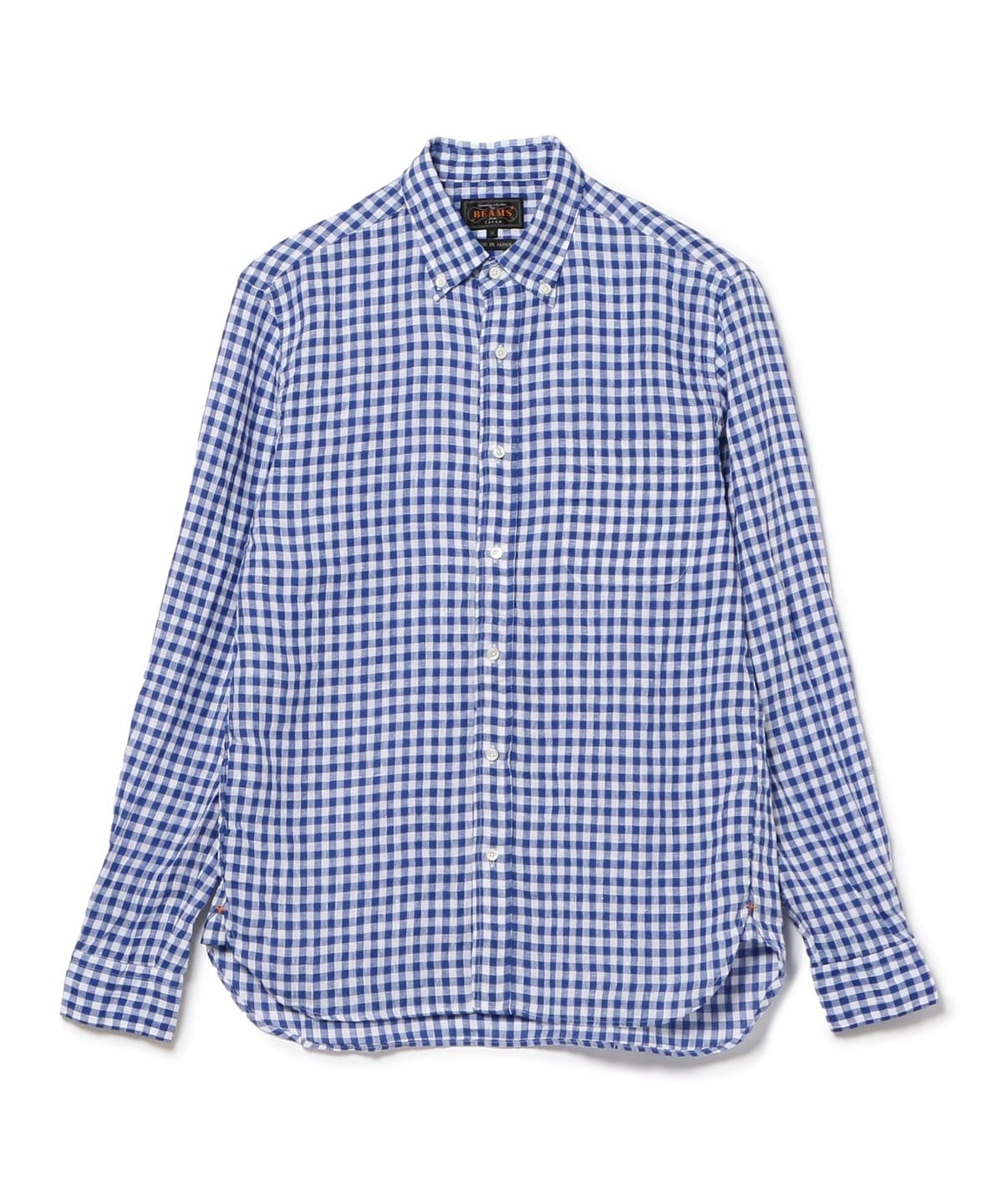 빔즈 플러스 버튼다운 깅엄 체크 린넨 셔츠