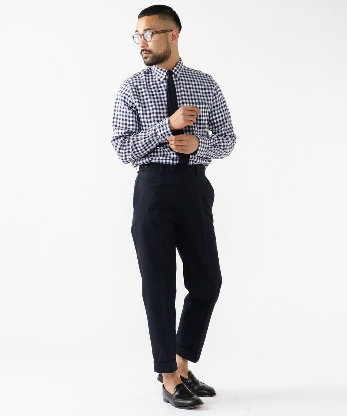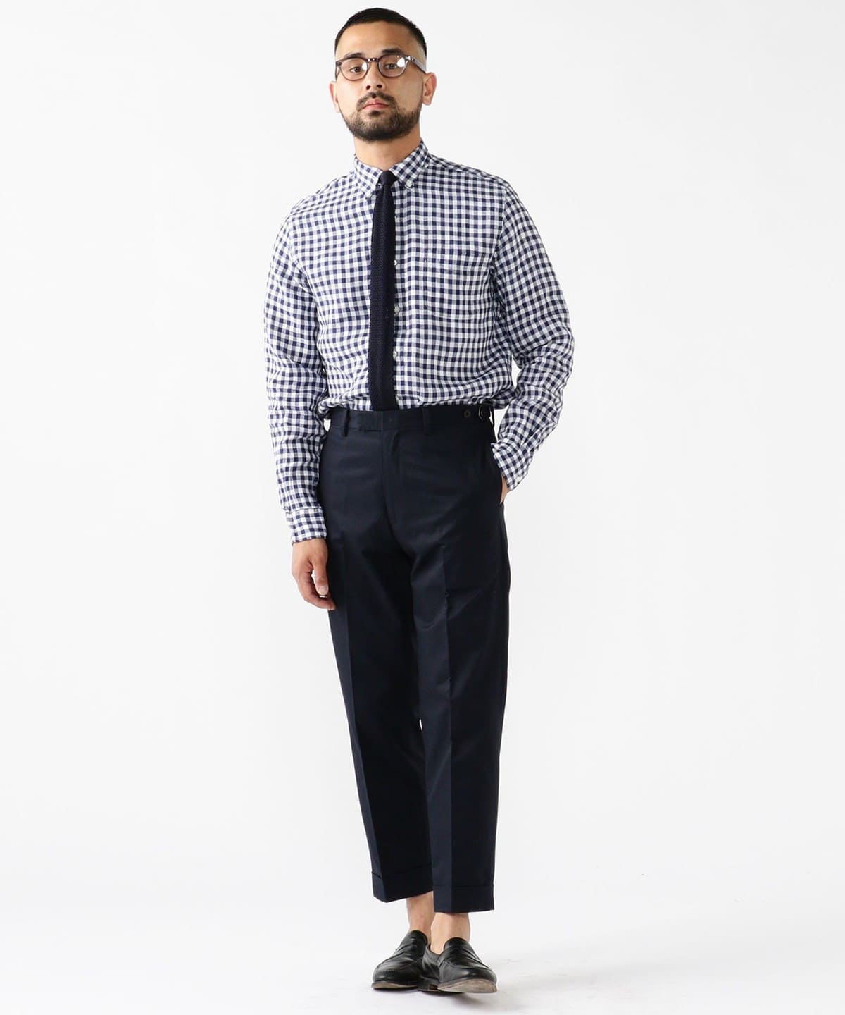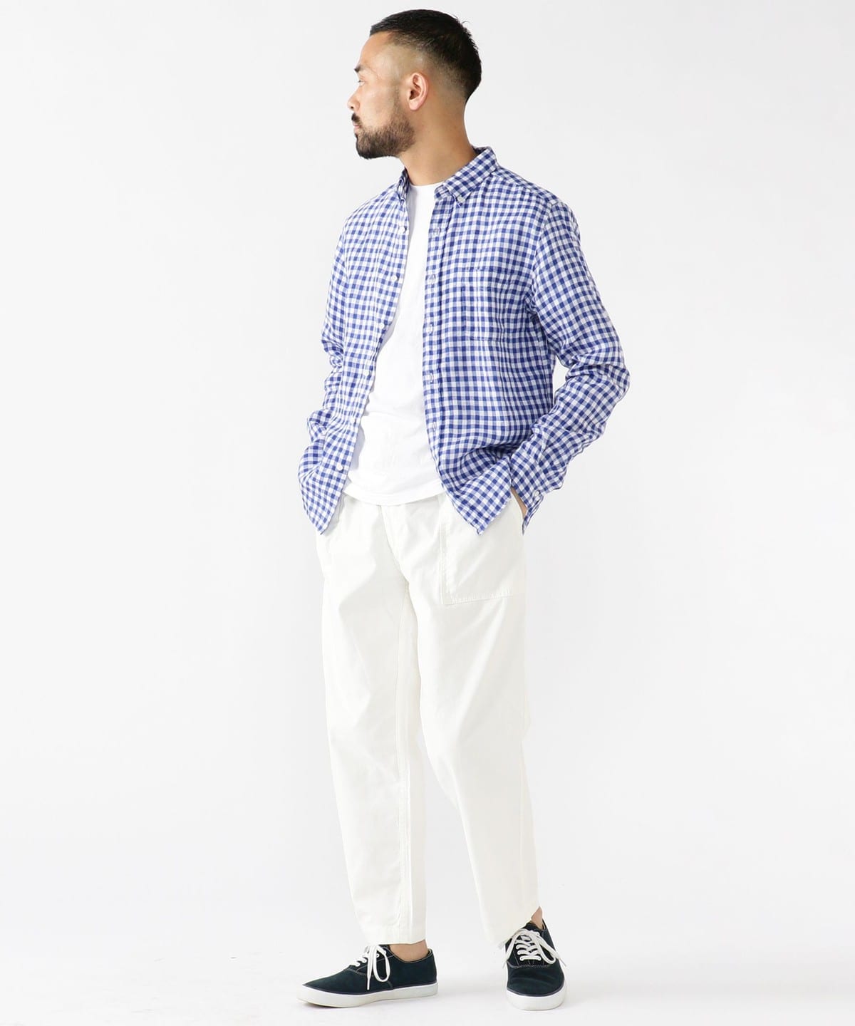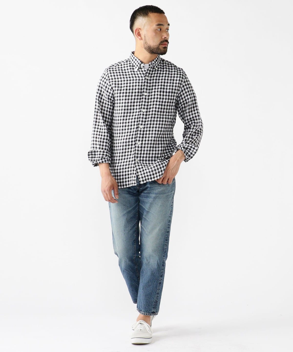 빔즈 플러스 버튼다운 깅엄 체크 린넨 셔츠