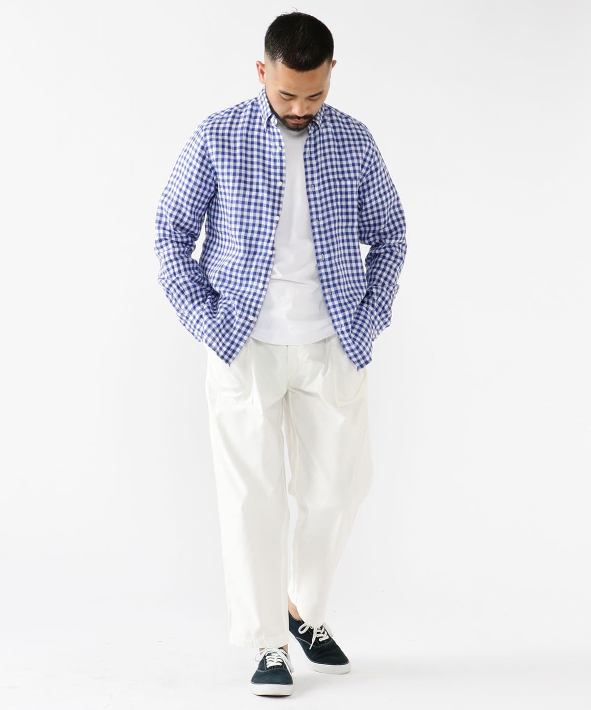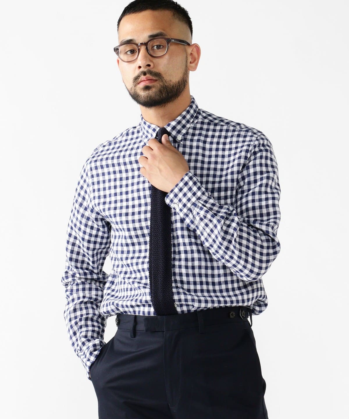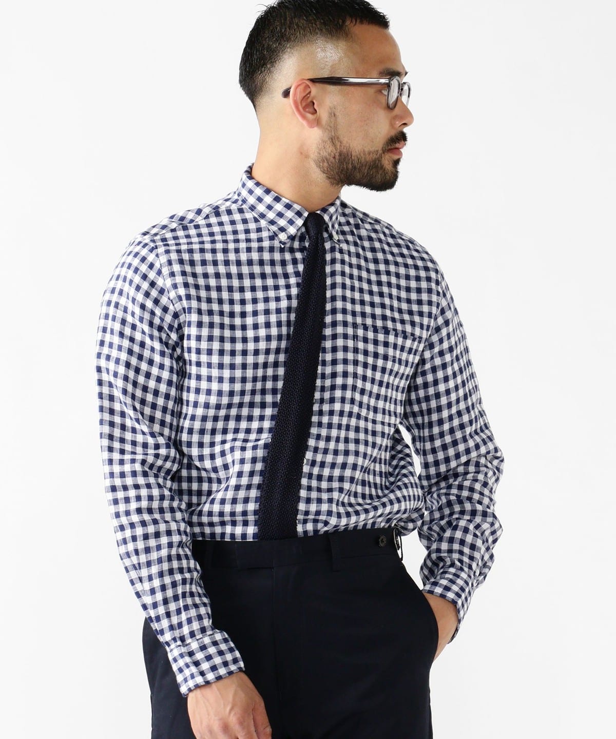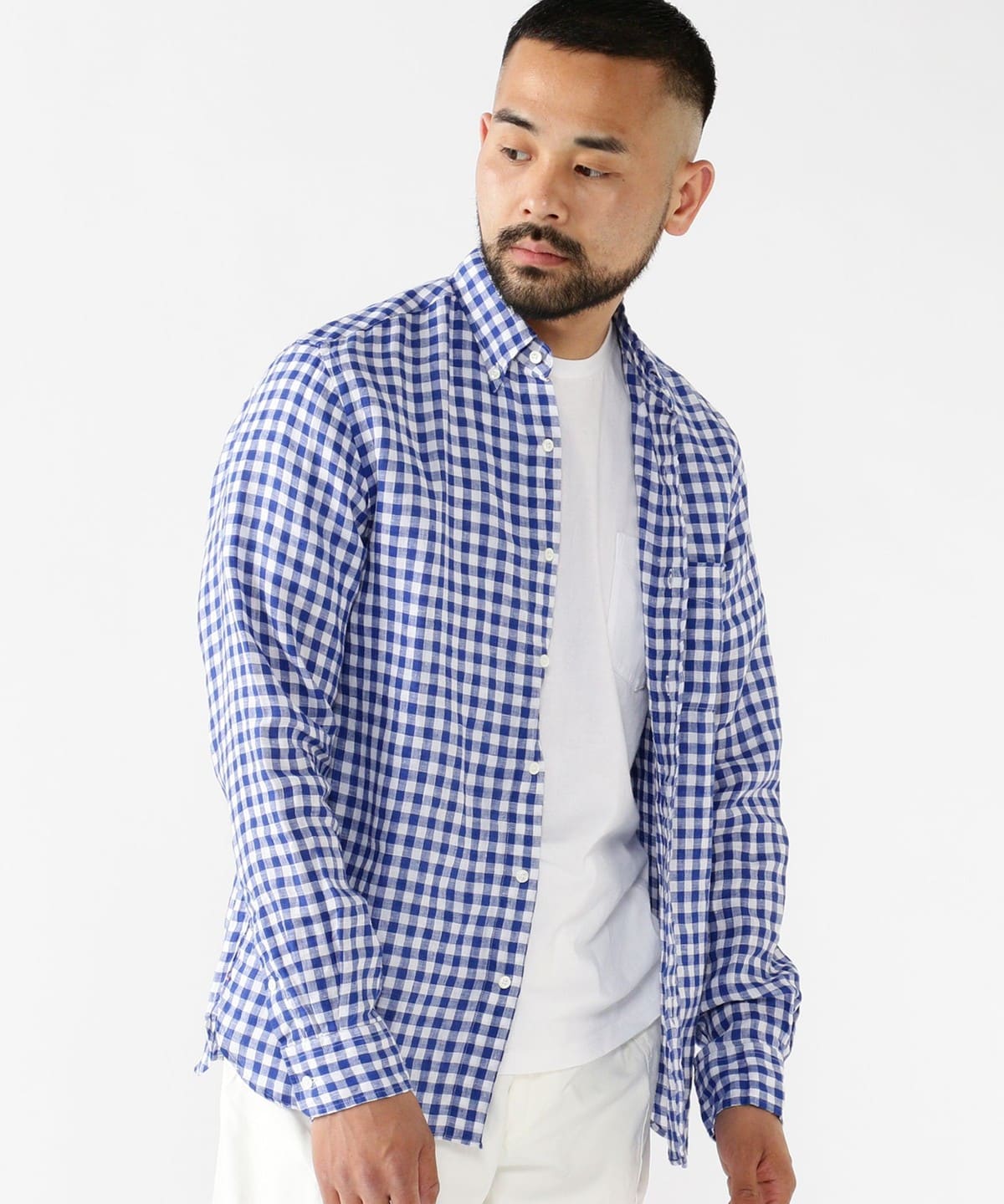 상쾌한 감촉이 특징인 린넨 소재의 깅엄 셔츠.