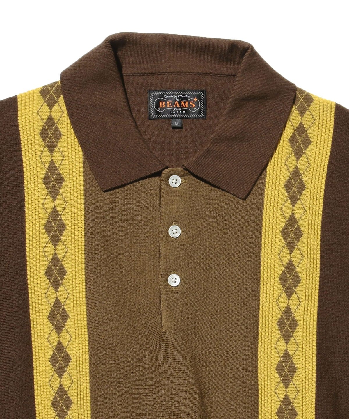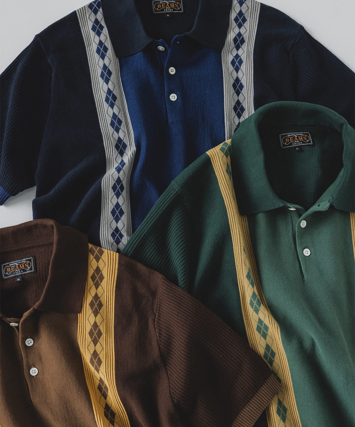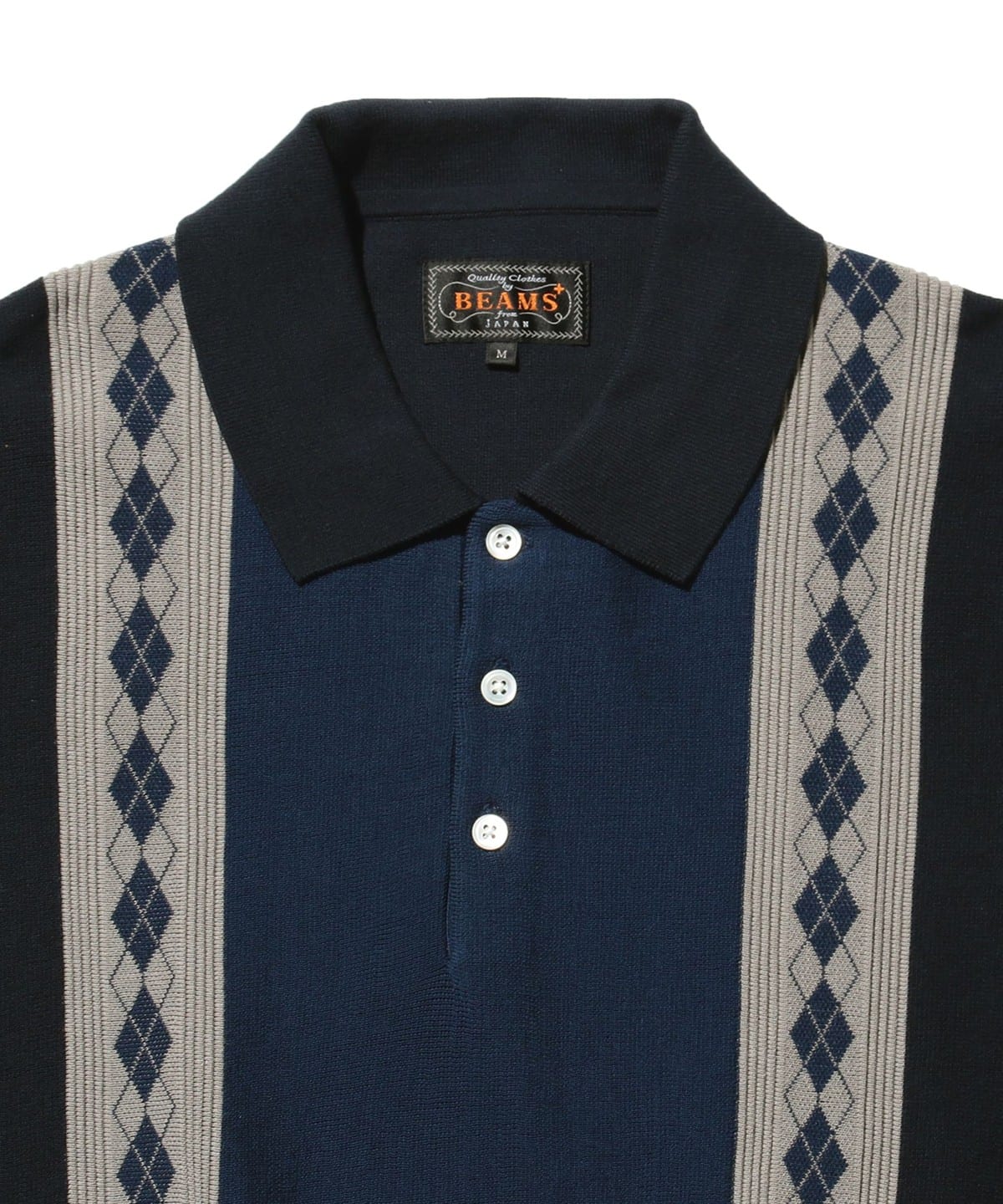 빔즈 플러스 스트라이프 아가일 폴로 니트